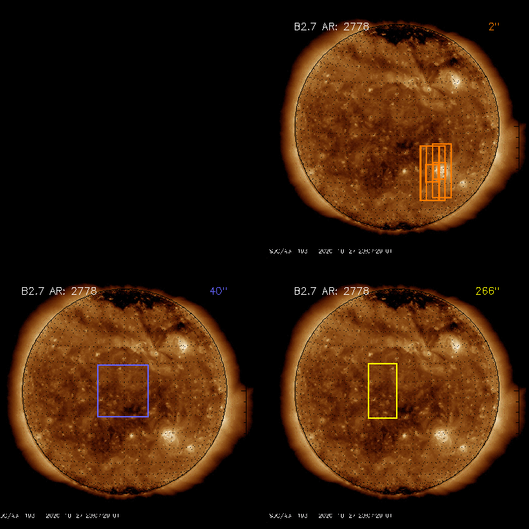 EIS Observation timeline overlay to GOES-Xray curve Code 1" 2" 40" 266" EIS Observations list for this event: STUDY ACRONYM ID DATE OBSERVED DESCRIPTION NOAA# TARGET 0 HPW021VEL260x512v2 | 74858 | 2020/10/27 13:00:40 | AR Observation | | Active Region TIMELINE ID DATE OBSERVED FITS FILE XCEN (+W/-E) YCEN (+N/-S) DUR ----------------------------------------------------------------------------------------------------------------- 74858 | 2020/10/27 13:00:40.000 | eis_l0_20201027_130040.fits.gz | 308.55 | -445.90 | 1h0m45s 74858 | 2020/10/27 14:01:33.000 | eis_l0_20201027_140133.fits.gz | 316.58 | -445.52 | 1h0m44s 1 Atlas_60 | 74860 | 2020/10/27 15:50:40 | AR Observation | | Quiet Sun TIMELINE ID DATE OBSERVED FITS FILE XCEN (+W/-E) YCEN (+N/-S) DUR ----------------------------------------------------------------------------------------------------------------- 74860 | 2020/10/27 15:50:40.000 | eis_l0_20201027_155040.fits.gz | 331.20 | -444.82 | 1h1m40s 2 PRY_slot_contextLITE | 74848 | 2020/10/27 18:03:20 | Pointing Monitoring | | Active Region TIMELINE ID DATE OBSERVED FITS FILE XCEN (+W/-E) YCEN (+N/-S) DUR ----------------------------------------------------------------------------------------------------------------- 74848 | 2020/10/27 18:03:20.000 | eis_l0_20201027_180320.fits.gz | -14.12 | -1.50 | 2m57s 3 XRT_synop_AIA | 74850 | 2020/10/27 18:08:26 | Pointing Monitoring | | Quiet Sun TIMELINE ID DATE OBSERVED FITS FILE XCEN (+W/-E) YCEN (+N/-S) DUR ----------------------------------------------------------------------------------------------------------------- 74850 | 2020/10/27 18:08:26.000 | eis_l0_20201027_180826.fits.gz | -131.57 | -1.42 | 11s 4 HPW021VEL260x512v2 | 74867 | 2020/10/27 20:30:19 | AR Observation | 2778 | Active Region TIMELINE ID DATE OBSERVED FITS FILE XCEN (+W/-E) YCEN (+N/-S) DUR ----------------------------------------------------------------------------------------------------------------- 74867 | 2020/10/27 20:30:19.000 | eis_l0_20201027_203019.fits.gz | 367.09 | -443.20 | 1h0m45s 5 Atlas_60 | 74862 | 2020/10/28 01:05:13 | AR Observation | | Quiet Sun TIMELINE ID DATE OBSERVED FITS FILE XCEN (+W/-E) YCEN (+N/-S) DUR ----------------------------------------------------------------------------------------------------------------- 74862 | 2020/10/28 01:05:13.000 | eis_l0_20201028_010513.fits.gz | 404.42 | -421.19 | 1h1m39s 6 HPW021VEL260x512v2 | 74863 | 2020/10/28 02:45:13 | AR Observation | 2779 | Active Region TIMELINE ID DATE OBSERVED FITS FILE XCEN (+W/-E) YCEN (+N/-S) DUR ----------------------------------------------------------------------------------------------------------------- 74863 | 2020/10/28 02:45:13.000 | eis_l0_20201028_024513.fits.gz | 424.42 | -420.57 | 1h0m45s : Check study information : Download file : View thumbnails For this event, also check for: