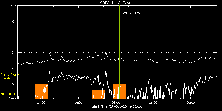 EIS Observation timeline overlay to GOES-Xray curve Code 1" 2" 40" 266" EIS Observations list for this event: STUDY ACRONYM ID DATE OBSERVED DESCRIPTION NOAA# TARGET 0 HPW021VEL260x512v2 | 74867 | 2020/10/27 20:30:19 | AR Observation | 2778 | Active Region TIMELINE ID DATE OBSERVED FITS FILE XCEN (+W/-E) YCEN (+N/-S) DUR ----------------------------------------------------------------------------------------------------------------- 74867 | 2020/10/27 20:30:19.000 | eis_l0_20201027_203019.fits.gz | 367.09 | -443.20 | 1h0m45s 1 Atlas_60 | 74862 | 2020/10/28 01:05:13 | AR Observation | | Quiet Sun TIMELINE ID DATE OBSERVED FITS FILE XCEN (+W/-E) YCEN (+N/-S) DUR ----------------------------------------------------------------------------------------------------------------- 74862 | 2020/10/28 01:05:13.000 | eis_l0_20201028_010513.fits.gz | 404.42 | -421.19 | 1h1m39s 2 HPW021VEL260x512v2 | 74863 | 2020/10/28 02:45:13 | AR Observation | 2779 | Active Region TIMELINE ID DATE OBSERVED FITS FILE XCEN (+W/-E) YCEN (+N/-S) DUR ----------------------------------------------------------------------------------------------------------------- 74863 | 2020/10/28 02:45:13.000 | eis_l0_20201028_024513.fits.gz | 424.42 | -420.57 | 1h0m45s : Check study information : Download file : View thumbnails For this event, also check for: