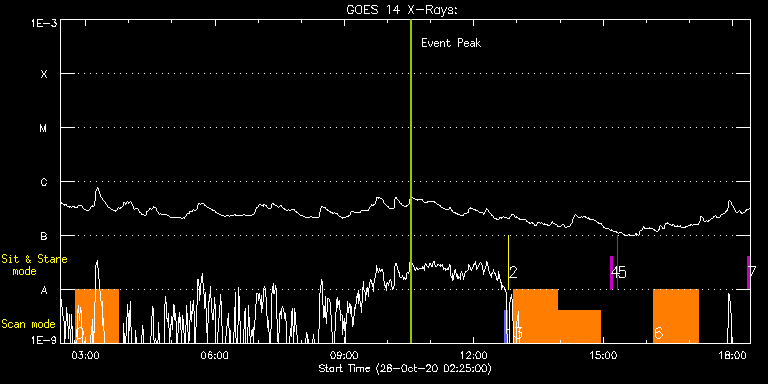 EIS Observation timeline overlay to GOES-Xray curve Code 1" 2" 40" 266" EIS Observations list for this event: STUDY ACRONYM ID DATE OBSERVED DESCRIPTION NOAA# TARGET 0 HPW021VEL260x512v2 | 74863 | 2020/10/28 02:45:13 | AR Observation | 2779 | Active Region TIMELINE ID DATE OBSERVED FITS FILE XCEN (+W/-E) YCEN (+N/-S) DUR ----------------------------------------------------------------------------------------------------------------- 74863 | 2020/10/28 02:45:13.000 | eis_l0_20201028_024513.fits.gz | 424.42 | -420.57 | 1h0m45s 1 PRY_slot_contextLITE | 74851 | 2020/10/28 12:43:20 | Pointing Monitoring | | Active Region TIMELINE ID DATE OBSERVED FITS FILE XCEN (+W/-E) YCEN (+N/-S) DUR ----------------------------------------------------------------------------------------------------------------- 74851 | 2020/10/28 12:43:20.000 | eis_l0_20201028_124320.fits.gz | -13.96 | -1.27 | 2m56s 2 XRT_synop_AIA | 74852 | 2020/10/28 12:48:26 | Pointing Monitoring | | Quiet Sun TIMELINE ID DATE OBSERVED FITS FILE XCEN (+W/-E) YCEN (+N/-S) DUR ----------------------------------------------------------------------------------------------------------------- 74852 | 2020/10/28 12:48:26.000 | eis_l0_20201028_124826.fits.gz | -131.57 | -1.50 | 10s 3 HPW021VEL260x512v2 | 74864 | 2020/10/28 12:55:19 | AR Observation | 2779 | Active Region TIMELINE ID DATE OBSERVED FITS FILE XCEN (+W/-E) YCEN (+N/-S) DUR ----------------------------------------------------------------------------------------------------------------- 74864 | 2020/10/28 12:55:19.000 | eis_l0_20201028_125519.fits.gz | 489.90 | -416.09 | 1h0m45s 74864 | 2020/10/28 13:56:12.000 | eis_l0_20201028_135612.fits.gz | 496.93 | -415.47 | 1h0m44s 4 regcal074 | 74868 | 2020/10/28 15:10:11 | Dark exposures including overscan pixe | | Engineering TIMELINE ID DATE OBSERVED FITS FILE XCEN (+W/-E) YCEN (+N/-S) DUR ----------------------------------------------------------------------------------------------------------------- 74868 | 2020/10/28 15:10:11.000 | eis_l0_20201028_151011.fits.gz | 541.03 | -226.93 | 3m22s 5 regcal076 | 74869 | 2020/10/28 15:20:11 | Flatfield, 1 exposure, led 100ms, ccd | | Engineering TIMELINE ID DATE OBSERVED FITS FILE XCEN (+W/-E) YCEN (+N/-S) DUR ----------------------------------------------------------------------------------------------------------------- 74869 | 2020/10/28 15:20:11.000 | eis_l0_20201028_152011.fits.gz | 542.19 | -482.86 | 1s 6 Atlas_60 | 74865 | 2020/10/28 16:10:41 | AR Observation | | Quiet Sun TIMELINE ID DATE OBSERVED FITS FILE XCEN (+W/-E) YCEN (+N/-S) DUR ----------------------------------------------------------------------------------------------------------------- 74865 | 2020/10/28 16:10:41.000 | eis_l0_20201028_161041.fits.gz | 512.88 | -414.47 | 1h1m39s 7 regcal071 | 74870 | 2020/10/28 18:20:11 | Dark exposures, CCD bottom rows (100s | | Engineering TIMELINE ID DATE OBSERVED FITS FILE XCEN (+W/-E) YCEN (+N/-S) DUR ----------------------------------------------------------------------------------------------------------------- 74870 | 2020/10/28 18:20:11.000 | eis_l0_20201028_182011.fits.gz | 562.58 | -736.39 | 3m21s : Check study information : Download file : View thumbnails For this event, also check for: