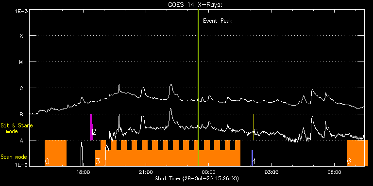 EIS Observation timeline overlay to GOES-Xray curve Code 1" 2" 40" 266" EIS Observations list for this event: STUDY ACRONYM ID DATE OBSERVED DESCRIPTION NOAA# TARGET 0 Atlas_60 | 74865 | 2020/10/28 16:10:41 | AR Observation | | Quiet Sun TIMELINE ID DATE OBSERVED FITS FILE XCEN (+W/-E) YCEN (+N/-S) DUR ----------------------------------------------------------------------------------------------------------------- 74865 | 2020/10/28 16:10:41.000 | eis_l0_20201028_161041.fits.gz | 512.88 | -414.47 | 1h1m39s 1 regcal071 | 74870 | 2020/10/28 18:20:11 | Dark exposures, CCD bottom rows (100s | | Engineering TIMELINE ID DATE OBSERVED FITS FILE XCEN (+W/-E) YCEN (+N/-S) DUR ----------------------------------------------------------------------------------------------------------------- 74870 | 2020/10/28 18:20:11.000 | eis_l0_20201028_182011.fits.gz | 562.58 | -736.39 | 3m21s 2 regcal072 | 74871 | 2020/10/28 18:25:11 | Dark exposures, top CCD rows (100s exp | | Engineering TIMELINE ID DATE OBSERVED FITS FILE XCEN (+W/-E) YCEN (+N/-S) DUR ----------------------------------------------------------------------------------------------------------------- 74871 | 2020/10/28 18:25:11.000 | eis_l0_20201028_182511.fits.gz | 563.20 | -225.39 | 3m22s 3 ar_evolution | 74855 | 2020/10/28 18:35:12 | AR Evolution Study | | Active Region TIMELINE ID DATE OBSERVED FITS FILE XCEN (+W/-E) YCEN (+N/-S) DUR ----------------------------------------------------------------------------------------------------------------- 74855 | 2020/10/28 18:35:12.000 | eis_l0_20201028_183512.fits.gz | 526.26 | -433.23 | 14m47s 74855 | 2020/10/28 18:50:02.000 | eis_l0_20201028_185002.fits.gz | 527.96 | -433.08 | 14m47s 74855 | 2020/10/28 19:04:52.000 | eis_l0_20201028_190452.fits.gz | 529.58 | -433.08 | 14m48s 74855 | 2020/10/28 19:19:42.000 | eis_l0_20201028_191942.fits.gz | 531.20 | -433.00 | 14m48s 74855 | 2020/10/28 19:34:33.000 | eis_l0_20201028_193433.fits.gz | 532.90 | -432.85 | 14m47s 74855 | 2020/10/28 19:49:23.000 | eis_l0_20201028_194923.fits.gz | 534.52 | -432.61 | 14m47s 74855 | 2020/10/28 20:04:13.000 | eis_l0_20201028_200413.fits.gz | 536.15 | -432.54 | 14m48s 74855 | 2020/10/28 20:19:04.000 | eis_l0_20201028_201904.fits.gz | 537.84 | -432.54 | 14m47s 74855 | 2020/10/28 20:33:54.000 | eis_l0_20201028_203354.fits.gz | 539.47 | -432.23 | 14m47s 74855 | 2020/10/28 20:48:44.000 | eis_l0_20201028_204844.fits.gz | 541.09 | -432.15 | 14m48s 74855 | 2020/10/28 21:03:35.000 | eis_l0_20201028_210335.fits.gz | 542.79 | -432.07 | 14m47s 74855 | 2020/10/28 21:18:25.000 | eis_l0_20201028_211825.fits.gz | 544.26 | -431.92 | 14m47s 74855 | 2020/10/28 21:33:15.000 | eis_l0_20201028_213315.fits.gz | 545.88 | -431.84 | 14m47s 74855 | 2020/10/28 21:48:05.000 | eis_l0_20201028_214805.fits.gz | 547.58 | -431.61 | 14m48s 74855 | 2020/10/28 22:02:55.000 | eis_l0_20201028_220255.fits.gz | 549.20 | -431.61 | 14m47s 74855 | 2020/10/28 22:17:45.000 | eis_l0_20201028_221745.fits.gz | 550.82 | -431.38 | 14m47s 74855 | 2020/10/28 22:32:35.000 | eis_l0_20201028_223235.fits.gz | 552.44 | -431.30 | 14m47s 74855 | 2020/10/28 22:47:25.000 | eis_l0_20201028_224725.fits.gz | 553.99 | -431.22 | 14m47s 74855 | 2020/10/28 23:02:14.000 | eis_l0_20201028_230214.fits.gz | 555.69 | -430.92 | 14m47s 74855 | 2020/10/28 23:17:04.000 | eis_l0_20201028_231704.fits.gz | 557.23 | -430.84 | 14m47s 74855 | 2020/10/28 23:31:54.000 | eis_l0_20201028_233154.fits.gz | 558.70 | -430.76 | 14m46s 74855 | 2020/10/28 23:46:43.000 | eis_l0_20201028_234643.fits.gz | 560.40 | -430.68 | 14m47s 74855 | 2020/10/29 00:01:33.000 | eis_l0_20201029_000133.fits.gz | 561.95 | -430.45 | 14m46s 74855 | 2020/10/29 00:16:22.000 | eis_l0_20201029_001622.fits.gz | 563.57 | -430.38 | 14m47s 74855 | 2020/10/29 00:31:12.000 | eis_l0_20201029_003112.fits.gz | 565.19 | -430.30 | 14m46s 74855 | 2020/10/29 00:46:01.000 | eis_l0_20201029_004601.fits.gz | 566.73 | -430.07 | 14m47s 74855 | 2020/10/29 01:00:51.000 | eis_l0_20201029_010051.fits.gz | 568.36 | -429.91 | 14m47s 74855 | 2020/10/29 01:15:41.000 | eis_l0_20201029_011541.fits.gz | 569.90 | -429.76 | 14m48s 4 PRY_slot_contextLITE | 74853 | 2020/10/29 02:03:19 | Pointing Monitoring | | Active Region TIMELINE ID DATE OBSERVED FITS FILE XCEN (+W/-E) YCEN (+N/-S) DUR ----------------------------------------------------------------------------------------------------------------- 74853 | 2020/10/29 02:03:19.000 | eis_l0_20201029_020319.fits.gz | -14.04 | -1.42 | 2m56s 5 XRT_synop_AIA | 74854 | 2020/10/29 02:08:25 | Pointing Monitoring | | Quiet Sun TIMELINE ID DATE OBSERVED FITS FILE XCEN (+W/-E) YCEN (+N/-S) DUR ----------------------------------------------------------------------------------------------------------------- 74854 | 2020/10/29 02:08:25.000 | eis_l0_20201029_020825.fits.gz | -131.49 | -1.50 | 11s 6 HPW021VEL260x512v2 | 74866 | 2020/10/29 06:35:19 | AR Observation | 2779 | Active Region TIMELINE ID DATE OBSERVED FITS FILE XCEN (+W/-E) YCEN (+N/-S) DUR ----------------------------------------------------------------------------------------------------------------- 74866 | 2020/10/29 06:35:19.000 | eis_l0_20201029_063519.fits.gz | 613.37 | -406.90 | 1h0m45s 74866 | 2020/10/29 07:36:11.000 | eis_l0_20201029_073611.fits.gz | 619.47 | -406.43 | 54m27s : Check study information : Download file : View thumbnails For this event, also check for: