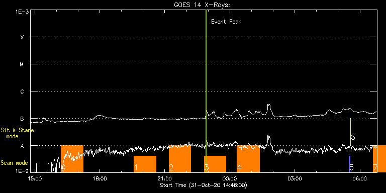 EIS Observation timeline overlay to GOES-Xray curve Code 1" 2" 40" 266" EIS Observations list for this event: STUDY ACRONYM ID DATE OBSERVED DESCRIPTION NOAA# TARGET 0 Atlas_60 | 74913 | 2020/10/31 16:12:14 | Active Region Studies | 2778 | Quiet Sun TIMELINE ID DATE OBSERVED FITS FILE XCEN (+W/-E) YCEN (+N/-S) DUR ----------------------------------------------------------------------------------------------------------------- 74913 | 2020/10/31 16:12:14.000 | eis_l0_20201031_161214.fits.gz | 833.08 | -298.68 | 1h1m39s 1 HPW021VEL260x512v2 | 74914 | 2020/10/31 19:34:43 | Active Region Studies | 2778 | Active Region TIMELINE ID DATE OBSERVED FITS FILE XCEN (+W/-E) YCEN (+N/-S) DUR ----------------------------------------------------------------------------------------------------------------- 74914 | 2020/10/31 19:34:43.000 | eis_l0_20201031_193443.fits.gz | 843.70 | -296.52 | 1h0m45s 2 HPW021VEL260x512v2 | 74915 | 2020/10/31 21:11:43 | Active Region Studies | 2778 | Active Region TIMELINE ID DATE OBSERVED FITS FILE XCEN (+W/-E) YCEN (+N/-S) DUR ----------------------------------------------------------------------------------------------------------------- 74915 | 2020/10/31 21:11:43.000 | eis_l0_20201031_211143.fits.gz | 848.64 | -295.36 | 1h0m45s 3 HPW021VEL260x512v2 | 74916 | 2020/10/31 22:48:43 | Active Region Studies | 2778 | Active Region TIMELINE ID DATE OBSERVED FITS FILE XCEN (+W/-E) YCEN (+N/-S) DUR ----------------------------------------------------------------------------------------------------------------- 74916 | 2020/10/31 22:48:43.000 | eis_l0_20201031_224843.fits.gz | 853.43 | -294.36 | 1h0m45s 4 Atlas_60 | 74917 | 2020/11/01 00:20:13 | Active Region Studies | | Quiet Sun TIMELINE ID DATE OBSERVED FITS FILE XCEN (+W/-E) YCEN (+N/-S) DUR ----------------------------------------------------------------------------------------------------------------- 74917 | 2020/11/01 00:20:13.000 | eis_l0_20201101_002013.fits.gz | 858.01 | -293.20 | 1h1m40s 5 PRY_slot_contextLITE | 74895 | 2020/11/01 05:30:20 | Pointing Monitoring | | Active Region TIMELINE ID DATE OBSERVED FITS FILE XCEN (+W/-E) YCEN (+N/-S) DUR ----------------------------------------------------------------------------------------------------------------- 74895 | 2020/11/01 05:30:20.000 | eis_l0_20201101_053020.fits.gz | -15.29 | -0.42 | 2m56s 6 XRT_synop_AIA | 74896 | 2020/11/01 05:33:35 | Pointing Monitoring | | Quiet Sun TIMELINE ID DATE OBSERVED FITS FILE XCEN (+W/-E) YCEN (+N/-S) DUR ----------------------------------------------------------------------------------------------------------------- 74896 | 2020/11/01 05:33:35.000 | eis_l0_20201101_053335.fits.gz | -132.57 | -0.42 | 10s 7 HPW021VEL260x512v2 | 74918 | 2020/11/01 06:37:20 | Active Region Studies | 2779 | Active Region TIMELINE ID DATE OBSERVED FITS FILE XCEN (+W/-E) YCEN (+N/-S) DUR ----------------------------------------------------------------------------------------------------------------- 74918 | 2020/11/01 06:37:20.000 | eis_l0_20201101_063720.fits.gz | 892.44 | -281.48 | 1h0m44s : Check study information : Download file : View thumbnails For this event, also check for: