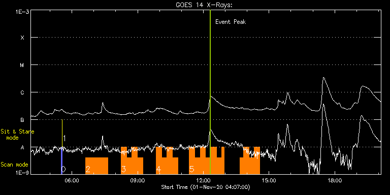 EIS Observation timeline overlay to GOES-Xray curve Code 1" 2" 40" 266" EIS Observations list for this event: STUDY ACRONYM ID DATE OBSERVED DESCRIPTION NOAA# TARGET 0 PRY_slot_contextLITE | 74895 | 2020/11/01 05:30:20 | Pointing Monitoring | | Active Region TIMELINE ID DATE OBSERVED FITS FILE XCEN (+W/-E) YCEN (+N/-S) DUR ----------------------------------------------------------------------------------------------------------------- 74895 | 2020/11/01 05:30:20.000 | eis_l0_20201101_053020.fits.gz | -15.29 | -0.42 | 2m56s 1 XRT_synop_AIA | 74896 | 2020/11/01 05:33:35 | Pointing Monitoring | | Quiet Sun TIMELINE ID DATE OBSERVED FITS FILE XCEN (+W/-E) YCEN (+N/-S) DUR ----------------------------------------------------------------------------------------------------------------- 74896 | 2020/11/01 05:33:35.000 | eis_l0_20201101_053335.fits.gz | -132.57 | -0.42 | 10s 2 HPW021VEL260x512v2 | 74918 | 2020/11/01 06:37:20 | Active Region Studies | 2779 | Active Region TIMELINE ID DATE OBSERVED FITS FILE XCEN (+W/-E) YCEN (+N/-S) DUR ----------------------------------------------------------------------------------------------------------------- 74918 | 2020/11/01 06:37:20.000 | eis_l0_20201101_063720.fits.gz | 892.44 | -281.48 | 1h0m44s 3 ar_evolution | 74919 | 2020/11/01 08:14:40 | AR Evolution Study | 2779 | Active Region TIMELINE ID DATE OBSERVED FITS FILE XCEN (+W/-E) YCEN (+N/-S) DUR ----------------------------------------------------------------------------------------------------------------- 74919 | 2020/11/01 08:14:40.000 | eis_l0_20201101_081440.fits.gz | 892.19 | -281.40 | 14m47s 74919 | 2020/11/01 08:29:30.000 | eis_l0_20201101_082930.fits.gz | 892.12 | -281.40 | 14m47s 74919 | 2020/11/01 08:44:20.000 | eis_l0_20201101_084420.fits.gz | 892.19 | -281.33 | 14m47s 74919 | 2020/11/01 08:59:10.000 | eis_l0_20201101_085910.fits.gz | 892.19 | -281.56 | 14m47s 4 ar_evolution | 74920 | 2020/11/01 09:50:43 | AR Evolution Study | 2779 | Active Region TIMELINE ID DATE OBSERVED FITS FILE XCEN (+W/-E) YCEN (+N/-S) DUR ----------------------------------------------------------------------------------------------------------------- 74920 | 2020/11/01 09:50:43.000 | eis_l0_20201101_095043.fits.gz | 892.19 | -281.48 | 14m47s 74920 | 2020/11/01 10:05:33.000 | eis_l0_20201101_100533.fits.gz | 892.12 | -281.48 | 14m47s 74920 | 2020/11/01 10:20:23.000 | eis_l0_20201101_102023.fits.gz | 892.19 | -281.33 | 14m46s 74920 | 2020/11/01 10:35:12.000 | eis_l0_20201101_103512.fits.gz | 892.19 | -281.40 | 14m47s 5 ar_evolution | 74921 | 2020/11/01 11:21:43 | AR Evolution Study | 2779 | Active Region TIMELINE ID DATE OBSERVED FITS FILE XCEN (+W/-E) YCEN (+N/-S) DUR ----------------------------------------------------------------------------------------------------------------- 74921 | 2020/11/01 11:21:43.000 | eis_l0_20201101_112143.fits.gz | 892.12 | -281.33 | 14m47s 74921 | 2020/11/01 11:36:33.000 | eis_l0_20201101_113633.fits.gz | 892.19 | -281.48 | 14m47s 74921 | 2020/11/01 11:51:23.000 | eis_l0_20201101_115123.fits.gz | 892.19 | -281.40 | 14m47s 74921 | 2020/11/01 12:06:13.000 | eis_l0_20201101_120613.fits.gz | 892.27 | -281.40 | 14m46s 74921 | 2020/11/01 12:21:02.000 | eis_l0_20201101_122102.fits.gz | 892.19 | -281.40 | 14m47s 74921 | 2020/11/01 12:35:52.000 | eis_l0_20201101_123552.fits.gz | 892.27 | -281.33 | 14m46s 74921 | 2020/11/01 12:50:41.000 | eis_l0_20201101_125041.fits.gz | 892.19 | -281.56 | 6m7s 74921 | 2020/11/01 13:39:52.000 | eis_l0_20201101_133952.fits.gz | 892.12 | -281.40 | 10m5s 74921 | 2020/11/01 13:50:00.000 | eis_l0_20201101_135000.fits.gz | 892.19 | -281.40 | 14m47s 74921 | 2020/11/01 14:04:49.000 | eis_l0_20201101_140449.fits.gz | 892.19 | -281.48 | 14m48s 74921 | 2020/11/01 14:19:40.000 | eis_l0_20201101_141940.fits.gz | 892.19 | -281.48 | 14m47s : Check study information : Download file : View thumbnails For this event, also check for: