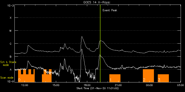 EIS Observation timeline overlay to GOES-Xray curve Code 1" 2" 40" 266" EIS Observations list for this event: STUDY ACRONYM ID DATE OBSERVED DESCRIPTION NOAA# TARGET 0 ar_evolution | 74921 | 2020/11/01 11:21:43 | AR Evolution Study | 2779 | Active Region TIMELINE ID DATE OBSERVED FITS FILE XCEN (+W/-E) YCEN (+N/-S) DUR ----------------------------------------------------------------------------------------------------------------- 74921 | 2020/11/01 11:21:43.000 | eis_l0_20201101_112143.fits.gz | 892.12 | -281.33 | 14m47s 74921 | 2020/11/01 11:36:33.000 | eis_l0_20201101_113633.fits.gz | 892.19 | -281.48 | 14m47s 74921 | 2020/11/01 11:51:23.000 | eis_l0_20201101_115123.fits.gz | 892.19 | -281.40 | 14m47s 74921 | 2020/11/01 12:06:13.000 | eis_l0_20201101_120613.fits.gz | 892.27 | -281.40 | 14m46s 74921 | 2020/11/01 12:21:02.000 | eis_l0_20201101_122102.fits.gz | 892.19 | -281.40 | 14m47s 74921 | 2020/11/01 12:35:52.000 | eis_l0_20201101_123552.fits.gz | 892.27 | -281.33 | 14m46s 74921 | 2020/11/01 12:50:41.000 | eis_l0_20201101_125041.fits.gz | 892.19 | -281.56 | 6m7s 74921 | 2020/11/01 13:39:52.000 | eis_l0_20201101_133952.fits.gz | 892.12 | -281.40 | 10m5s 74921 | 2020/11/01 13:50:00.000 | eis_l0_20201101_135000.fits.gz | 892.19 | -281.40 | 14m47s 74921 | 2020/11/01 14:04:49.000 | eis_l0_20201101_140449.fits.gz | 892.19 | -281.48 | 14m48s 74921 | 2020/11/01 14:19:40.000 | eis_l0_20201101_141940.fits.gz | 892.19 | -281.48 | 14m47s 1 Large_CH_Map | 74891 | 2020/11/01 20:09:43 | HOP 336 (Cycle 25 bright points) North | | Quiet Sun TIMELINE ID DATE OBSERVED FITS FILE XCEN (+W/-E) YCEN (+N/-S) DUR ----------------------------------------------------------------------------------------------------------------- 74891 | 2020/11/01 20:09:43.000 | eis_l0_20201101_200943.fits.gz | -24.74 | 494.34 | 1h1m53s 2 Large_CH_Map | 74893 | 2020/11/01 23:23:10 | HOP 336 (Cycle 25 bright points) South | | Quiet Sun TIMELINE ID DATE OBSERVED FITS FILE XCEN (+W/-E) YCEN (+N/-S) DUR ----------------------------------------------------------------------------------------------------------------- 74893 | 2020/11/01 23:23:10.000 | eis_l0_20201101_232310.fits.gz | -24.58 | -678.51 | 1h1m53s 3 Large_CH_Map | 74894 | 2020/11/02 00:49:09 | HOP 336 (Cycle 25 bright points) South | | Quiet Sun TIMELINE ID DATE OBSERVED FITS FILE XCEN (+W/-E) YCEN (+N/-S) DUR ----------------------------------------------------------------------------------------------------------------- 74894 | 2020/11/02 00:49:09.000 | eis_l0_20201102_004909.fits.gz | -24.66 | -678.51 | 1h1m53s : Check study information : Download file : View thumbnails For this event, also check for: