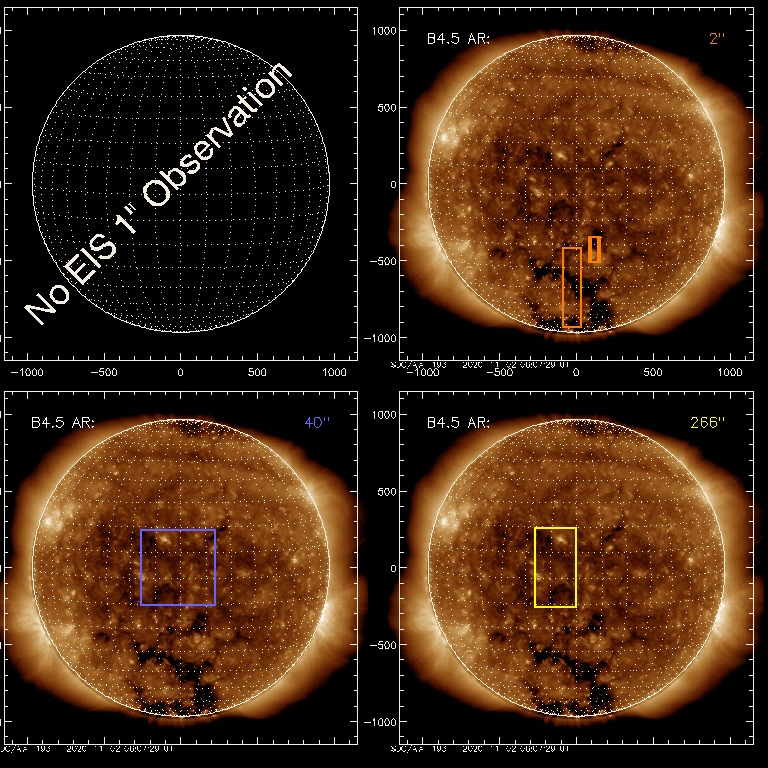 EIS Observation timeline overlay to GOES-Xray curve Code 1" 2" 40" 266" EIS Observations list for this event: STUDY ACRONYM ID DATE OBSERVED DESCRIPTION NOAA# TARGET 0 Large_CH_Map | 74893 | 2020/11/01 23:23:10 | HOP 336 (Cycle 25 bright points) South | | Quiet Sun TIMELINE ID DATE OBSERVED FITS FILE XCEN (+W/-E) YCEN (+N/-S) DUR ----------------------------------------------------------------------------------------------------------------- 74893 | 2020/11/01 23:23:10.000 | eis_l0_20201101_232310.fits.gz | -24.58 | -678.51 | 1h1m53s 1 Large_CH_Map | 74894 | 2020/11/02 00:49:09 | HOP 336 (Cycle 25 bright points) South | | Quiet Sun TIMELINE ID DATE OBSERVED FITS FILE XCEN (+W/-E) YCEN (+N/-S) DUR ----------------------------------------------------------------------------------------------------------------- 74894 | 2020/11/02 00:49:09.000 | eis_l0_20201102_004909.fits.gz | -24.66 | -678.51 | 1h1m53s 2 PRY_slot_contextLITE | 74897 | 2020/11/02 05:50:20 | Pointing Monitoring | | Active Region TIMELINE ID DATE OBSERVED FITS FILE XCEN (+W/-E) YCEN (+N/-S) DUR ----------------------------------------------------------------------------------------------------------------- 74897 | 2020/11/02 05:50:20.000 | eis_l0_20201102_055020.fits.gz | -15.21 | -0.50 | 2m56s 3 XRT_synop_AIA | 74898 | 2020/11/02 05:53:34 | Pointing Monitoring | | Quiet Sun TIMELINE ID DATE OBSERVED FITS FILE XCEN (+W/-E) YCEN (+N/-S) DUR ----------------------------------------------------------------------------------------------------------------- 74898 | 2020/11/02 05:53:34.000 | eis_l0_20201102_055334.fits.gz | -132.49 | -0.42 | 11s 4 dhb_atlas_120m_30" | 74901 | 2020/11/02 07:12:19 | QS Network and Coronal BP | | Quiet Sun TIMELINE ID DATE OBSERVED FITS FILE XCEN (+W/-E) YCEN (+N/-S) DUR ----------------------------------------------------------------------------------------------------------------- 74901 | 2020/11/02 07:12:19.000 | eis_l0_20201102_071219.fits.gz | 111.62 | -430.08 | 1h0m49s 5 dhb_atlas_120m_30" | 74902 | 2020/11/02 08:49:39 | QS Network and Coronal BP | | Quiet Sun TIMELINE ID DATE OBSERVED FITS FILE XCEN (+W/-E) YCEN (+N/-S) DUR ----------------------------------------------------------------------------------------------------------------- 74902 | 2020/11/02 08:49:39.000 | eis_l0_20201102_084939.fits.gz | 125.22 | -430.00 | 1h0m49s : Check study information : Download file : View thumbnails For this event, also check for: