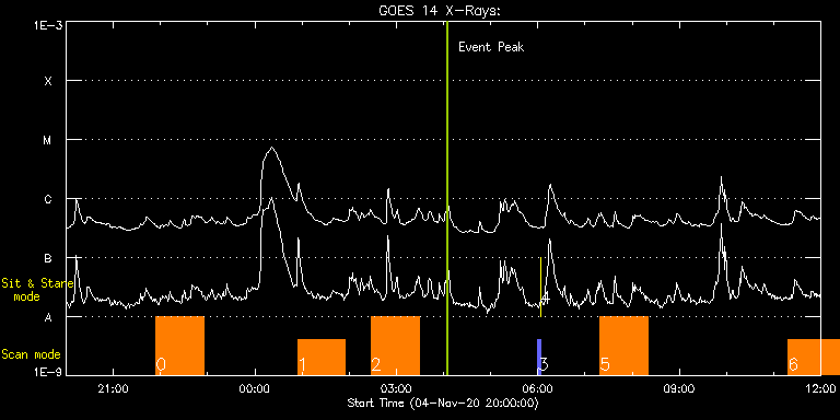 EIS Observation timeline overlay to GOES-Xray curve Code 1" 2" 40" 266" EIS Observations list for this event: STUDY ACRONYM ID DATE OBSERVED DESCRIPTION NOAA# TARGET 0 HPW021VEL260x512v2 | 74939 | 2020/11/04 21:54:10 | Solar Orbiter/SPICE observation suppor | 2781 | Active Region TIMELINE ID DATE OBSERVED FITS FILE XCEN (+W/-E) YCEN (+N/-S) DUR ----------------------------------------------------------------------------------------------------------------- 74939 | 2020/11/04 21:54:10.000 | eis_l0_20201104_215410.fits.gz | -730.04 | -421.04 | 1h0m45s 1 HPW021VEL260x512v2 | 74940 | 2020/11/05 00:54:42 | Solar Orbiter/SPICE observation suppor | | Active Region TIMELINE ID DATE OBSERVED FITS FILE XCEN (+W/-E) YCEN (+N/-S) DUR ----------------------------------------------------------------------------------------------------------------- 74940 | 2020/11/05 00:54:42.000 | eis_l0_20201105_005442.fits.gz | -260.70 | -414.17 | 1h0m46s 2 Atlas_60 | 74941 | 2020/11/05 02:27:43 | Solar Orbiter/SPICE observation suppor | | Quiet Sun TIMELINE ID DATE OBSERVED FITS FILE XCEN (+W/-E) YCEN (+N/-S) DUR ----------------------------------------------------------------------------------------------------------------- 74941 | 2020/11/05 02:27:43.000 | eis_l0_20201105_022743.fits.gz | -247.38 | -414.24 | 1h1m39s 3 PRY_slot_contextLITE | 74949 | 2020/11/05 06:00:19 | Pointing Monitoring | | Active Region TIMELINE ID DATE OBSERVED FITS FILE XCEN (+W/-E) YCEN (+N/-S) DUR ----------------------------------------------------------------------------------------------------------------- 74949 | 2020/11/05 06:00:19.000 | eis_l0_20201105_060019.fits.gz | -15.21 | -0.42 | 2m56s 4 XRT_synop_AIA | 74950 | 2020/11/05 06:03:34 | Pointing Monitoring | | Quiet Sun TIMELINE ID DATE OBSERVED FITS FILE XCEN (+W/-E) YCEN (+N/-S) DUR ----------------------------------------------------------------------------------------------------------------- 74950 | 2020/11/05 06:03:34.000 | eis_l0_20201105_060334.fits.gz | -132.57 | -0.58 | 10s 5 HPW021VEL260x512v2 | 74942 | 2020/11/05 07:19:19 | Solar Orbiter/SPICE observation suppor | | Active Region TIMELINE ID DATE OBSERVED FITS FILE XCEN (+W/-E) YCEN (+N/-S) DUR ----------------------------------------------------------------------------------------------------------------- 74942 | 2020/11/05 07:19:19.000 | eis_l0_20201105_071919.fits.gz | -483.25 | 286.16 | 1h0m45s 6 HOP81_new_study | 74951 | 2020/11/05 11:18:42 | Polar Monitoring Campaign during the S | | Coronal Hole TIMELINE ID DATE OBSERVED FITS FILE XCEN (+W/-E) YCEN (+N/-S) DUR ----------------------------------------------------------------------------------------------------------------- 74951 | 2020/11/05 11:18:42.000 | eis_l0_20201105_111842.fits.gz | -25.83 | -921.61 | 1h9m45s : Check study information : Download file : View thumbnails For this event, also check for: