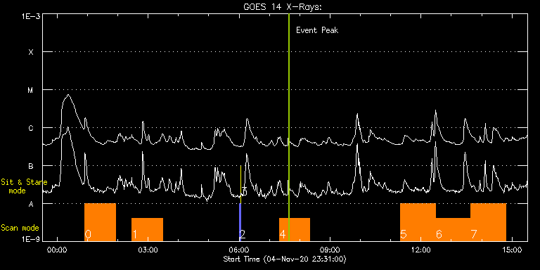 EIS Observation timeline overlay to GOES-Xray curve Code 1" 2" 40" 266" EIS Observations list for this event: STUDY ACRONYM ID DATE OBSERVED DESCRIPTION NOAA# TARGET 0 HPW021VEL260x512v2 | 74940 | 2020/11/05 00:54:42 | Solar Orbiter/SPICE observation suppor | | Active Region TIMELINE ID DATE OBSERVED FITS FILE XCEN (+W/-E) YCEN (+N/-S) DUR ----------------------------------------------------------------------------------------------------------------- 74940 | 2020/11/05 00:54:42.000 | eis_l0_20201105_005442.fits.gz | -260.70 | -414.17 | 1h0m46s 1 Atlas_60 | 74941 | 2020/11/05 02:27:43 | Solar Orbiter/SPICE observation suppor | | Quiet Sun TIMELINE ID DATE OBSERVED FITS FILE XCEN (+W/-E) YCEN (+N/-S) DUR ----------------------------------------------------------------------------------------------------------------- 74941 | 2020/11/05 02:27:43.000 | eis_l0_20201105_022743.fits.gz | -247.38 | -414.24 | 1h1m39s 2 PRY_slot_contextLITE | 74949 | 2020/11/05 06:00:19 | Pointing Monitoring | | Active Region TIMELINE ID DATE OBSERVED FITS FILE XCEN (+W/-E) YCEN (+N/-S) DUR ----------------------------------------------------------------------------------------------------------------- 74949 | 2020/11/05 06:00:19.000 | eis_l0_20201105_060019.fits.gz | -15.21 | -0.42 | 2m56s 3 XRT_synop_AIA | 74950 | 2020/11/05 06:03:34 | Pointing Monitoring | | Quiet Sun TIMELINE ID DATE OBSERVED FITS FILE XCEN (+W/-E) YCEN (+N/-S) DUR ----------------------------------------------------------------------------------------------------------------- 74950 | 2020/11/05 06:03:34.000 | eis_l0_20201105_060334.fits.gz | -132.57 | -0.58 | 10s 4 HPW021VEL260x512v2 | 74942 | 2020/11/05 07:19:19 | Solar Orbiter/SPICE observation suppor | | Active Region TIMELINE ID DATE OBSERVED FITS FILE XCEN (+W/-E) YCEN (+N/-S) DUR ----------------------------------------------------------------------------------------------------------------- 74942 | 2020/11/05 07:19:19.000 | eis_l0_20201105_071919.fits.gz | -483.25 | 286.16 | 1h0m45s 5 HOP81_new_study | 74951 | 2020/11/05 11:18:42 | Polar Monitoring Campaign during the S | | Coronal Hole TIMELINE ID DATE OBSERVED FITS FILE XCEN (+W/-E) YCEN (+N/-S) DUR ----------------------------------------------------------------------------------------------------------------- 74951 | 2020/11/05 11:18:42.000 | eis_l0_20201105_111842.fits.gz | -25.83 | -921.61 | 1h9m45s 6 HOP81_new_study | 74952 | 2020/11/05 12:28:59 | Polar Monitoring Campaign during the S | | Coronal Hole TIMELINE ID DATE OBSERVED FITS FILE XCEN (+W/-E) YCEN (+N/-S) DUR ----------------------------------------------------------------------------------------------------------------- 74952 | 2020/11/05 12:28:59.000 | eis_l0_20201105_122859.fits.gz | -25.91 | -921.38 | 1h9m45s 7 HOP81_new_study | 74953 | 2020/11/05 13:38:48 | Polar Monitoring Campaign during the S | | Coronal Hole TIMELINE ID DATE OBSERVED FITS FILE XCEN (+W/-E) YCEN (+N/-S) DUR ----------------------------------------------------------------------------------------------------------------- 74953 | 2020/11/05 13:38:48.000 | eis_l0_20201105_133848.fits.gz | -25.91 | -921.45 | 1h9m45s : Check study information : Download file : View thumbnails For this event, also check for: