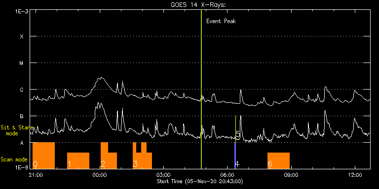 EIS Observation timeline overlay to GOES-Xray curve Code 1" 2" 40" 266" EIS Observations list for this event: STUDY ACRONYM ID DATE OBSERVED DESCRIPTION NOAA# TARGET 0 HPW021VEL260x512v2 | 74956 | 2020/11/05 20:51:41 | Solar Orbiter/SPICE observation suppor | 2781 | Active Region TIMELINE ID DATE OBSERVED FITS FILE XCEN (+W/-E) YCEN (+N/-S) DUR ----------------------------------------------------------------------------------------------------------------- 74956 | 2020/11/05 20:51:41.000 | eis_l0_20201105_205141.fits.gz | -657.00 | -426.53 | 1h0m45s 1 Atlas_60 | 74959 | 2020/11/05 22:28:13 | Solar Orbiter/SPICE observation suppor | 2781 | Quiet Sun TIMELINE ID DATE OBSERVED FITS FILE XCEN (+W/-E) YCEN (+N/-S) DUR ----------------------------------------------------------------------------------------------------------------- 74959 | 2020/11/05 22:28:13.000 | eis_l0_20201105_222813.fits.gz | -647.00 | -427.07 | 1h1m40s 2 DHB_006 | 74967 | 2020/11/06 00:03:14 | Solar Orbiter/SPICE observation suppor | 2781 | Active Region TIMELINE ID DATE OBSERVED FITS FILE XCEN (+W/-E) YCEN (+N/-S) DUR ----------------------------------------------------------------------------------------------------------------- 74967 | 2020/11/06 00:03:14.000 | eis_l0_20201106_000314.fits.gz | -638.09 | -427.68 | 19m39s 74967 | 2020/11/06 00:23:27.000 | eis_l0_20201106_002327.fits.gz | -636.09 | -427.92 | 24m58s 3 ar_evolution | 74968 | 2020/11/06 01:33:44 | AR evolution | | Active Region TIMELINE ID DATE OBSERVED FITS FILE XCEN (+W/-E) YCEN (+N/-S) DUR ----------------------------------------------------------------------------------------------------------------- 74968 | 2020/11/06 01:33:44.000 | eis_l0_20201106_013344.fits.gz | -628.90 | -428.15 | 8m17s 74968 | 2020/11/06 01:42:03.000 | eis_l0_20201106_014203.fits.gz | -627.97 | -428.30 | 14m47s 74968 | 2020/11/06 01:56:53.000 | eis_l0_20201106_015653.fits.gz | -626.51 | -428.38 | 14m47s 74968 | 2020/11/06 02:11:43.000 | eis_l0_20201106_021143.fits.gz | -624.88 | -428.46 | 14m47s 4 PRY_slot_contextLITE | 74962 | 2020/11/06 06:20:20 | Pointing Monitoring | | Active Region TIMELINE ID DATE OBSERVED FITS FILE XCEN (+W/-E) YCEN (+N/-S) DUR ----------------------------------------------------------------------------------------------------------------- 74962 | 2020/11/06 06:20:20.000 | eis_l0_20201106_062020.fits.gz | -15.29 | -0.50 | 2m56s 5 XRT_synop_AIA | 74963 | 2020/11/06 06:23:35 | Pointing Monitoring | | Quiet Sun TIMELINE ID DATE OBSERVED FITS FILE XCEN (+W/-E) YCEN (+N/-S) DUR ----------------------------------------------------------------------------------------------------------------- 74963 | 2020/11/06 06:23:35.000 | eis_l0_20201106_062335.fits.gz | -132.57 | -0.50 | 10s 6 HPW021VEL260x512v2 | 74958 | 2020/11/06 07:53:50 | Solar Orbiter/SPICE observation suppor | 2780 | Active Region TIMELINE ID DATE OBSERVED FITS FILE XCEN (+W/-E) YCEN (+N/-S) DUR ----------------------------------------------------------------------------------------------------------------- 74958 | 2020/11/06 07:53:50.000 | eis_l0_20201106_075350.fits.gz | -214.49 | 283.15 | 1h0m44s : Check study information : Download file : View thumbnails For this event, also check for: