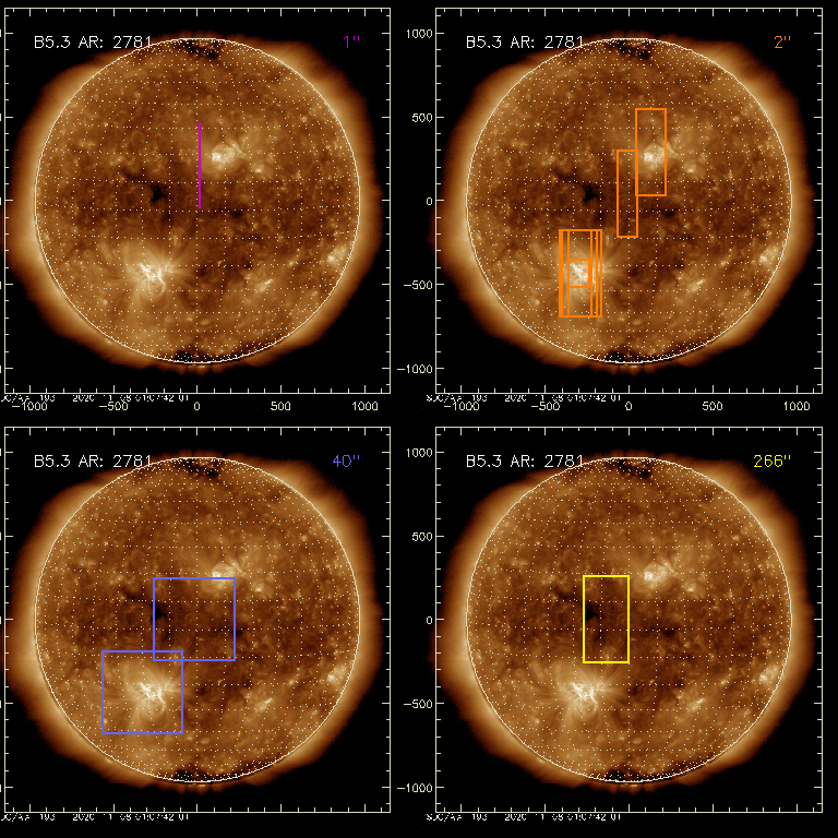 EIS Observation timeline overlay to GOES-Xray curve Code 1" 2" 40" 266" EIS Observations list for this event: STUDY ACRONYM ID DATE OBSERVED DESCRIPTION NOAA# TARGET 0 Large_CH_Map | 75003 | 2020/11/07 18:47:40 | HOP407-Solar Orbiter/SPICE STP122 obse | | Quiet Sun TIMELINE ID DATE OBSERVED FITS FILE XCEN (+W/-E) YCEN (+N/-S) DUR ----------------------------------------------------------------------------------------------------------------- 75003 | 2020/11/07 18:47:40.000 | eis_l0_20201107_184740.fits.gz | -4.72 | 37.50 | 1h1m53s 1 PRY_slot_contextLIQS | 74990 | 2020/11/07 22:00:49 | HOP407-Solar Orbiter/SPICE STP122 obse | 2781 | Quiet Sun TIMELINE ID DATE OBSERVED FITS FILE XCEN (+W/-E) YCEN (+N/-S) DUR ----------------------------------------------------------------------------------------------------------------- 74990 | 2020/11/07 22:00:49.000 | eis_l0_20201107_220049.fits.gz | -324.22 | -438.81 | 5m27s 2 HPW021VEL260x512v2 | 74991 | 2020/11/07 22:06:41 | HOP407-Solar Orbiter/SPICE STP122 obse | 2781 | Active Region TIMELINE ID DATE OBSERVED FITS FILE XCEN (+W/-E) YCEN (+N/-S) DUR ----------------------------------------------------------------------------------------------------------------- 74991 | 2020/11/07 22:06:41.000 | eis_l0_20201107_220641.fits.gz | -309.13 | -438.81 | 1h0m45s 3 Atlas_60 | 74992 | 2020/11/07 23:36:13 | HOP407-Solar Orbiter/SPICE STP122 obse | 2781 | Quiet Sun TIMELINE ID DATE OBSERVED FITS FILE XCEN (+W/-E) YCEN (+N/-S) DUR ----------------------------------------------------------------------------------------------------------------- 74992 | 2020/11/07 23:36:13.000 | eis_l0_20201107_233613.fits.gz | -296.66 | -438.96 | 1h1m39s 4 DHB_006 | 74993 | 2020/11/08 01:01:13 | HOP407-Solar Orbiter/SPICE STP122 obse | 2781 | Active Region TIMELINE ID DATE OBSERVED FITS FILE XCEN (+W/-E) YCEN (+N/-S) DUR ----------------------------------------------------------------------------------------------------------------- 74993 | 2020/11/08 01:01:13.000 | eis_l0_20201108_010113.fits.gz | -285.98 | -438.96 | 1h5m23s 5 HPW021VEL260x512v2 | 74973 | 2020/11/08 02:34:43 | HOP407-Solar Orbiter/SPICE STP122 obse | | Active Region TIMELINE ID DATE OBSERVED FITS FILE XCEN (+W/-E) YCEN (+N/-S) DUR ----------------------------------------------------------------------------------------------------------------- 74973 | 2020/11/08 02:34:43.000 | eis_l0_20201108_023443.fits.gz | -273.13 | -439.20 | 1h0m45s 6 regcal070 | 74994 | 2020/11/08 04:30:11 | Flat field with overscan pixels (50*8) | | Engineering TIMELINE ID DATE OBSERVED FITS FILE XCEN (+W/-E) YCEN (+N/-S) DUR ----------------------------------------------------------------------------------------------------------------- 74994 | 2020/11/08 04:30:11.000 | eis_l0_20201108_043011.fits.gz | 14.51 | 205.58 | 2s 7 PRY_slot_contextLITE | 74995 | 2020/11/08 06:00:19 | Pointing Monitoring | | Active Region TIMELINE ID DATE OBSERVED FITS FILE XCEN (+W/-E) YCEN (+N/-S) DUR ----------------------------------------------------------------------------------------------------------------- 74995 | 2020/11/08 06:00:19.000 | eis_l0_20201108_060019.fits.gz | -15.29 | -0.42 | 2m57s 8 XRT_synop_AIA | 74996 | 2020/11/08 06:03:34 | Pointing Monitoring | | Quiet Sun TIMELINE ID DATE OBSERVED FITS FILE XCEN (+W/-E) YCEN (+N/-S) DUR ----------------------------------------------------------------------------------------------------------------- 74996 | 2020/11/08 06:03:34.000 | eis_l0_20201108_060334.fits.gz | -132.57 | -0.50 | 10s 9 HPW021VEL260x512v2 | 74976 | 2020/11/08 07:26:19 | HOP407-Solar Orbiter/SPICE STP122 obse | | Active Region TIMELINE ID DATE OBSERVED FITS FILE XCEN (+W/-E) YCEN (+N/-S) DUR ----------------------------------------------------------------------------------------------------------------- 74976 | 2020/11/08 07:26:19.000 | eis_l0_20201108_072619.fits.gz | 131.33 | 285.23 | 1h0m44s : Check study information : Download file : View thumbnails For this event, also check for: