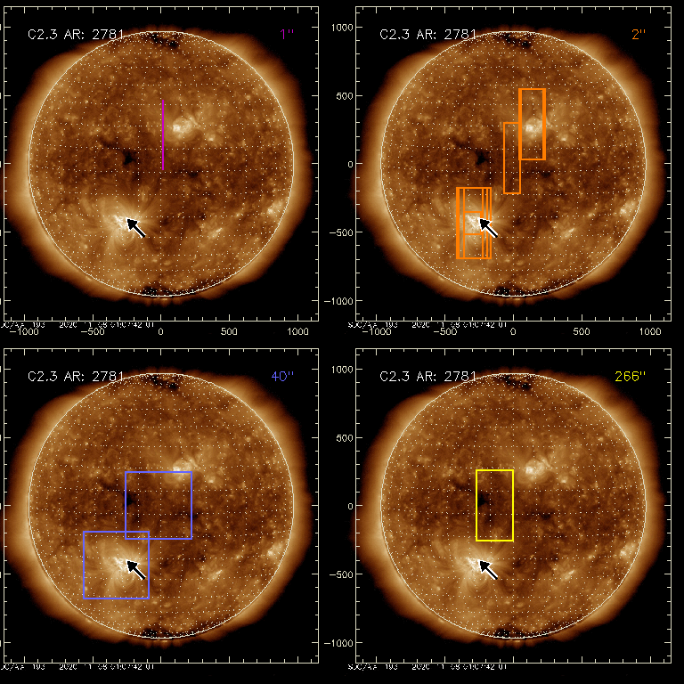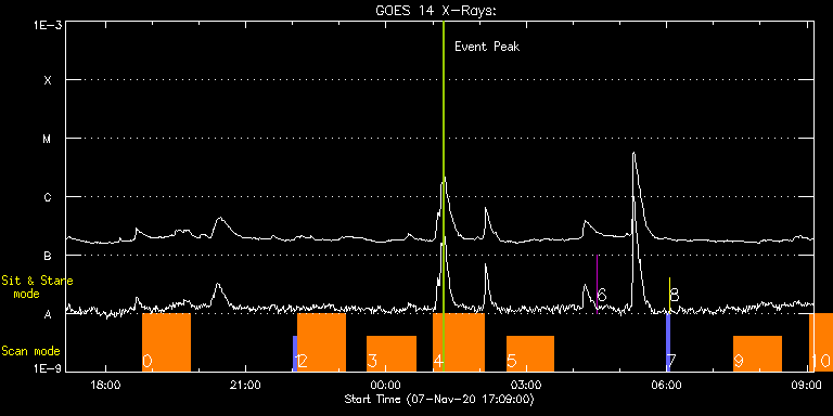 EIS Observation timeline overlay to GOES-Xray curve Code 1" 2" 40" 266" EIS Observations list for this event: STUDY ACRONYM ID DATE OBSERVED DESCRIPTION NOAA# TARGET 0 Large_CH_Map | 75003 | 2020/11/07 18:47:40 | HOP407-Solar Orbiter/SPICE STP122 obse | | Quiet Sun TIMELINE ID DATE OBSERVED FITS FILE XCEN (+W/-E) YCEN (+N/-S) DUR ----------------------------------------------------------------------------------------------------------------- 75003 | 2020/11/07 18:47:40.000 | eis_l0_20201107_184740.fits.gz | -4.72 | 37.50 | 1h1m53s 1 PRY_slot_contextLIQS | 74990 | 2020/11/07 22:00:49 | HOP407-Solar Orbiter/SPICE STP122 obse | 2781 | Quiet Sun TIMELINE ID DATE OBSERVED FITS FILE XCEN (+W/-E) YCEN (+N/-S) DUR ----------------------------------------------------------------------------------------------------------------- 74990 | 2020/11/07 22:00:49.000 | eis_l0_20201107_220049.fits.gz | -324.22 | -438.81 | 5m27s 2 HPW021VEL260x512v2 | 74991 | 2020/11/07 22:06:41 | HOP407-Solar Orbiter/SPICE STP122 obse | 2781 | Active Region TIMELINE ID DATE OBSERVED FITS FILE XCEN (+W/-E) YCEN (+N/-S) DUR ----------------------------------------------------------------------------------------------------------------- 74991 | 2020/11/07 22:06:41.000 | eis_l0_20201107_220641.fits.gz | -309.13 | -438.81 | 1h0m45s 3 Atlas_60 | 74992 | 2020/11/07 23:36:13 | HOP407-Solar Orbiter/SPICE STP122 obse | 2781 | Quiet Sun TIMELINE ID DATE OBSERVED FITS FILE XCEN (+W/-E) YCEN (+N/-S) DUR ----------------------------------------------------------------------------------------------------------------- 74992 | 2020/11/07 23:36:13.000 | eis_l0_20201107_233613.fits.gz | -296.66 | -438.96 | 1h1m39s 4 DHB_006 | 74993 | 2020/11/08 01:01:13 | HOP407-Solar Orbiter/SPICE STP122 obse | 2781 | Active Region TIMELINE ID DATE OBSERVED FITS FILE XCEN (+W/-E) YCEN (+N/-S) DUR ----------------------------------------------------------------------------------------------------------------- 74993 | 2020/11/08 01:01:13.000 | eis_l0_20201108_010113.fits.gz | -285.98 | -438.96 | 1h5m23s 5 HPW021VEL260x512v2 | 74973 | 2020/11/08 02:34:43 | HOP407-Solar Orbiter/SPICE STP122 obse | | Active Region TIMELINE ID DATE OBSERVED FITS FILE XCEN (+W/-E) YCEN (+N/-S) DUR ----------------------------------------------------------------------------------------------------------------- 74973 | 2020/11/08 02:34:43.000 | eis_l0_20201108_023443.fits.gz | -273.13 | -439.20 | 1h0m45s 6 regcal070 | 74994 | 2020/11/08 04:30:11 | Flat field with overscan pixels (50*8) | | Engineering TIMELINE ID DATE OBSERVED FITS FILE XCEN (+W/-E) YCEN (+N/-S) DUR ----------------------------------------------------------------------------------------------------------------- 74994 | 2020/11/08 04:30:11.000 | eis_l0_20201108_043011.fits.gz | 14.51 | 205.58 | 2s 7 PRY_slot_contextLITE | 74995 | 2020/11/08 06:00:19 | Pointing Monitoring | | Active Region TIMELINE ID DATE OBSERVED FITS FILE XCEN (+W/-E) YCEN (+N/-S) DUR ----------------------------------------------------------------------------------------------------------------- 74995 | 2020/11/08 06:00:19.000 | eis_l0_20201108_060019.fits.gz | -15.29 | -0.42 | 2m57s 8 XRT_synop_AIA | 74996 | 2020/11/08 06:03:34 | Pointing Monitoring | | Quiet Sun TIMELINE ID DATE OBSERVED FITS FILE XCEN (+W/-E) YCEN (+N/-S) DUR ----------------------------------------------------------------------------------------------------------------- 74996 | 2020/11/08 06:03:34.000 | eis_l0_20201108_060334.fits.gz | -132.57 | -0.50 | 10s 9 HPW021VEL260x512v2 | 74976 | 2020/11/08 07:26:19 | HOP407-Solar Orbiter/SPICE STP122 obse | | Active Region TIMELINE ID DATE OBSERVED FITS FILE XCEN (+W/-E) YCEN (+N/-S) DUR ----------------------------------------------------------------------------------------------------------------- 74976 | 2020/11/08 07:26:19.000 | eis_l0_20201108_072619.fits.gz | 131.33 | 285.23 | 1h0m44s 10 HPW021VEL260x512v2 | 74977 | 2020/11/08 09:03:39 | HOP407-Solar Orbiter/SPICE STP122 obse | 2780 | Active Region TIMELINE ID DATE OBSERVED FITS FILE XCEN (+W/-E) YCEN (+N/-S) DUR ----------------------------------------------------------------------------------------------------------------- 74977 | 2020/11/08 09:03:39.000 | eis_l0_20201108_090339.fits.gz | 145.08 | 285.62 | 1h0m45s : Check study information : Download file : View thumbnails For this event, also check for: