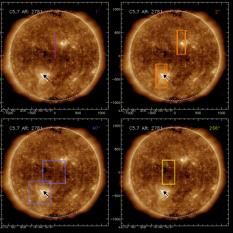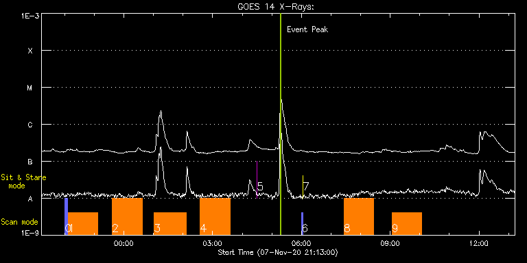EIS Observation timeline overlay to GOES-Xray curve Code 1" 2" 40" 266" EIS Observations list for this event: STUDY ACRONYM ID DATE OBSERVED DESCRIPTION NOAA# TARGET 0 PRY_slot_contextLIQS | 74990 | 2020/11/07 22:00:49 | HOP407-Solar Orbiter/SPICE STP122 obse | 2781 | Quiet Sun TIMELINE ID DATE OBSERVED FITS FILE XCEN (+W/-E) YCEN (+N/-S) DUR ----------------------------------------------------------------------------------------------------------------- 74990 | 2020/11/07 22:00:49.000 | eis_l0_20201107_220049.fits.gz | -324.22 | -438.81 | 5m27s 1 HPW021VEL260x512v2 | 74991 | 2020/11/07 22:06:41 | HOP407-Solar Orbiter/SPICE STP122 obse | 2781 | Active Region TIMELINE ID DATE OBSERVED FITS FILE XCEN (+W/-E) YCEN (+N/-S) DUR ----------------------------------------------------------------------------------------------------------------- 74991 | 2020/11/07 22:06:41.000 | eis_l0_20201107_220641.fits.gz | -309.13 | -438.81 | 1h0m45s 2 Atlas_60 | 74992 | 2020/11/07 23:36:13 | HOP407-Solar Orbiter/SPICE STP122 obse | 2781 | Quiet Sun TIMELINE ID DATE OBSERVED FITS FILE XCEN (+W/-E) YCEN (+N/-S) DUR ----------------------------------------------------------------------------------------------------------------- 74992 | 2020/11/07 23:36:13.000 | eis_l0_20201107_233613.fits.gz | -296.66 | -438.96 | 1h1m39s 3 DHB_006 | 74993 | 2020/11/08 01:01:13 | HOP407-Solar Orbiter/SPICE STP122 obse | 2781 | Active Region TIMELINE ID DATE OBSERVED FITS FILE XCEN (+W/-E) YCEN (+N/-S) DUR ----------------------------------------------------------------------------------------------------------------- 74993 | 2020/11/08 01:01:13.000 | eis_l0_20201108_010113.fits.gz | -285.98 | -438.96 | 1h5m23s 4 HPW021VEL260x512v2 | 74973 | 2020/11/08 02:34:43 | HOP407-Solar Orbiter/SPICE STP122 obse | | Active Region TIMELINE ID DATE OBSERVED FITS FILE XCEN (+W/-E) YCEN (+N/-S) DUR ----------------------------------------------------------------------------------------------------------------- 74973 | 2020/11/08 02:34:43.000 | eis_l0_20201108_023443.fits.gz | -273.13 | -439.20 | 1h0m45s 5 regcal070 | 74994 | 2020/11/08 04:30:11 | Flat field with overscan pixels (50*8) | | Engineering TIMELINE ID DATE OBSERVED FITS FILE XCEN (+W/-E) YCEN (+N/-S) DUR ----------------------------------------------------------------------------------------------------------------- 74994 | 2020/11/08 04:30:11.000 | eis_l0_20201108_043011.fits.gz | 14.51 | 205.58 | 2s 6 PRY_slot_contextLITE | 74995 | 2020/11/08 06:00:19 | Pointing Monitoring | | Active Region TIMELINE ID DATE OBSERVED FITS FILE XCEN (+W/-E) YCEN (+N/-S) DUR ----------------------------------------------------------------------------------------------------------------- 74995 | 2020/11/08 06:00:19.000 | eis_l0_20201108_060019.fits.gz | -15.29 | -0.42 | 2m57s 7 XRT_synop_AIA | 74996 | 2020/11/08 06:03:34 | Pointing Monitoring | | Quiet Sun TIMELINE ID DATE OBSERVED FITS FILE XCEN (+W/-E) YCEN (+N/-S) DUR ----------------------------------------------------------------------------------------------------------------- 74996 | 2020/11/08 06:03:34.000 | eis_l0_20201108_060334.fits.gz | -132.57 | -0.50 | 10s 8 HPW021VEL260x512v2 | 74976 | 2020/11/08 07:26:19 | HOP407-Solar Orbiter/SPICE STP122 obse | | Active Region TIMELINE ID DATE OBSERVED FITS FILE XCEN (+W/-E) YCEN (+N/-S) DUR ----------------------------------------------------------------------------------------------------------------- 74976 | 2020/11/08 07:26:19.000 | eis_l0_20201108_072619.fits.gz | 131.33 | 285.23 | 1h0m44s 9 HPW021VEL260x512v2 | 74977 | 2020/11/08 09:03:39 | HOP407-Solar Orbiter/SPICE STP122 obse | 2780 | Active Region TIMELINE ID DATE OBSERVED FITS FILE XCEN (+W/-E) YCEN (+N/-S) DUR ----------------------------------------------------------------------------------------------------------------- 74977 | 2020/11/08 09:03:39.000 | eis_l0_20201108_090339.fits.gz | 145.08 | 285.62 | 1h0m45s : Check study information : Download file : View thumbnails For this event, also check for: