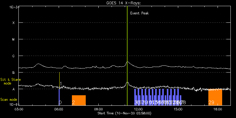 EIS Observation timeline overlay to GOES-Xray curve Code 1" 2" 40" 266" EIS Observations list for this event: STUDY ACRONYM ID DATE OBSERVED DESCRIPTION NOAA# TARGET 0 PRY_slot_contextLITE | 74999 | 2020/11/10 05:59:48 | Pointing Monitoring | | Active Region TIMELINE ID DATE OBSERVED FITS FILE XCEN (+W/-E) YCEN (+N/-S) DUR ----------------------------------------------------------------------------------------------------------------- 74999 | 2020/11/10 05:59:48.000 | eis_l0_20201110_055948.fits.gz | -15.21 | -0.42 | 2m56s 1 XRT_synop_AIA | 75000 | 2020/11/10 06:03:02 | Pointing Monitoring | | Quiet Sun TIMELINE ID DATE OBSERVED FITS FILE XCEN (+W/-E) YCEN (+N/-S) DUR ----------------------------------------------------------------------------------------------------------------- 75000 | 2020/11/10 06:03:02.000 | eis_l0_20201110_060302.fits.gz | -132.57 | -0.35 | 10s 2 HPW021VEL260x512v2 | 74986 | 2020/11/10 07:00:19 | HOP407-Solar Orbiter/SPICE STP122 obse | | Active Region TIMELINE ID DATE OBSERVED FITS FILE XCEN (+W/-E) YCEN (+N/-S) DUR ----------------------------------------------------------------------------------------------------------------- 74986 | 2020/11/10 07:00:19.000 | eis_l0_20201110_070019.fits.gz | 164.09 | -436.80 | 1h0m44s 3 full_sun_slot_scan_2 | 75004 | 2020/11/10 11:42:20 | HOP 130 #1 (1/2) | | Quiet Sun TIMELINE ID DATE OBSERVED FITS FILE XCEN (+W/-E) YCEN (+N/-S) DUR ----------------------------------------------------------------------------------------------------------------- 75004 | 2020/11/10 11:42:20.000 | eis_l0_20201110_114220.fits.gz | 894.51 | 185.58 | 5m27s 4 full_sun_slot_scan_2 | 75005 | 2020/11/10 11:47:52 | HOP 130 #1 (2/2) | | Quiet Sun TIMELINE ID DATE OBSERVED FITS FILE XCEN (+W/-E) YCEN (+N/-S) DUR ----------------------------------------------------------------------------------------------------------------- 75005 | 2020/11/10 11:47:52.000 | eis_l0_20201110_114752.fits.gz | 894.51 | -286.42 | 5m27s 5 full_sun_slot_scan_2 | 75006 | 2020/11/10 11:58:13 | HOP 130 #2 (1/2) | | Quiet Sun TIMELINE ID DATE OBSERVED FITS FILE XCEN (+W/-E) YCEN (+N/-S) DUR ----------------------------------------------------------------------------------------------------------------- 75006 | 2020/11/10 11:58:13.000 | eis_l0_20201110_115813.fits.gz | 426.47 | 185.50 | 5m28s 6 full_sun_slot_scan_2 | 75007 | 2020/11/10 12:03:46 | HOP 130 #2 (2/2) | 2781 | Quiet Sun TIMELINE ID DATE OBSERVED FITS FILE XCEN (+W/-E) YCEN (+N/-S) DUR ----------------------------------------------------------------------------------------------------------------- 75007 | 2020/11/10 12:03:46.000 | eis_l0_20201110_120346.fits.gz | 426.47 | -286.50 | 5m27s 7 full_sun_slot_scan_2 | 75008 | 2020/11/10 12:14:14 | HOP 130 #3 (1/2) | | Quiet Sun TIMELINE ID DATE OBSERVED FITS FILE XCEN (+W/-E) YCEN (+N/-S) DUR ----------------------------------------------------------------------------------------------------------------- 75008 | 2020/11/10 12:14:14.000 | eis_l0_20201110_121414.fits.gz | -41.50 | 185.50 | 5m27s 8 full_sun_slot_scan_2 | 75009 | 2020/11/10 12:19:46 | HOP 130 #3 (2/2) | | Quiet Sun TIMELINE ID DATE OBSERVED FITS FILE XCEN (+W/-E) YCEN (+N/-S) DUR ----------------------------------------------------------------------------------------------------------------- 75009 | 2020/11/10 12:19:46.000 | eis_l0_20201110_121946.fits.gz | -41.50 | -286.58 | 5m27s 9 full_sun_slot_scan_2 | 75010 | 2020/11/10 12:30:13 | HOP 130 #4 (1/2) | | Quiet Sun TIMELINE ID DATE OBSERVED FITS FILE XCEN (+W/-E) YCEN (+N/-S) DUR ----------------------------------------------------------------------------------------------------------------- 75010 | 2020/11/10 12:30:13.000 | eis_l0_20201110_123013.fits.gz | -509.54 | 185.50 | 5m28s 10 full_sun_slot_scan_2 | 75011 | 2020/11/10 12:35:46 | HOP 130 #4 (2/2) | | Quiet Sun TIMELINE ID DATE OBSERVED FITS FILE XCEN (+W/-E) YCEN (+N/-S) DUR ----------------------------------------------------------------------------------------------------------------- 75011 | 2020/11/10 12:35:46.000 | eis_l0_20201110_123546.fits.gz | -509.46 | -286.35 | 5m27s 11 full_sun_slot_scan_2 | 75012 | 2020/11/10 12:46:14 | HOP 130 #5 (1/2) | | Quiet Sun TIMELINE ID DATE OBSERVED FITS FILE XCEN (+W/-E) YCEN (+N/-S) DUR ----------------------------------------------------------------------------------------------------------------- 75012 | 2020/11/10 12:46:14.000 | eis_l0_20201110_124614.fits.gz | -9910.90 | -9777.20 | 5m27s 12 full_sun_slot_scan_2 | 75013 | 2020/11/10 12:51:46 | HOP 130 #5 (2/2) | | Quiet Sun TIMELINE ID DATE OBSERVED FITS FILE XCEN (+W/-E) YCEN (+N/-S) DUR ----------------------------------------------------------------------------------------------------------------- 75013 | 2020/11/10 12:51:46.000 | eis_l0_20201110_125146.fits.gz | -9910.90 | -10249.20 | 5m26s 13 full_sun_slot_scan_2 | 75014 | 2020/11/10 13:02:13 | HOP 130 #6 | | Quiet Sun TIMELINE ID DATE OBSERVED FITS FILE XCEN (+W/-E) YCEN (+N/-S) DUR ----------------------------------------------------------------------------------------------------------------- 75014 | 2020/11/10 13:02:13.000 | eis_l0_20201110_130213.fits.gz | 706.34 | 655.63 | 5m28s 14 full_sun_slot_scan_2 | 75015 | 2020/11/10 13:12:13 | HOP 130 #7 (1/2) | | Quiet Sun TIMELINE ID DATE OBSERVED FITS FILE XCEN (+W/-E) YCEN (+N/-S) DUR ----------------------------------------------------------------------------------------------------------------- 75015 | 2020/11/10 13:12:13.000 | eis_l0_20201110_131213.fits.gz | 369.61 | 1032.75 | 5m27s 15 full_sun_slot_scan_2 | 75016 | 2020/11/10 13:17:46 | HOP 130 #7 (2/2) | | Quiet Sun TIMELINE ID DATE OBSERVED FITS FILE XCEN (+W/-E) YCEN (+N/-S) DUR ----------------------------------------------------------------------------------------------------------------- 75016 | 2020/11/10 13:17:46.000 | eis_l0_20201110_131746.fits.gz | 369.69 | 560.60 | 5m26s 16 full_sun_slot_scan_2 | 75017 | 2020/11/10 13:28:13 | HOP 130 #8 (1/2) |