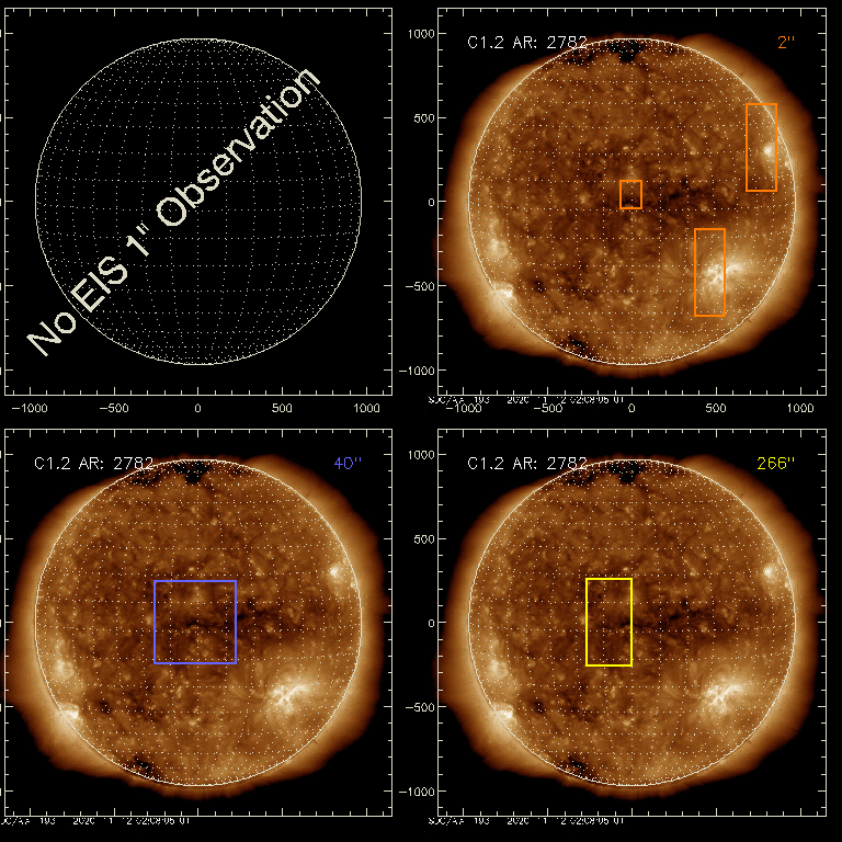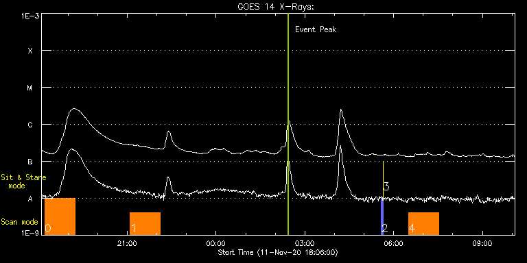 EIS Observation timeline overlay to GOES-Xray curve Code 1" 2" 40" 266" EIS Observations list for this event: STUDY ACRONYM ID DATE OBSERVED DESCRIPTION NOAA# TARGET 0 Atlas_60 | 75042 | 2020/11/11 18:12:40 | HOP407-Solar Orbiter/SPICE STP122 obse | | Quiet Sun TIMELINE ID DATE OBSERVED FITS FILE XCEN (+W/-E) YCEN (+N/-S) DUR ----------------------------------------------------------------------------------------------------------------- 75042 | 2020/11/11 18:12:40.000 | eis_l0_20201111_181240.fits.gz | -3.97 | 37.50 | 1h1m39s 1 HPW021VEL260x512v2 | 75045 | 2020/11/11 21:06:10 | HOP407-Solar Orbiter/SPICE STP122 obse | 2781 | Active Region TIMELINE ID DATE OBSERVED FITS FILE XCEN (+W/-E) YCEN (+N/-S) DUR ----------------------------------------------------------------------------------------------------------------- 75045 | 2020/11/11 21:06:10.000 | eis_l0_20201111_210610.fits.gz | 467.69 | -425.45 | 1h0m44s 2 PRY_slot_contextLITE | 75036 | 2020/11/12 05:35:20 | Pointing Monitoring | | Active Region TIMELINE ID DATE OBSERVED FITS FILE XCEN (+W/-E) YCEN (+N/-S) DUR ----------------------------------------------------------------------------------------------------------------- 75036 | 2020/11/12 05:35:20.000 | eis_l0_20201112_053520.fits.gz | -15.21 | -0.42 | 2m56s 3 XRT_synop_AIA | 75037 | 2020/11/12 05:38:35 | Pointing Monitoring | | Quiet Sun TIMELINE ID DATE OBSERVED FITS FILE XCEN (+W/-E) YCEN (+N/-S) DUR ----------------------------------------------------------------------------------------------------------------- 75037 | 2020/11/12 05:38:35.000 | eis_l0_20201112_053835.fits.gz | -132.49 | -0.50 | 10s 4 HPW021VEL260x512v2 | 75046 | 2020/11/12 06:30:49 | HOP407-Solar Orbiter/SPICE STP122 obse | | Active Region TIMELINE ID DATE OBSERVED FITS FILE XCEN (+W/-E) YCEN (+N/-S) DUR ----------------------------------------------------------------------------------------------------------------- 75046 | 2020/11/12 06:30:49.000 | eis_l0_20201112_063049.fits.gz | 773.49 | 317.91 | 1h0m45s : Check study information : Download file : View thumbnails For this event, also check for: