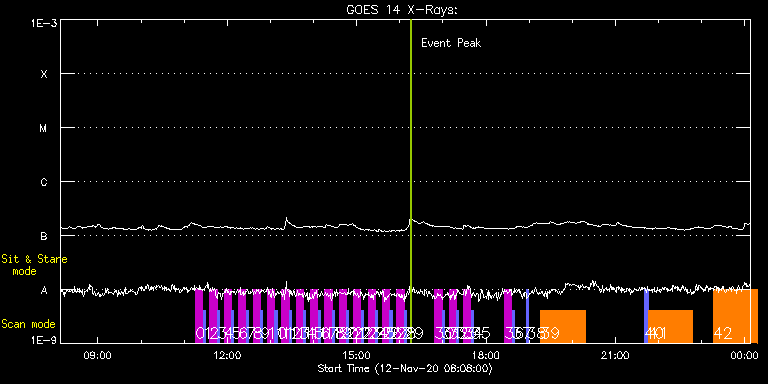 EIS Observation timeline overlay to GOES-Xray curve Code 1" 2" 40" 266" EIS Observations list for this event: STUDY ACRONYM ID DATE OBSERVED DESCRIPTION NOAA# TARGET 0 SK_DEEP_5x512_SLIT1 | 75051 | 2020/11/12 11:15:57 | HOP79 #1/20 | | Quiet Sun TIMELINE ID DATE OBSERVED FITS FILE XCEN (+W/-E) YCEN (+N/-S) DUR ----------------------------------------------------------------------------------------------------------------- 75051 | 2020/11/12 11:15:57.000 | eis_l0_20201112_111557.fits.gz | -9873.96 | -9924.20 | 10m7s 1 PRY_slot_contextLITE | 75052 | 2020/11/12 11:26:30 | HOP79 #1/20 | | Active Region TIMELINE ID DATE OBSERVED FITS FILE XCEN (+W/-E) YCEN (+N/-S) DUR ----------------------------------------------------------------------------------------------------------------- 75052 | 2020/11/12 11:26:30.000 | eis_l0_20201112_112630.fits.gz | -9888.93 | -9924.20 | 2m56s 2 SK_DEEP_5x512_SLIT1 | 75053 | 2020/11/12 11:35:51 | HOP79 #2/20 | | Quiet Sun TIMELINE ID DATE OBSERVED FITS FILE XCEN (+W/-E) YCEN (+N/-S) DUR ----------------------------------------------------------------------------------------------------------------- 75053 | 2020/11/12 11:35:51.000 | eis_l0_20201112_113551.fits.gz | -26.50 | -845.60 | 10m7s 3 PRY_slot_contextLITE | 75054 | 2020/11/12 11:46:24 | HOP79 #2/20 | | Active Region TIMELINE ID DATE OBSERVED FITS FILE XCEN (+W/-E) YCEN (+N/-S) DUR ----------------------------------------------------------------------------------------------------------------- 75054 | 2020/11/12 11:46:24.000 | eis_l0_20201112_114624.fits.gz | -41.64 | -845.60 | 2m56s 4 SK_DEEP_5x512_SLIT1 | 75055 | 2020/11/12 11:55:51 | HOP79 #3/20 | | Quiet Sun TIMELINE ID DATE OBSERVED FITS FILE XCEN (+W/-E) YCEN (+N/-S) DUR ----------------------------------------------------------------------------------------------------------------- 75055 | 2020/11/12 11:55:51.000 | eis_l0_20201112_115551.fits.gz | -26.42 | -745.49 | 10m8s 5 PRY_slot_contextLITE | 75056 | 2020/11/12 12:06:24 | HOP79 #3/20 | | Active Region TIMELINE ID DATE OBSERVED FITS FILE XCEN (+W/-E) YCEN (+N/-S) DUR ----------------------------------------------------------------------------------------------------------------- 75056 | 2020/11/12 12:06:24.000 | eis_l0_20201112_120624.fits.gz | -41.72 | -745.56 | 2m56s 6 SK_DEEP_5x512_SLIT1 | 75057 | 2020/11/12 12:15:51 | HOP79 #4/20 | | Quiet Sun TIMELINE ID DATE OBSERVED FITS FILE XCEN (+W/-E) YCEN (+N/-S) DUR ----------------------------------------------------------------------------------------------------------------- 75057 | 2020/11/12 12:15:51.000 | eis_l0_20201112_121551.fits.gz | -26.50 | -645.37 | 10m7s 7 PRY_slot_contextLITE | 75058 | 2020/11/12 12:26:24 | HOP79 #4/20 | | Active Region TIMELINE ID DATE OBSERVED FITS FILE XCEN (+W/-E) YCEN (+N/-S) DUR ----------------------------------------------------------------------------------------------------------------- 75058 | 2020/11/12 12:26:24.000 | eis_l0_20201112_122624.fits.gz | -41.64 | -645.45 | 2m56s 8 SK_DEEP_5x512_SLIT1 | 75059 | 2020/11/12 12:35:51 | HOP79 #5/20 | | Quiet Sun TIMELINE ID DATE OBSERVED FITS FILE XCEN (+W/-E) YCEN (+N/-S) DUR ----------------------------------------------------------------------------------------------------------------- 75059 | 2020/11/12 12:35:51.000 | eis_l0_20201112_123551.fits.gz | -26.50 | -545.26 | 10m7s 9 PRY_slot_contextLITE | 75060 | 2020/11/12 12:46:24 | HOP79 #5/20 | | Active Region TIMELINE ID DATE OBSERVED FITS FILE XCEN (+W/-E) YCEN (+N/-S) DUR ----------------------------------------------------------------------------------------------------------------- 75060 | 2020/11/12 12:46:24.000 | eis_l0_20201112_124624.fits.gz | -41.64 | -545.34 | 2m57s 10 SK_DEEP_5x512_SLIT1 | 75061 | 2020/11/12 12:55:51 | HOP79 #6/20 | | Quiet Sun TIMELINE ID DATE OBSERVED FITS FILE XCEN (+W/-E) YCEN (+N/-S) DUR ----------------------------------------------------------------------------------------------------------------- 75061 | 2020/11/12 12:55:51.000 | eis_l0_20201112_125551.fits.gz | -26.42 | -445.23 | 10m7s 11 PRY_slot_contextLITE | 75062 | 2020/11/12 13:06:24 | HOP79 #6/20 | | Active Region TIMELINE ID DATE OBSERVED FITS FILE XCEN (+W/-E) YCEN (+N/-S) DUR ----------------------------------------------------------------------------------------------------------------- 75062 | 2020/11/12 13:06:24.000 | eis_l0_20201112_130624.fits.gz | -41.64 | -445.23 | 2m56s 12 SK_DEEP_5x512_SLIT1 | 75063 | 2020/11/12 13:15:51 | HOP79 #7/20 | | Quiet Sun TIMELINE ID DATE OBSERVED FITS FILE XCEN (+W/-E) YCEN (+N/-S) DUR ----------------------------------------------------------------------------------------------------------------- 75063 | 2020/11/12 13:15:51.000 | eis_l0_20201112_131551.fits.gz | -26.50 | -345.50 | 10m7s 13 PRY_slot_contextLITE | 75064 | 2020/11/12 13:26:24 | HOP79 #7/20 | | Active Region TIMELINE ID DATE OBSERVED FITS FILE XCEN (+W/-E) YCEN (+N/-S) DUR ----------------------------------------------------------------------------------------------------------------- 75064 | 2020/11/12 13:26:24.000 | eis_l0_20201112_132624.fits.gz | -41.64 | -345.58 | 2m56s 14 SK_DEEP_5x512_SLIT1 | 75065 | 2020/11/12 13:35:51 | HOP79 #8/20 | | Quiet Sun TIMELINE ID DATE OBSERVED FITS FILE XCEN (+W/-E) YCEN (+N/-S) DUR ----------------------------------------------------------------------------------------------------------------- 75065 | 2020/11/12 13:35:51.000 | eis_l0_20201112_133551.fits.gz | -26.42 | -245.46 | 10m7s 15 PRY_slot_contextLITE | 75066 | 2020/11/12 13:46:24 | HOP79 #8/20 | | Active Region TIMELINE ID DATE OBSERVED FITS FILE XCEN (+W/-E) YCEN (+N/-S) DUR ----------------------------------------------------------------------------------------------------------------- 75066 | 2020/11/12 13:46:24.000 | eis_l0_20201112_134624.fits.gz | -41.64 | -245.54 | 2m56s 16 SK_DEEP_5x512_SLIT1 | 75067 | 2020/11/12 13:55:51 | HOP79 #9/20 | | Quiet Sun TIMELINE ID DATE OBSERVED FITS FILE XCEN (+W/-E) YCEN (+N/-S) DUR ---