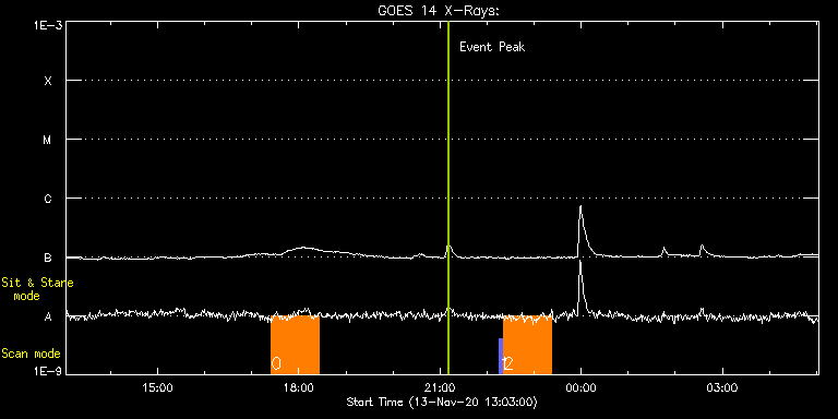 EIS Observation timeline overlay to GOES-Xray curve Code 1" 2" 40" 266" EIS Observations list for this event: STUDY ACRONYM ID DATE OBSERVED DESCRIPTION NOAA# TARGET 0 Atlas_60 | 75096 | 2020/11/13 17:24:42 | HOP407-Solar Orbiter/SPICE STP122 obse | | Quiet Sun TIMELINE ID DATE OBSERVED FITS FILE XCEN (+W/-E) YCEN (+N/-S) DUR ----------------------------------------------------------------------------------------------------------------- 75096 | 2020/11/13 17:24:42.000 | eis_l0_20201113_172442.fits.gz | -3.97 | 37.42 | 1h1m39s 1 PRY_slot_contextLIQS | 75105 | 2020/11/13 22:15:19 | HOP407-Solar Orbiter/SPICE STP122 obse | 2781 | Quiet Sun TIMELINE ID DATE OBSERVED FITS FILE XCEN (+W/-E) YCEN (+N/-S) DUR ----------------------------------------------------------------------------------------------------------------- 75105 | 2020/11/13 22:15:19.000 | eis_l0_20201113_221519.fits.gz | 717.78 | -407.53 | 5m26s 2 HPW021VEL260x512v2 | 75106 | 2020/11/13 22:21:10 | HOP407-Solar Orbiter/SPICE STP122 obse | 2781 | Active Region TIMELINE ID DATE OBSERVED FITS FILE XCEN (+W/-E) YCEN (+N/-S) DUR ----------------------------------------------------------------------------------------------------------------- 75106 | 2020/11/13 22:21:10.000 | eis_l0_20201113_222110.fits.gz | 732.65 | -407.37 | 1h0m45s : Check study information : Download file : View thumbnails For this event, also check for: