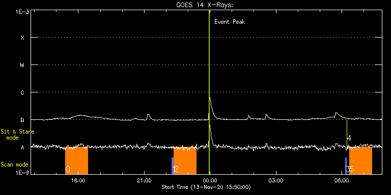 EIS Observation timeline overlay to GOES-Xray curve Code 1" 2" 40" 266" EIS Observations list for this event: STUDY ACRONYM ID DATE OBSERVED DESCRIPTION NOAA# TARGET 0 Atlas_60 | 75096 | 2020/11/13 17:24:42 | HOP407-Solar Orbiter/SPICE STP122 obse | | Quiet Sun TIMELINE ID DATE OBSERVED FITS FILE XCEN (+W/-E) YCEN (+N/-S) DUR ----------------------------------------------------------------------------------------------------------------- 75096 | 2020/11/13 17:24:42.000 | eis_l0_20201113_172442.fits.gz | -3.97 | 37.42 | 1h1m39s 1 PRY_slot_contextLIQS | 75105 | 2020/11/13 22:15:19 | HOP407-Solar Orbiter/SPICE STP122 obse | 2781 | Quiet Sun TIMELINE ID DATE OBSERVED FITS FILE XCEN (+W/-E) YCEN (+N/-S) DUR ----------------------------------------------------------------------------------------------------------------- 75105 | 2020/11/13 22:15:19.000 | eis_l0_20201113_221519.fits.gz | 717.78 | -407.53 | 5m26s 2 HPW021VEL260x512v2 | 75106 | 2020/11/13 22:21:10 | HOP407-Solar Orbiter/SPICE STP122 obse | 2781 | Active Region TIMELINE ID DATE OBSERVED FITS FILE XCEN (+W/-E) YCEN (+N/-S) DUR ----------------------------------------------------------------------------------------------------------------- 75106 | 2020/11/13 22:21:10.000 | eis_l0_20201113_222110.fits.gz | 732.65 | -407.37 | 1h0m45s 3 PRY_slot_contextLITE | 75093 | 2020/11/14 06:10:19 | Pointing Monitoring | | Active Region TIMELINE ID DATE OBSERVED FITS FILE XCEN (+W/-E) YCEN (+N/-S) DUR ----------------------------------------------------------------------------------------------------------------- 75093 | 2020/11/14 06:10:19.000 | eis_l0_20201114_061019.fits.gz | -15.29 | -0.35 | 2m56s 4 XRT_synop_AIA | 75094 | 2020/11/14 06:13:34 | Pointing Monitoring | | Quiet Sun TIMELINE ID DATE OBSERVED FITS FILE XCEN (+W/-E) YCEN (+N/-S) DUR ----------------------------------------------------------------------------------------------------------------- 75094 | 2020/11/14 06:13:34.000 | eis_l0_20201114_061334.fits.gz | -132.49 | -0.42 | 10s 5 Large_CH_Map | 75107 | 2020/11/14 06:20:20 | HOP393 | | Quiet Sun TIMELINE ID DATE OBSERVED FITS FILE XCEN (+W/-E) YCEN (+N/-S) DUR ----------------------------------------------------------------------------------------------------------------- 75107 | 2020/11/14 06:20:20.000 | eis_l0_20201114_062020.fits.gz | -41.56 | -52.57 | 1h1m53s : Check study information : Download file : View thumbnails For this event, also check for:
