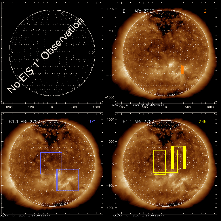 EIS Observation timeline overlay to GOES-Xray curve Code 1" 2" 40" 266" EIS Observations list for this event: STUDY ACRONYM ID DATE OBSERVED DESCRIPTION NOAA# TARGET 0 Alignment_266_01 | 75456 | 2020/12/19 22:03:13 | Joint IRIS-Hinode Observations of On-d | | Quiet Sun TIMELINE ID DATE OBSERVED FITS FILE XCEN (+W/-E) YCEN (+N/-S) DUR ----------------------------------------------------------------------------------------------------------------- 75456 | 2020/12/19 22:03:13.000 | eis_l0_20201219_220313.fits.gz | 264.95 | 129.79 | 20s 75456 | 2020/12/19 22:03:45.000 | eis_l0_20201219_220345.fits.gz | 265.10 | 129.79 | 20s 75456 | 2020/12/19 22:04:16.000 | eis_l0_20201219_220416.fits.gz | 265.18 | 129.72 | 21s 75456 | 2020/12/19 22:04:48.000 | eis_l0_20201219_220448.fits.gz | 265.18 | 129.79 | 20s 75456 | 2020/12/19 22:05:20.000 | eis_l0_20201219_220520.fits.gz | 265.26 | 129.72 | 20s 75456 | 2020/12/19 22:05:51.000 | eis_l0_20201219_220551.fits.gz | 265.34 | 129.64 | 20s 75456 | 2020/12/19 22:06:23.000 | eis_l0_20201219_220623.fits.gz | 265.41 | 129.64 | 20s 75456 | 2020/12/19 22:06:54.000 | eis_l0_20201219_220654.fits.gz | 265.49 | 129.64 | 20s 75456 | 2020/12/19 22:07:26.000 | eis_l0_20201219_220726.fits.gz | 265.57 | 129.56 | 20s 75456 | 2020/12/19 22:07:57.000 | eis_l0_20201219_220757.fits.gz | 265.64 | 129.64 | 20s 75456 | 2020/12/19 22:08:29.000 | eis_l0_20201219_220829.fits.gz | 265.72 | 129.72 | 20s 75456 | 2020/12/19 22:09:00.000 | eis_l0_20201219_220900.fits.gz | 265.80 | 129.64 | 21s 75456 | 2020/12/19 22:09:32.000 | eis_l0_20201219_220932.fits.gz | 265.88 | 129.72 | 20s 75456 | 2020/12/19 22:10:04.000 | eis_l0_20201219_221004.fits.gz | 265.88 | 129.72 | 20s 75456 | 2020/12/19 22:10:35.000 | eis_l0_20201219_221035.fits.gz | 266.11 | 129.56 | 20s 75456 | 2020/12/19 22:11:07.000 | eis_l0_20201219_221107.fits.gz | 266.11 | 129.64 | 20s 75456 | 2020/12/19 22:11:38.000 | eis_l0_20201219_221138.fits.gz | 266.11 | 129.72 | 20s 75456 | 2020/12/19 22:12:10.000 | eis_l0_20201219_221210.fits.gz | 266.26 | 129.72 | 20s 75456 | 2020/12/19 22:12:41.000 | eis_l0_20201219_221241.fits.gz | 266.34 | 129.64 | 20s 75456 | 2020/12/19 22:13:13.000 | eis_l0_20201219_221313.fits.gz | 266.34 | 129.56 | 20s 75456 | 2020/12/19 22:13:44.000 | eis_l0_20201219_221344.fits.gz | 266.49 | 129.64 | 20s 75456 | 2020/12/19 22:14:16.000 | eis_l0_20201219_221416.fits.gz | 266.49 | 129.64 | 20s 75456 | 2020/12/19 22:14:47.000 | eis_l0_20201219_221447.fits.gz | 266.57 | 129.64 | 20s 75456 | 2020/12/19 22:15:19.000 | eis_l0_20201219_221519.fits.gz | 266.73 | 129.64 | 20s 75456 | 2020/12/19 22:15:50.000 | eis_l0_20201219_221550.fits.gz | 266.73 | 129.72 | 20s 75456 | 2020/12/19 22:16:22.000 | eis_l0_20201219_221622.fits.gz | 266.80 | 129.72 | 20s 75456 | 2020/12/19 22:16:53.000 | eis_l0_20201219_221653.fits.gz | 266.88 | 129.72 | 20s 75456 | 2020/12/19 22:17:25.000 | eis_l0_20201219_221725.fits.gz | 267.04 | 129.64 | 20s 75456 | 2020/12/19 22:17:56.000 | eis_l0_20201219_221756.fits.gz | 267.04 | 129.64 | 21s 75456 | 2020/12/19 22:18:28.000 | eis_l0_20201219_221828.fits.gz | 267.04 | 129.64 | 20s 75456 | 2020/12/19 22:19:00.000 | eis_l0_20201219_221900.fits.gz | 267.27 | 129.64 | 20s 75456 | 2020/12/19 22:19:31.000 | eis_l0_20201219_221931.fits.gz | 267.27 | 129.64 | 20s 75456 | 2020/12/19 22:20:03.000 | eis_l0_20201219_222003.fits.gz | 267.35 | 129.72 | 20s 75456 | 2020/12/19 22:20:34.000 | eis_l0_20201219_222034.fits.gz | 267.50 | 129.64 | 20s 75456 | 2020/12/19 22:21:06.000 | eis_l0_20201219_222106.fits.gz | 267.58 | 129.64 | 20s 75456 | 2020/12/19 22:21:37.000 | eis_l0_20201219_222137.fits.gz | 267.58 | 129.56 | 20s 75456 | 2020/12/19 22:22:09.000 | eis_l0_20201219_222209.fits.gz | 267.81 | 129.64 | 20s 75456 | 2020/12/19 22:22:40.000 | eis_l0_20201219_222240.fits.gz | 267.73 | 129.49 | 20s 75456 | 2020/12/19 22:23:12.000 | eis_l0_20201219_222312.fits.gz | 267.81 | 129.72 | 20s 75456 | 2020/12/19 22:23:43.000 | eis_l0_20201219_222343.fits.gz | 267.96 | 129.64 | 20s 75456 | 2020/12/19 22:24:15.000 | eis_l0_20201219_222415.fits.gz | 268.04 | 129.72 | 20s 75456 | 2020/12/19 22:24:47.000 | eis_l0_20201219_222447.fits.gz | 268.04 | 129.64 | 20s 75456 | 2020/12/19 22:25:18.000 | eis_l0_20201219_222518.fits.gz | 268.12 | 129.72 | 20s 75456 | 2020/12/19 22:25:50.000 | eis_l0_20201219_222550.fits.gz | 268.12 | 129.64 | 20s 75456 | 2020/12/19 22:26:21.000 | eis_l0_20201219_222621.fits.gz | 268.27 | 129.72 | 20s 75456 | 2020/12/19 22:26:53.000 | eis_l0_20201219_222653.fits.gz | 268.27 | 129.64 | 20s 75456 | 2020/12/19 22:27:24.000 | eis_l0_20201219_222724.fits.gz | 268.43 | 129.56 | 20s 75456 | 2020/12/19 22:27:56.000 | eis_l0_20201219_222756.fits.gz | 268.58 | 129.64 | 20s 75456 | 2020/12/19 22:28:27.000 | eis_l0_20201219_222827.fits.gz | 268.58 | 129.64 | 21s 75456 | 2020/12/19 22:28:59.000 | eis_l0_20201219_222859.fits.gz | 268.66 | 129.56 | 20s 75456 | 2020/12/19 22:29:31.000 | eis_l0_20201219_222931.fits.gz | 268.73 | 129.64 | 20s 75456 | 2020/12/19 22:30:02.000 | eis_l0_20201219_223002.fits.gz | 268.81 | 129.64 | 20s 75456 | 2020/12/19 22:30:34.000 | eis_l0_20201219_223034.fits.gz | 268.97 | 129.72 | 20s 75456 | 2020/12/19 22:31:05.000 | eis_l0_20201219_223105.fits.gz | 269.04 | 129.64 | 20s 75456 | 2020/12/19 22:31:37.000 | eis_l0_20201219_223137.fits.gz | 269.04 | 129.72 | 20s 75456 | 2020/12/19 22:32:08.000 | eis_l0_20201219_223208.fits.gz | 269.12 | 129.64 | 20s 75456 | 2020/12/19 22:32:40.000 | eis_l0_20201219_223240.fits.gz | 269.20 | 129.56 | 20s 75456 | 2020/12/19 22:33:11.000 | eis_l0_20201219_223311.fits.gz | 269.28 | 129.56 | 20s 75456 | 2020/12/19 22:33:43.000 | eis_l0_20201219_223343.fits.gz | 269.35 | 129.64 | 20s 75456 | 2020/12/19 22:34:14.000 | eis_l0_20201219_223414.fits.gz | 269.43 | 129.64 | 20s 75456 | 2020/12/19 22:34:46.000 | eis_l0_20201219_223446.fits.gz | 269.43 | 129.56 | 20s 75456 | 2020/12/19 22:35:17.000 | eis_l0_20201219_223517.fits.gz | 269.58 | 129.64 | 20s 75456 | 2020/12/19 22:35:49.000 