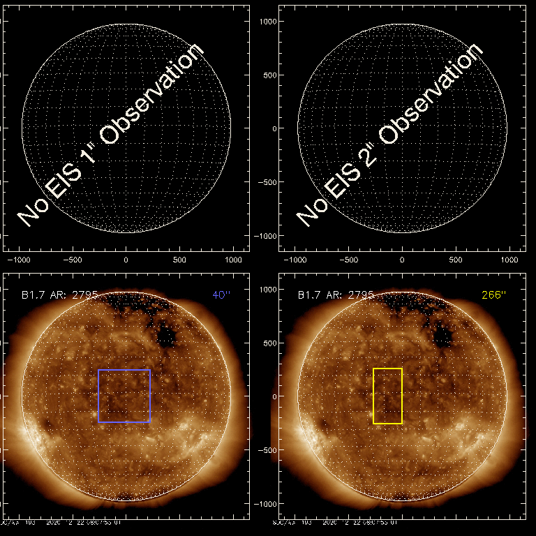 EIS Observation timeline overlay to GOES-Xray curve Code 1" 2" 40" 266" EIS Observations list for this event: STUDY ACRONYM ID DATE OBSERVED DESCRIPTION NOAA# TARGET 0 PRY_slot_contextLITE | 75444 | 2020/12/22 06:00:18 | Pointing Monitoring | | Active Region TIMELINE ID DATE OBSERVED FITS FILE XCEN (+W/-E) YCEN (+N/-S) DUR ----------------------------------------------------------------------------------------------------------------- 75444 | 2020/12/22 06:00:18.000 | eis_l0_20201222_060018.fits.gz | -15.29 | -0.58 | 2m57s 1 XRT_synop_AIA | 75469 | 2020/12/22 06:03:33 | Pointing Monitoring | | Quiet Sun TIMELINE ID DATE OBSERVED FITS FILE XCEN (+W/-E) YCEN (+N/-S) DUR ----------------------------------------------------------------------------------------------------------------- 75469 | 2020/12/22 06:03:33.000 | eis_l0_20201222_060333.fits.gz | -132.49 | -0.50 | 11s : Check study information : Download file : View thumbnails For this event, also check for: