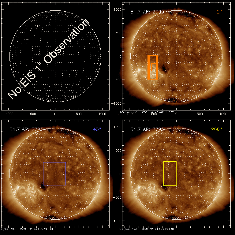 EIS Observation timeline overlay to GOES-Xray curve Code 1" 2" 40" 266" EIS Observations list for this event: STUDY ACRONYM ID DATE OBSERVED DESCRIPTION NOAA# TARGET 0 HPW021VEL260x512v2 | 75525 | 2020/12/24 18:36:50 | Active Region Studies | | Active Region TIMELINE ID DATE OBSERVED FITS FILE XCEN (+W/-E) YCEN (+N/-S) DUR ----------------------------------------------------------------------------------------------------------------- 75525 | 2020/12/24 18:36:50.000 | eis_l0_20201224_183650.fits.gz | -515.48 | -238.76 | 1h0m44s 1 HPW021VEL260x512v2 | 75514 | 2020/12/24 20:06:09 | Active Region Studies | | Active Region TIMELINE ID DATE OBSERVED FITS FILE XCEN (+W/-E) YCEN (+N/-S) DUR ----------------------------------------------------------------------------------------------------------------- 75514 | 2020/12/24 20:06:09.000 | eis_l0_20201224_200609.fits.gz | -503.90 | -238.37 | 1h0m45s 2 HPW021VEL260x512v2 | 75515 | 2020/12/24 21:43:09 | Active Region Studies | | Active Region TIMELINE ID DATE OBSERVED FITS FILE XCEN (+W/-E) YCEN (+N/-S) DUR ----------------------------------------------------------------------------------------------------------------- 75515 | 2020/12/24 21:43:09.000 | eis_l0_20201224_214309.fits.gz | -491.23 | -237.99 | 1h0m45s 3 HPW021VEL260x512v2 | 75516 | 2020/12/24 23:19:09 | Active Region Studies | 2793 | Active Region TIMELINE ID DATE OBSERVED FITS FILE XCEN (+W/-E) YCEN (+N/-S) DUR ----------------------------------------------------------------------------------------------------------------- 75516 | 2020/12/24 23:19:09.000 | eis_l0_20201224_231909.fits.gz | -478.71 | -237.37 | 1h0m45s 4 Atlas_60 | 75526 | 2020/12/25 00:45:39 | Active Region Studies | | Quiet Sun TIMELINE ID DATE OBSERVED FITS FILE XCEN (+W/-E) YCEN (+N/-S) DUR ----------------------------------------------------------------------------------------------------------------- 75526 | 2020/12/25 00:45:39.000 | eis_l0_20201225_004539.fits.gz | -466.88 | -237.06 | 1h1m39s 5 PRY_slot_contextLITE | 75477 | 2020/12/25 05:40:18 | Pointing Monitoring | | Active Region TIMELINE ID DATE OBSERVED FITS FILE XCEN (+W/-E) YCEN (+N/-S) DUR ----------------------------------------------------------------------------------------------------------------- 75477 | 2020/12/25 05:40:18.000 | eis_l0_20201225_054018.fits.gz | -15.21 | -0.50 | 2m56s 6 XRT_synop_AIA | 75478 | 2020/12/25 05:43:33 | Pointing Monitoring | | Quiet Sun TIMELINE ID DATE OBSERVED FITS FILE XCEN (+W/-E) YCEN (+N/-S) DUR ----------------------------------------------------------------------------------------------------------------- 75478 | 2020/12/25 05:43:33.000 | eis_l0_20201225_054333.fits.gz | -132.57 | -0.42 | 10s : Check study information : Download file : View thumbnails For this event, also check for: