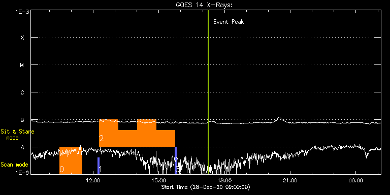 EIS Observation timeline overlay to GOES-Xray curve Code 1" 2" 40" 266" EIS Observations list for this event: STUDY ACRONYM ID DATE OBSERVED DESCRIPTION NOAA# TARGET 0 Large_CH_Map | 75472 | 2020/12/28 10:27:40 | HOP 336 (Cycle 25 bright points) South | | Quiet Sun TIMELINE ID DATE OBSERVED FITS FILE XCEN (+W/-E) YCEN (+N/-S) DUR ----------------------------------------------------------------------------------------------------------------- 75472 | 2020/12/28 10:27:40.000 | eis_l0_20201228_102740.fits.gz | -24.79 | -591.86 | 1h1m53s 1 PRY_slot_context_v3 | 75537 | 2020/12/28 12:13:17 | Test of Recent EIS Active Region Study | | Active Region TIMELINE ID DATE OBSERVED FITS FILE XCEN (+W/-E) YCEN (+N/-S) DUR ----------------------------------------------------------------------------------------------------------------- 75537 | 2020/12/28 12:13:17.000 | eis_l0_20201228_121317.fits.gz | 248.79 | -228.18 | 2m57s 2 TimeLag_quietAR_QS | 75538 | 2020/12/28 12:16:40 | Test of Recent EIS Active Region Study | | Active Region TIMELINE ID DATE OBSERVED FITS FILE XCEN (+W/-E) YCEN (+N/-S) DUR ----------------------------------------------------------------------------------------------------------------- 75538 | 2020/12/28 12:16:40.000 | eis_l0_20201228_121640.fits.gz | 263.67 | -228.10 | 51m55s 75538 | 2020/12/28 13:08:38.000 | eis_l0_20201228_130838.fits.gz | 271.08 | -228.41 | 51m58s 75538 | 2020/12/28 14:00:39.000 | eis_l0_20201228_140039.fits.gz | 278.42 | -228.49 | 51m57s 75538 | 2020/12/28 14:52:38.000 | eis_l0_20201228_145238.fits.gz | 285.84 | -228.49 | 51m57s 3 PRY_slot_context_v3 | 75539 | 2020/12/28 15:44:46 | Test of Recent EIS Active Region Study | | Active Region TIMELINE ID DATE OBSERVED FITS FILE XCEN (+W/-E) YCEN (+N/-S) DUR ----------------------------------------------------------------------------------------------------------------- 75539 | 2020/12/28 15:44:46.000 | eis_l0_20201228_154446.fits.gz | 278.69 | -228.41 | 2m56s : Check study information : Download file : View thumbnails For this event, also check for: