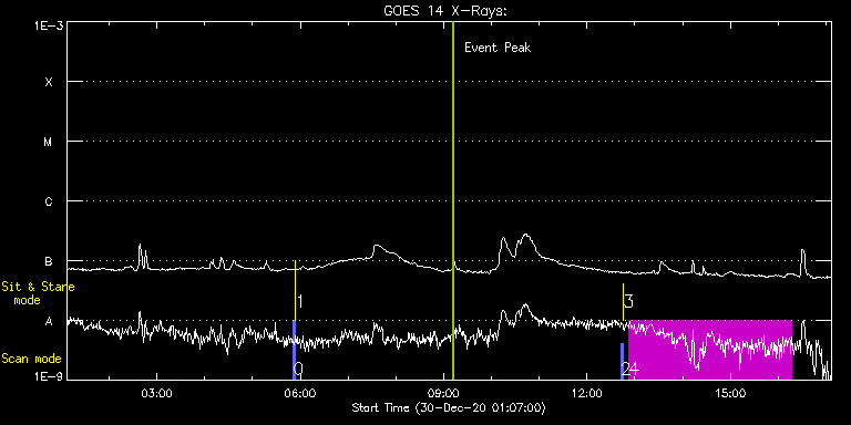EIS Observation timeline overlay to GOES-Xray curve Code 1" 2" 40" 266" EIS Observations list for this event: STUDY ACRONYM ID DATE OBSERVED DESCRIPTION NOAA# TARGET 0 PRY_slot_contextLITE | 75546 | 2020/12/30 05:50:50 | Change of EIS pointing and alignment w | | Active Region TIMELINE ID DATE OBSERVED FITS FILE XCEN (+W/-E) YCEN (+N/-S) DUR ----------------------------------------------------------------------------------------------------------------- 75546 | 2020/12/30 05:50:50.000 | eis_l0_20201230_055050.fits.gz | -15.37 | -0.27 | 2m57s 1 XRT_synop_AIA | 75547 | 2020/12/30 05:54:05 | Change of EIS pointing and alignment w | | Quiet Sun TIMELINE ID DATE OBSERVED FITS FILE XCEN (+W/-E) YCEN (+N/-S) DUR ----------------------------------------------------------------------------------------------------------------- 75547 | 2020/12/30 05:54:05.000 | eis_l0_20201230_055405.fits.gz | -132.57 | -0.35 | 10s 2 PRY_slot_contextLITE | 75548 | 2020/12/30 12:42:27 | Change of EIS pointing and alignment w | | Active Region TIMELINE ID DATE OBSERVED FITS FILE XCEN (+W/-E) YCEN (+N/-S) DUR ----------------------------------------------------------------------------------------------------------------- 75548 | 2020/12/30 12:42:27.000 | eis_l0_20201230_124227.fits.gz | -15.29 | -0.35 | 2m56s 3 XRT_synop_AIA | 75549 | 2020/12/30 12:45:41 | Change of EIS pointing and alignment w | | Quiet Sun TIMELINE ID DATE OBSERVED FITS FILE XCEN (+W/-E) YCEN (+N/-S) DUR ----------------------------------------------------------------------------------------------------------------- 75549 | 2020/12/30 12:45:41.000 | eis_l0_20201230_124541.fits.gz | -132.49 | -0.35 | 11s 4 HPW021_VEL_240x512v2 | 75585 | 2020/12/30 12:52:33 | AR velocity study | | Quiet Sun TIMELINE ID DATE OBSERVED FITS FILE XCEN (+W/-E) YCEN (+N/-S) DUR ----------------------------------------------------------------------------------------------------------------- 75585 | 2020/12/30 12:52:33.000 | eis_l0_20201230_125233.fits.gz | 220.75 | -297.61 | 3h23m47s : Check study information : Download file : View thumbnails For this event, also check for: