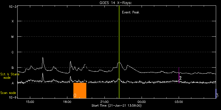 EIS Observation timeline overlay to GOES-Xray curve Code 1" 2" 40" 266" EIS Observations list for this event: STUDY ACRONYM ID DATE OBSERVED DESCRIPTION NOAA# TARGET 0 HPW021VEL260x512v2 | 75761 | 2021/01/21 18:30:39 | AR 12797 obs | | Active Region TIMELINE ID DATE OBSERVED FITS FILE XCEN (+W/-E) YCEN (+N/-S) DUR ----------------------------------------------------------------------------------------------------------------- 75761 | 2021/01/21 18:30:39.000 | eis_l0_20210121_183039.fits.gz | -444.42 | -216.12 | 1h0m44s 1 regcal078 | 75783 | 2021/01/22 03:00:10 | Dark exposures, 0s, 2 exposures, botto | | Engineering TIMELINE ID DATE OBSERVED FITS FILE XCEN (+W/-E) YCEN (+N/-S) DUR ----------------------------------------------------------------------------------------------------------------- 75783 | 2021/01/22 03:00:10.000 | eis_l0_20210122_030010.fits.gz | 14.51 | -305.58 | 2s 2 regcal079 | 75784 | 2021/01/22 03:01:02 | Dark exposures, 0s, 2 exposures, top c | | Engineering TIMELINE ID DATE OBSERVED FITS FILE XCEN (+W/-E) YCEN (+N/-S) DUR ----------------------------------------------------------------------------------------------------------------- 75784 | 2021/01/22 03:01:02.000 | eis_l0_20210122_030102.fits.gz | 14.51 | 205.58 | 2s 3 PRY_slot_contextLITE | 75739 | 2021/01/22 05:57:48 | Pointing Monitoring | | Active Region TIMELINE ID DATE OBSERVED FITS FILE XCEN (+W/-E) YCEN (+N/-S) DUR ----------------------------------------------------------------------------------------------------------------- 75739 | 2021/01/22 05:57:48.000 | eis_l0_20210122_055748.fits.gz | -15.29 | -0.50 | 2m57s : Check study information : Download file : View thumbnails For this event, also check for: