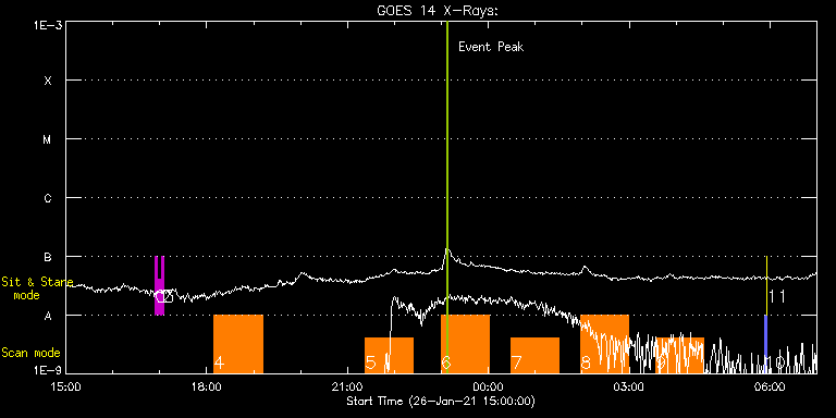 EIS Observation timeline overlay to GOES-Xray curve Code 1" 2" 40" 266" EIS Observations list for this event: STUDY ACRONYM ID DATE OBSERVED DESCRIPTION NOAA# TARGET 0 regcal071 | 75829 | 2021/01/26 16:54:12 | Dark exposures, CCD bottom rows (100s | | Engineering TIMELINE ID DATE OBSERVED FITS FILE XCEN (+W/-E) YCEN (+N/-S) DUR ----------------------------------------------------------------------------------------------------------------- 75829 | 2021/01/26 16:54:12.000 | eis_l0_20210126_165412.fits.gz | 571.85 | -565.59 | 3m21s 1 regcal072 | 75830 | 2021/01/26 16:58:00 | Dark exposures, top CCD rows (100s exp | | Engineering TIMELINE ID DATE OBSERVED FITS FILE XCEN (+W/-E) YCEN (+N/-S) DUR ----------------------------------------------------------------------------------------------------------------- 75830 | 2021/01/26 16:58:00.000 | eis_l0_20210126_165800.fits.gz | 572.24 | -54.59 | 3m22s 2 regcal074 | 75831 | 2021/01/26 17:01:49 | Dark exposures including overscan pixe | | Engineering TIMELINE ID DATE OBSERVED FITS FILE XCEN (+W/-E) YCEN (+N/-S) DUR ----------------------------------------------------------------------------------------------------------------- 75831 | 2021/01/26 17:01:49.000 | eis_l0_20210126_170149.fits.gz | 572.62 | -54.52 | 3m22s 3 regcal076 | 75832 | 2021/01/26 17:05:38 | Flatfield, 1 exposure, led 100ms, ccd | | Engineering TIMELINE ID DATE OBSERVED FITS FILE XCEN (+W/-E) YCEN (+N/-S) DUR ----------------------------------------------------------------------------------------------------------------- 75832 | 2021/01/26 17:05:38.000 | eis_l0_20210126_170538.fits.gz | 573.09 | -310.59 | 2s 4 Atlas_60 | 75804 | 2021/01/26 18:09:43 | Active Region Studies (AR12797&AR12798 | | Quiet Sun TIMELINE ID DATE OBSERVED FITS FILE XCEN (+W/-E) YCEN (+N/-S) DUR ----------------------------------------------------------------------------------------------------------------- 75804 | 2021/01/26 18:09:43.000 | eis_l0_20210126_180943.fits.gz | 557.38 | -219.21 | 1h1m40s 5 dhb_atlas_120m_30" | 75789 | 2021/01/26 21:23:13 | QS Network and Coronal BP | | Quiet Sun TIMELINE ID DATE OBSERVED FITS FILE XCEN (+W/-E) YCEN (+N/-S) DUR ----------------------------------------------------------------------------------------------------------------- 75789 | 2021/01/26 21:23:13.000 | eis_l0_20210126_212313.fits.gz | -459.53 | 411.36 | 1h0m49s 6 dhb_atlas_120m_30" | 75790 | 2021/01/26 22:59:43 | QS Network and Coronal BP | | Quiet Sun TIMELINE ID DATE OBSERVED FITS FILE XCEN (+W/-E) YCEN (+N/-S) DUR ----------------------------------------------------------------------------------------------------------------- 75790 | 2021/01/26 22:59:43.000 | eis_l0_20210126_225943.fits.gz | -446.94 | 412.13 | 1h0m49s 7 dhb_atlas_120m_30" | 75791 | 2021/01/27 00:29:43 | QS Network and Coronal BP | | Quiet Sun TIMELINE ID DATE OBSERVED FITS FILE XCEN (+W/-E) YCEN (+N/-S) DUR ----------------------------------------------------------------------------------------------------------------- 75791 | 2021/01/27 00:29:43.000 | eis_l0_20210127_002943.fits.gz | -434.79 | 412.75 | 1h0m49s 8 dhb_atlas_120m_30" | 75792 | 2021/01/27 01:58:13 | QS Network and Coronal BP | | Quiet Sun TIMELINE ID DATE OBSERVED FITS FILE XCEN (+W/-E) YCEN (+N/-S) DUR ----------------------------------------------------------------------------------------------------------------- 75792 | 2021/01/27 01:58:13.000 | eis_l0_20210127_015813.fits.gz | -423.05 | 413.52 | 1h0m49s 9 dhb_atlas_120m_30" | 75805 | 2021/01/27 03:34:13 | QS Network and Coronal BP | | Quiet Sun TIMELINE ID DATE OBSERVED FITS FILE XCEN (+W/-E) YCEN (+N/-S) DUR ----------------------------------------------------------------------------------------------------------------- 75805 | 2021/01/27 03:34:13.000 | eis_l0_20210127_033413.fits.gz | -410.23 | 414.07 | 1h0m49s 10 PRY_slot_contextLITE | 75814 | 2021/01/27 05:52:50 | Pointing Monitoring | | Active Region TIMELINE ID DATE OBSERVED FITS FILE XCEN (+W/-E) YCEN (+N/-S) DUR ----------------------------------------------------------------------------------------------------------------- 75814 | 2021/01/27 05:52:50.000 | eis_l0_20210127_055250.fits.gz | -15.21 | -0.35 | 2m57s 11 XRT_synop_AIA | 75815 | 2021/01/27 05:56:05 | Pointing Monitoring | | Quiet Sun TIMELINE ID DATE OBSERVED FITS FILE XCEN (+W/-E) YCEN (+N/-S) DUR ----------------------------------------------------------------------------------------------------------------- 75815 | 2021/01/27 05:56:05.000 | eis_l0_20210127_055605.fits.gz | -132.49 | -0.42 | 10s : Check study information : Download file : View thumbnails For this event, also check for: