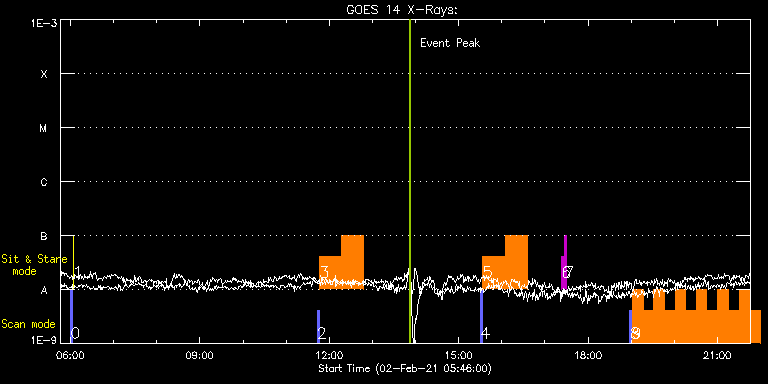 EIS Observation timeline overlay to GOES-Xray curve Code 1" 2" 40" 266" EIS Observations list for this event: STUDY ACRONYM ID DATE OBSERVED DESCRIPTION NOAA# TARGET 0 PRY_slot_contextLITE | 75826 | 2021/02/02 06:00:18 | Pointing Monitoring | | Active Region TIMELINE ID DATE OBSERVED FITS FILE XCEN (+W/-E) YCEN (+N/-S) DUR ----------------------------------------------------------------------------------------------------------------- 75826 | 2021/02/02 06:00:18.000 | eis_l0_20210202_060018.fits.gz | -15.29 | -0.42 | 2m56s 1 XRT_synop_AIA | 75827 | 2021/02/02 06:03:32 | Pointing Monitoring | | Quiet Sun TIMELINE ID DATE OBSERVED FITS FILE XCEN (+W/-E) YCEN (+N/-S) DUR ----------------------------------------------------------------------------------------------------------------- 75827 | 2021/02/02 06:03:32.000 | eis_l0_20210202_060332.fits.gz | -132.57 | -0.42 | 10s 2 PRY_slot_contextLITE | 75866 | 2021/02/02 11:42:57 | Light Bridges in sunspot | | Active Region TIMELINE ID DATE OBSERVED FITS FILE XCEN (+W/-E) YCEN (+N/-S) DUR ----------------------------------------------------------------------------------------------------------------- 75866 | 2021/02/02 11:42:57.000 | eis_l0_20210202_114257.fits.gz | 447.88 | 585.17 | 2m57s 3 fullccd_sns30 | 75872 | 2021/02/02 11:46:19 | Light bridges in sunspot | | Active Region TIMELINE ID DATE OBSERVED FITS FILE XCEN (+W/-E) YCEN (+N/-S) DUR ----------------------------------------------------------------------------------------------------------------- 75872 | 2021/02/02 11:46:19.000 | eis_l0_20210202_114619.fits.gz | 463.00 | 585.02 | 30m36s 75872 | 2021/02/02 12:17:04.000 | eis_l0_20210202_121704.fits.gz | 466.33 | 584.79 | 30m35s 4 PRY_slot_contextLITE | 75873 | 2021/02/02 15:30:21 | Light Bridges in sunspot | | Active Region TIMELINE ID DATE OBSERVED FITS FILE XCEN (+W/-E) YCEN (+N/-S) DUR ----------------------------------------------------------------------------------------------------------------- 75873 | 2021/02/02 15:30:21.000 | eis_l0_20210202_153021.fits.gz | 472.68 | 583.40 | 2m57s 5 fullccd_sns30 | 75874 | 2021/02/02 15:33:43 | Light bridges in sunspot | | Active Region TIMELINE ID DATE OBSERVED FITS FILE XCEN (+W/-E) YCEN (+N/-S) DUR ----------------------------------------------------------------------------------------------------------------- 75874 | 2021/02/02 15:33:43.000 | eis_l0_20210202_153343.fits.gz | 487.65 | 583.32 | 30m36s 75874 | 2021/02/02 16:04:28.000 | eis_l0_20210202_160428.fits.gz | 491.05 | 583.01 | 30m35s 6 regcal071 | 75862 | 2021/02/02 17:23:12 | Dark exposures, CCD bottom rows (100s | | Engineering TIMELINE ID DATE OBSERVED FITS FILE XCEN (+W/-E) YCEN (+N/-S) DUR ----------------------------------------------------------------------------------------------------------------- 75862 | 2021/02/02 17:23:12.000 | eis_l0_20210202_172312.fits.gz | 523.19 | 236.32 | 3m22s 7 regcal072 | 75863 | 2021/02/02 17:27:01 | Dark exposures, top CCD rows (100s exp | | Engineering TIMELINE ID DATE OBSERVED FITS FILE XCEN (+W/-E) YCEN (+N/-S) DUR ----------------------------------------------------------------------------------------------------------------- 75863 | 2021/02/02 17:27:01.000 | eis_l0_20210202_172701.fits.gz | 523.57 | 747.39 | 3m22s 8 PRY_slot_contextLITE | 75875 | 2021/02/02 18:58:20 | AR evolution | | Active Region TIMELINE ID DATE OBSERVED FITS FILE XCEN (+W/-E) YCEN (+N/-S) DUR ----------------------------------------------------------------------------------------------------------------- 75875 | 2021/02/02 18:58:20.000 | eis_l0_20210202_185820.fits.gz | 494.69 | 581.54 | 2m57s 9 ar_evolution | 75876 | 2021/02/02 19:01:42 | AR evolution | | Active Region TIMELINE ID DATE OBSERVED FITS FILE XCEN (+W/-E) YCEN (+N/-S) DUR ----------------------------------------------------------------------------------------------------------------- 75876 | 2021/02/02 19:01:42.000 | eis_l0_20210202_190142.fits.gz | 509.32 | 581.62 | 14m47s 75876 | 2021/02/02 19:16:32.000 | eis_l0_20210202_191632.fits.gz | 510.86 | 581.47 | 14m47s 75876 | 2021/02/02 19:31:22.000 | eis_l0_20210202_193122.fits.gz | 512.33 | 581.39 | 14m47s 75876 | 2021/02/02 19:46:12.000 | eis_l0_20210202_194612.fits.gz | 513.88 | 581.23 | 14m48s 75876 | 2021/02/02 20:01:03.000 | eis_l0_20210202_200103.fits.gz | 515.42 | 581.08 | 14m46s 75876 | 2021/02/02 20:15:52.000 | eis_l0_20210202_201552.fits.gz | 516.97 | 581.16 | 14m47s 75876 | 2021/02/02 20:30:41.000 | eis_l0_20210202_203041.fits.gz | 518.51 | 581.00 | 14m47s 75876 | 2021/02/02 20:45:31.000 | eis_l0_20210202_204531.fits.gz | 520.06 | 580.77 | 14m47s 75876 | 2021/02/02 21:00:20.000 | eis_l0_20210202_210020.fits.gz | 521.60 | 580.54 | 14m47s 75876 | 2021/02/02 21:15:10.000 | eis_l0_20210202_211510.fits.gz | 523.15 | 580.61 | 14m47s 75876 | 2021/02/02 21:30:00.000 | eis_l0_20210202_213000.fits.gz | 524.61 | 580.46 | 14m47s 75876 | 2021/02/02 21:44:50.000 | eis_l0_20210202_214450.fits.gz | 526.23 | 580.31 | 14m48s 75876 | 2021/02/02 21:59:40.000 | eis_l0_20210202_215940.fits.gz | 527.78 | 580.23 | 14m47s 75876 | 2021/02/02 22:14:30.000 | eis_l0_20210202_221430.fits.gz | 529.17 | 580.00 | 14m48s 75876 | 2021/02/02 22:29:21.000 | eis_l0_20210202_222921.fits.gz | 530.72 | 579.84 | 14m47s 75876 | 2021/02/02 22:44:11.000 | eis_l0_20210202_224411.fits.gz | 532.26 | 579.69 | 14m47s 75876 | 2021/02/02 22:59:01.000 | eis_l0_20210202_225901.fits.gz | 533.81 | 579.61 | 14m48s 75876 | 2021/02/02 23:13:51.000 | eis_l0_20210202_231351.fits.gz | 535.35 | 579.53 | 14m48s 75876 | 2021/02/02 23:28:42.000 | eis_l0_20210202_232842.fits.gz | 536.74 | 579.38 | 14m46s 75876 | 2021/02/02 23:43:31.000 | eis_l0_20210202_234331.fits.gz | 538.36 | 579.22 | 14m47s 75876 | 2021/02/02 23:58:21.000 | eis_l0_20210202_235821.fits.gz | 539.83 | 578.99 | 14m47s 75876 | 2021/02/03 00:13:11.000 | eis_l0_20210203_001311.fits.gz | 541.38 | 578.92 | 14m46s 75876 | 2021/02/03 00:28:00.000 | eis_l0_20210203_002800.fits.gz | 542.84 | 578.84 | 14m48s 75