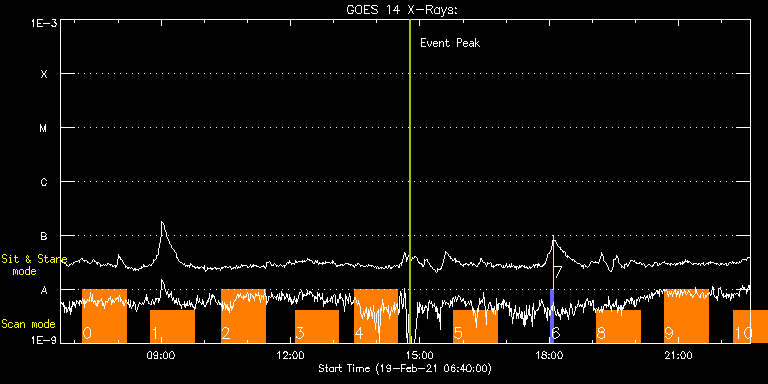 EIS Observation timeline overlay to GOES-Xray curve Code 1" 2" 40" 266" EIS Observations list for this event: STUDY ACRONYM ID DATE OBSERVED DESCRIPTION NOAA# TARGET 0 HPW021VEL260x512v2 | 76029 | 2021/02/19 07:11:08 | Active Region Studies | | Active Region TIMELINE ID DATE OBSERVED FITS FILE XCEN (+W/-E) YCEN (+N/-S) DUR ----------------------------------------------------------------------------------------------------------------- 76029 | 2021/02/19 07:11:08.000 | eis_l0_20210219_071108.fits.gz | 725.39 | -444.29 | 1h0m45s 1 HPW021VEL260x512v2 | 76030 | 2021/02/19 08:45:30 | Active Region Studies | | Active Region TIMELINE ID DATE OBSERVED FITS FILE XCEN (+W/-E) YCEN (+N/-S) DUR ----------------------------------------------------------------------------------------------------------------- 76030 | 2021/02/19 08:45:30.000 | eis_l0_20210219_084530.fits.gz | 730.48 | -445.53 | 1h0m45s 2 HPW021VEL260x512v2 | 76031 | 2021/02/19 10:23:53 | Active Region Studies | | Active Region TIMELINE ID DATE OBSERVED FITS FILE XCEN (+W/-E) YCEN (+N/-S) DUR ----------------------------------------------------------------------------------------------------------------- 76031 | 2021/02/19 10:23:53.000 | eis_l0_20210219_102353.fits.gz | 735.74 | -446.69 | 1h0m45s 3 HPW021VEL260x512v2 | 76032 | 2021/02/19 12:06:17 | Active Region Studies | | Active Region TIMELINE ID DATE OBSERVED FITS FILE XCEN (+W/-E) YCEN (+N/-S) DUR ----------------------------------------------------------------------------------------------------------------- 76032 | 2021/02/19 12:06:17.000 | eis_l0_20210219_120617.fits.gz | 740.99 | -448.08 | 1h0m44s 4 HPW021VEL260x512v2 | 76033 | 2021/02/19 13:28:36 | Active Region Studies | | Active Region TIMELINE ID DATE OBSERVED FITS FILE XCEN (+W/-E) YCEN (+N/-S) DUR ----------------------------------------------------------------------------------------------------------------- 76033 | 2021/02/19 13:28:36.000 | eis_l0_20210219_132836.fits.gz | 745.09 | -449.24 | 1h0m45s 5 HPW021VEL260x512v2 | 76035 | 2021/02/19 15:47:08 | Active Region Studies | | Active Region TIMELINE ID DATE OBSERVED FITS FILE XCEN (+W/-E) YCEN (+N/-S) DUR ----------------------------------------------------------------------------------------------------------------- 76035 | 2021/02/19 15:47:08.000 | eis_l0_20210219_154708.fits.gz | 751.88 | -451.01 | 1h0m45s 6 PRY_slot_contextLITE | 76044 | 2021/02/19 18:02:20 | Change in EIS pointing and alignment w | | Active Region TIMELINE ID DATE OBSERVED FITS FILE XCEN (+W/-E) YCEN (+N/-S) DUR ----------------------------------------------------------------------------------------------------------------- 76044 | 2021/02/19 18:02:20.000 | eis_l0_20210219_180220.fits.gz | -15.29 | -0.35 | 2m56s 7 XRT_synop_AIA | 76045 | 2021/02/19 18:05:35 | Changes in EIS pointing and algnment w | | Quiet Sun TIMELINE ID DATE OBSERVED FITS FILE XCEN (+W/-E) YCEN (+N/-S) DUR ----------------------------------------------------------------------------------------------------------------- 76045 | 2021/02/19 18:05:35.000 | eis_l0_20210219_180535.fits.gz | -132.57 | -0.42 | 10s 8 dhb_atlas_120m_30" | 76022 | 2021/02/19 19:06:01 | Quiet Sun Network and Coronal Bright P | | Quiet Sun TIMELINE ID DATE OBSERVED FITS FILE XCEN (+W/-E) YCEN (+N/-S) DUR ----------------------------------------------------------------------------------------------------------------- 76022 | 2021/02/19 19:06:01.000 | eis_l0_20210219_190601.fits.gz | -28.98 | 37.58 | 1h0m49s 9 dhb_atlas_120m_30" | 76023 | 2021/02/19 20:40:17 | Quiet Sun Network and Coronal Bright P | | Quiet Sun TIMELINE ID DATE OBSERVED FITS FILE XCEN (+W/-E) YCEN (+N/-S) DUR ----------------------------------------------------------------------------------------------------------------- 76023 | 2021/02/19 20:40:17.000 | eis_l0_20210219_204017.fits.gz | -14.30 | 37.73 | 1h0m48s 10 dhb_atlas_120m_30" | 76024 | 2021/02/19 22:16:39 | Quiet Sun Network and Coronal Bright P | | Quiet Sun TIMELINE ID DATE OBSERVED FITS FILE XCEN (+W/-E) YCEN (+N/-S) DUR ----------------------------------------------------------------------------------------------------------------- 76024 | 2021/02/19 22:16:39.000 | eis_l0_20210219_221639.fits.gz | 0.84 | 37.81 | 1h0m48s : Check study information : Download file : View thumbnails For this event, also check for: