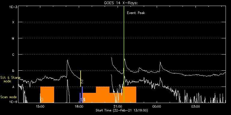 EIS Observation timeline overlay to GOES-Xray curve Code 1" 2" 40" 266" EIS Observations list for this event: STUDY ACRONYM ID DATE OBSERVED DESCRIPTION NOAA# TARGET 0 Large_CH_Map | 76054 | 2021/02/22 15:02:12 | Cycle 25 bright points | | Quiet Sun TIMELINE ID DATE OBSERVED FITS FILE XCEN (+W/-E) YCEN (+N/-S) DUR ----------------------------------------------------------------------------------------------------------------- 76054 | 2021/02/22 15:02:12.000 | eis_l0_20210222_150212.fits.gz | -40.85 | -530.81 | 1h1m53s 1 PRY_slot_contextLITE | 76059 | 2021/02/22 18:04:18 | Change in EIS pointing and alignment w | | Active Region TIMELINE ID DATE OBSERVED FITS FILE XCEN (+W/-E) YCEN (+N/-S) DUR ----------------------------------------------------------------------------------------------------------------- 76059 | 2021/02/22 18:04:18.000 | eis_l0_20210222_180418.fits.gz | -15.21 | -0.19 | 2m57s 2 XRT_synop_AIA | 76060 | 2021/02/22 18:07:33 | Changes in EIS pointing and algnment w | | Quiet Sun TIMELINE ID DATE OBSERVED FITS FILE XCEN (+W/-E) YCEN (+N/-S) DUR ----------------------------------------------------------------------------------------------------------------- 76060 | 2021/02/22 18:07:33.000 | eis_l0_20210222_180733.fits.gz | -132.49 | -0.42 | 10s 3 PRY_slot_context_v3 | 76064 | 2021/02/22 18:14:25 | Active region spectral atlas | | Active Region TIMELINE ID DATE OBSERVED FITS FILE XCEN (+W/-E) YCEN (+N/-S) DUR ----------------------------------------------------------------------------------------------------------------- 76064 | 2021/02/22 18:14:25.000 | eis_l0_20210222_181425.fits.gz | -423.26 | 444.60 | 2m56s 4 Atlas_60 | 76065 | 2021/02/22 18:17:46 | Active region spectral atlas | | Quiet Sun TIMELINE ID DATE OBSERVED FITS FILE XCEN (+W/-E) YCEN (+N/-S) DUR ----------------------------------------------------------------------------------------------------------------- 76065 | 2021/02/22 18:17:46.000 | eis_l0_20210222_181746.fits.gz | -408.38 | 444.68 | 1h1m39s 76065 | 2021/02/22 19:19:34.000 | eis_l0_20210222_191934.fits.gz | -400.19 | 445.22 | 1h1m40s 76065 | 2021/02/22 20:21:23.000 | eis_l0_20210222_202123.fits.gz | -392.01 | 445.76 | 1h1m39s 76065 | 2021/02/22 21:23:12.000 | eis_l0_20210222_212312.fits.gz | -383.74 | 446.07 | 1h1m39s : Check study information : Download file : View thumbnails For this event, also check for: