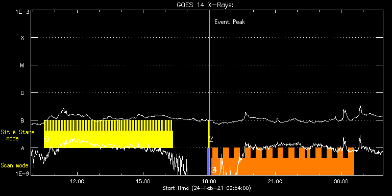 EIS Observation timeline overlay to GOES-Xray curve Code 1" 2" 40" 266" EIS Observations list for this event: STUDY ACRONYM ID DATE OBSERVED DESCRIPTION NOAA# TARGET 0 Alignment_266 | 76076 | 2021/02/24 10:30:26 | HOP 408 - on-disk jets in QS and CH | | Quiet Sun TIMELINE ID DATE OBSERVED FITS FILE XCEN (+W/-E) YCEN (+N/-S) DUR ----------------------------------------------------------------------------------------------------------------- 76076 | 2021/02/24 10:30:26.000 | eis_l0_20210224_103026.fits.gz | -91.70 | -0.11 | 1m22s 76076 | 2021/02/24 10:32:30.000 | eis_l0_20210224_103230.fits.gz | -91.39 | 0.04 | 1m22s 76076 | 2021/02/24 10:34:34.000 | eis_l0_20210224_103434.fits.gz | -91.16 | -0.04 | 1m22s 76076 | 2021/02/24 10:36:38.000 | eis_l0_20210224_103638.fits.gz | -90.70 | -0.11 | 1m22s 76076 | 2021/02/24 10:38:42.000 | eis_l0_20210224_103842.fits.gz | -90.54 | 0.04 | 1m21s 76076 | 2021/02/24 10:40:45.000 | eis_l0_20210224_104045.fits.gz | -90.16 | 0.04 | 1m22s 76076 | 2021/02/24 10:42:49.000 | eis_l0_20210224_104249.fits.gz | -89.85 | 0.04 | 1m22s 76076 | 2021/02/24 10:44:53.000 | eis_l0_20210224_104453.fits.gz | -89.46 | -0.04 | 1m22s 76076 | 2021/02/24 10:46:57.000 | eis_l0_20210224_104657.fits.gz | -89.23 | -0.11 | 1m22s 76076 | 2021/02/24 10:49:01.000 | eis_l0_20210224_104901.fits.gz | -88.84 | -0.04 | 1m22s 76076 | 2021/02/24 10:51:04.000 | eis_l0_20210224_105104.fits.gz | -88.61 | -0.11 | 1m22s 76076 | 2021/02/24 10:53:08.000 | eis_l0_20210224_105308.fits.gz | -88.30 | -0.19 | 1m22s 76076 | 2021/02/24 10:55:12.000 | eis_l0_20210224_105512.fits.gz | -87.92 | -0.11 | 1m22s 76076 | 2021/02/24 10:57:16.000 | eis_l0_20210224_105716.fits.gz | -87.61 | -0.19 | 1m22s 76076 | 2021/02/24 10:59:20.000 | eis_l0_20210224_105920.fits.gz | -87.14 | -0.19 | 1m21s 76076 | 2021/02/24 11:01:23.000 | eis_l0_20210224_110123.fits.gz | -86.91 | -0.04 | 1m22s 76076 | 2021/02/24 11:03:27.000 | eis_l0_20210224_110327.fits.gz | -86.60 | -0.04 | 1m22s 76076 | 2021/02/24 11:05:31.000 | eis_l0_20210224_110531.fits.gz | -86.29 | 0.04 | 1m22s 76076 | 2021/02/24 11:07:35.000 | eis_l0_20210224_110735.fits.gz | -85.98 | 0.04 | 1m21s 76076 | 2021/02/24 11:09:38.000 | eis_l0_20210224_110938.fits.gz | -85.52 | -0.11 | 1m23s 76076 | 2021/02/24 11:11:42.000 | eis_l0_20210224_111142.fits.gz | -85.29 | -0.04 | 1m22s 76076 | 2021/02/24 11:13:46.000 | eis_l0_20210224_111346.fits.gz | -85.06 | -0.04 | 1m22s 76076 | 2021/02/24 11:15:50.000 | eis_l0_20210224_111550.fits.gz | -84.67 | -0.04 | 1m22s 76076 | 2021/02/24 11:17:53.000 | eis_l0_20210224_111753.fits.gz | -84.29 | 0.04 | 1m22s 76076 | 2021/02/24 11:19:57.000 | eis_l0_20210224_111957.fits.gz | -84.05 | -0.04 | 1m22s 76076 | 2021/02/24 11:22:01.000 | eis_l0_20210224_112201.fits.gz | -83.67 | -0.04 | 1m22s 76076 | 2021/02/24 11:24:05.000 | eis_l0_20210224_112405.fits.gz | -83.36 | -0.11 | 1m22s 76076 | 2021/02/24 11:26:09.000 | eis_l0_20210224_112609.fits.gz | -83.05 | -0.11 | 1m22s 76076 | 2021/02/24 11:28:13.000 | eis_l0_20210224_112813.fits.gz | -82.74 | -0.11 | 1m22s 76076 | 2021/02/24 11:30:16.000 | eis_l0_20210224_113016.fits.gz | -82.43 | -0.04 | 1m22s 76076 | 2021/02/24 11:32:20.000 | eis_l0_20210224_113220.fits.gz | -82.05 | 0.12 | 1m22s 76076 | 2021/02/24 11:34:24.000 | eis_l0_20210224_113424.fits.gz | -81.74 | -0.11 | 1m22s 76076 | 2021/02/24 11:36:28.000 | eis_l0_20210224_113628.fits.gz | -81.43 | -0.11 | 1m22s 76076 | 2021/02/24 11:38:32.000 | eis_l0_20210224_113832.fits.gz | -81.12 | -0.11 | 1m22s 76076 | 2021/02/24 11:40:35.000 | eis_l0_20210224_114035.fits.gz | -80.81 | -0.11 | 1m22s 76076 | 2021/02/24 11:42:39.000 | eis_l0_20210224_114239.fits.gz | -80.42 | 0.12 | 1m22s 76076 | 2021/02/24 11:44:43.000 | eis_l0_20210224_114443.fits.gz | -80.19 | -0.04 | 1m22s 76076 | 2021/02/24 11:46:47.000 | eis_l0_20210224_114647.fits.gz | -79.88 | -0.04 | 1m22s 76076 | 2021/02/24 11:48:51.000 | eis_l0_20210224_114851.fits.gz | -79.57 | -0.04 | 1m22s 76076 | 2021/02/24 11:50:54.000 | eis_l0_20210224_115054.fits.gz | -79.19 | 0.20 | 1m22s 76076 | 2021/02/24 11:52:58.000 | eis_l0_20210224_115258.fits.gz | -78.88 | -0.11 | 1m22s 76076 | 2021/02/24 11:55:02.000 | eis_l0_20210224_115502.fits.gz | -78.49 | -0.11 | 1m22s 76076 | 2021/02/24 11:57:06.000 | eis_l0_20210224_115706.fits.gz | -78.26 | 0.04 | 1m22s 76076 | 2021/02/24 11:59:10.000 | eis_l0_20210224_115910.fits.gz | -77.95 | -0.11 | 1m22s 76076 | 2021/02/24 12:01:14.000 | eis_l0_20210224_120114.fits.gz | -77.64 | -0.04 | 1m22s 76076 | 2021/02/24 12:03:18.000 | eis_l0_20210224_120318.fits.gz | -77.26 | 0.04 | 1m22s 76076 | 2021/02/24 12:05:21.000 | eis_l0_20210224_120521.fits.gz | -76.95 | 0.04 | 1m22s 76076 | 2021/02/24 12:07:25.000 | eis_l0_20210224_120725.fits.gz | -76.56 | -0.11 | 1m22s 76076 | 2021/02/24 12:09:29.000 | eis_l0_20210224_120929.fits.gz | -76.25 | -0.19 | 1m22s 76076 | 2021/02/24 12:11:33.000 | eis_l0_20210224_121133.fits.gz | -76.02 | -0.04 | 1m22s 76076 | 2021/02/24 12:13:37.000 | eis_l0_20210224_121337.fits.gz | -75.71 | -0.04 | 1m22s 76076 | 2021/02/24 12:15:40.000 | eis_l0_20210224_121540.fits.gz | -75.40 | -0.11 | 1m22s 76076 | 2021/02/24 12:17:44.000 | eis_l0_20210224_121744.fits.gz | -75.09 | -0.04 | 1m22s 76076 | 2021/02/24 12:19:48.000 | eis_l0_20210224_121948.fits.gz | -74.78 | -0.19 | 1m22s 76076 | 2021/02/24 12:21:52.000 | eis_l0_20210224_122152.fits.gz | -74.40 | -0.11 | 1m22s 76076 | 2021/02/24 12:23:55.000 | eis_l0_20210224_122355.fits.gz | -74.09 | -0.04 | 1m22s 76076 | 2021/02/24 12:25:59.000 | eis_l0_20210224_122559.fits.gz | -73.78 | -0.19 | 1m22s 76076 | 2021/02/24 12:28:03.000 | eis_l0_20210224_122803.fits.gz | -73.39 | -0.11 | 1m22s 76076 | 2021/02/24 12:30:07.000 | eis_l0_20210224_123007.fits.gz | -73.08 | -0.27 | 1m22s 76076 | 2021/02/24 12:32:11.000 | eis_l0_20210224_123211.fits.gz | -72.85 | -0.11 | 1m22s 76076 | 2021/02/24 12:34:15.000 | eis_l0_20210224_123415.fits.gz | -72.54 | -0.11 | 1m22s 76076 | 2021/02/24 12:36:18.000 | eis_l0_20210224_123618.fits.gz | -72.16 | -0.
