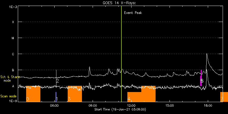 EIS Observation timeline overlay to GOES-Xray curve Code 1" 2" 40" 266" EIS Observations list for this event: STUDY ACRONYM ID DATE OBSERVED DESCRIPTION NOAA# TARGET 0 DHB_007 | 75708 | 2021/01/19 03:47:41 | PSP perihelion: footpoint southwest (H | | Quiet Sun TIMELINE ID DATE OBSERVED FITS FILE XCEN (+W/-E) YCEN (+N/-S) DUR ----------------------------------------------------------------------------------------------------------------- 75708 | 2021/01/19 03:47:41.000 | eis_l0_20210119_034741.fits.gz | 719.61 | -406.61 | 1h5m24s 1 PRY_slot_contextLITE | 75720 | 2021/01/19 06:05:18 | Pointing Monitoring | | Active Region TIMELINE ID DATE OBSERVED FITS FILE XCEN (+W/-E) YCEN (+N/-S) DUR ----------------------------------------------------------------------------------------------------------------- 75720 | 2021/01/19 06:05:18.000 | eis_l0_20210119_060518.fits.gz | -15.29 | -0.35 | 2m56s 2 XRT_synop_AIA | 75721 | 2021/01/19 06:08:33 | Pointing Monitoring | | Quiet Sun TIMELINE ID DATE OBSERVED FITS FILE XCEN (+W/-E) YCEN (+N/-S) DUR ----------------------------------------------------------------------------------------------------------------- 75721 | 2021/01/19 06:08:33.000 | eis_l0_20210119_060833.fits.gz | -132.49 | -0.50 | 10s 3 DHB_007 | 75709 | 2021/01/19 07:02:18 | PSP perihelion: footpoint southwest (H | | Quiet Sun TIMELINE ID DATE OBSERVED FITS FILE XCEN (+W/-E) YCEN (+N/-S) DUR ----------------------------------------------------------------------------------------------------------------- 75709 | 2021/01/19 07:02:18.000 | eis_l0_20210119_070218.fits.gz | 732.51 | -408.54 | 1h5m24s 4 DHB_007 | 75727 | 2021/01/19 11:42:40 | PSP perihelion: Disk center (HOP410) | | Quiet Sun TIMELINE ID DATE OBSERVED FITS FILE XCEN (+W/-E) YCEN (+N/-S) DUR ----------------------------------------------------------------------------------------------------------------- 75727 | 2021/01/19 11:42:40.000 | eis_l0_20210119_114240.fits.gz | -32.92 | 3.58 | 1h5m24s 75727 | 2021/01/19 12:48:11.000 | eis_l0_20210119_124811.fits.gz | -33.00 | 3.65 | 1h5m23s 5 regcal071 | 75780 | 2021/01/19 17:22:41 | Dark exposures, CCD bottom rows (100s | | Engineering TIMELINE ID DATE OBSERVED FITS FILE XCEN (+W/-E) YCEN (+N/-S) DUR ----------------------------------------------------------------------------------------------------------------- 75780 | 2021/01/19 17:22:41.000 | eis_l0_20210119_172241.fits.gz | 14.59 | -305.50 | 3m22s 6 regcal072 | 75781 | 2021/01/19 17:26:30 | Dark exposures, top CCD rows (100s exp | | Engineering TIMELINE ID DATE OBSERVED FITS FILE XCEN (+W/-E) YCEN (+N/-S) DUR ----------------------------------------------------------------------------------------------------------------- 75781 | 2021/01/19 17:26:30.000 | eis_l0_20210119_172630.fits.gz | 14.51 | 205.58 | 3m22s 7 DHB_007 | 75733 | 2021/01/19 18:57:43 | PSP perihelion: Disk center (HOP410) | | Quiet Sun TIMELINE ID DATE OBSERVED FITS FILE XCEN (+W/-E) YCEN (+N/-S) DUR ----------------------------------------------------------------------------------------------------------------- 75733 | 2021/01/19 18:57:43.000 | eis_l0_20210119_185743.fits.gz | -32.92 | 3.50 | 1h5m23s : Check study information : Download file : View thumbnails For this event, also check for: