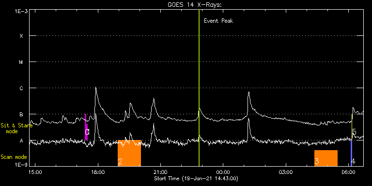 EIS Observation timeline overlay to GOES-Xray curve Code 1" 2" 40" 266" EIS Observations list for this event: STUDY ACRONYM ID DATE OBSERVED DESCRIPTION NOAA# TARGET 0 regcal071 | 75780 | 2021/01/19 17:22:41 | Dark exposures, CCD bottom rows (100s | | Engineering TIMELINE ID DATE OBSERVED FITS FILE XCEN (+W/-E) YCEN (+N/-S) DUR ----------------------------------------------------------------------------------------------------------------- 75780 | 2021/01/19 17:22:41.000 | eis_l0_20210119_172241.fits.gz | 14.59 | -305.50 | 3m22s 1 regcal072 | 75781 | 2021/01/19 17:26:30 | Dark exposures, top CCD rows (100s exp | | Engineering TIMELINE ID DATE OBSERVED FITS FILE XCEN (+W/-E) YCEN (+N/-S) DUR ----------------------------------------------------------------------------------------------------------------- 75781 | 2021/01/19 17:26:30.000 | eis_l0_20210119_172630.fits.gz | 14.51 | 205.58 | 3m22s 2 DHB_007 | 75733 | 2021/01/19 18:57:43 | PSP perihelion: Disk center (HOP410) | | Quiet Sun TIMELINE ID DATE OBSERVED FITS FILE XCEN (+W/-E) YCEN (+N/-S) DUR ----------------------------------------------------------------------------------------------------------------- 75733 | 2021/01/19 18:57:43.000 | eis_l0_20210119_185743.fits.gz | -32.92 | 3.50 | 1h5m23s 3 DHB_007 | 75728 | 2021/01/20 04:22:12 | PSP perihelion: footpoint southwest (H | | Quiet Sun TIMELINE ID DATE OBSERVED FITS FILE XCEN (+W/-E) YCEN (+N/-S) DUR ----------------------------------------------------------------------------------------------------------------- 75728 | 2021/01/20 04:22:12.000 | eis_l0_20210120_042212.fits.gz | 804.35 | -443.92 | 1h5m24s 4 PRY_slot_contextLITE | 75729 | 2021/01/20 06:06:50 | Pointing Monitoring | | Active Region TIMELINE ID DATE OBSERVED FITS FILE XCEN (+W/-E) YCEN (+N/-S) DUR ----------------------------------------------------------------------------------------------------------------- 75729 | 2021/01/20 06:06:50.000 | eis_l0_20210120_060650.fits.gz | -15.29 | -0.42 | 2m56s 5 XRT_synop_AIA | 75730 | 2021/01/20 06:10:04 | Pointing Monitoring | | Quiet Sun TIMELINE ID DATE OBSERVED FITS FILE XCEN (+W/-E) YCEN (+N/-S) DUR ----------------------------------------------------------------------------------------------------------------- 75730 | 2021/01/20 06:10:04.000 | eis_l0_20210120_061004.fits.gz | -132.57 | -0.50 | 10s : Check study information : Download file : View thumbnails For this event, also check for: