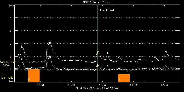 EIS Observation timeline overlay to GOES-Xray curve Code 1" 2" 40" 266" EIS Observations list for this event: STUDY ACRONYM ID DATE OBSERVED DESCRIPTION NOAA# TARGET 0 DHB_007 | 75735 | 2021/01/20 10:48:40 | PSP perihelion: Disk center (HOP410) | | Quiet Sun TIMELINE ID DATE OBSERVED FITS FILE XCEN (+W/-E) YCEN (+N/-S) DUR ----------------------------------------------------------------------------------------------------------------- 75735 | 2021/01/20 10:48:40.000 | eis_l0_20210120_104840.fits.gz | -32.92 | 3.58 | 1h5m23s 1 DHB_007 | 75736 | 2021/01/20 19:32:12 | PSP perihelion: Disk center (HOP410) | | Quiet Sun TIMELINE ID DATE OBSERVED FITS FILE XCEN (+W/-E) YCEN (+N/-S) DUR ----------------------------------------------------------------------------------------------------------------- 75736 | 2021/01/20 19:32:12.000 | eis_l0_20210120_193212.fits.gz | -32.92 | 3.50 | 1h5m24s : Check study information : Download file : View thumbnails For this event, also check for: