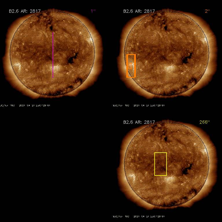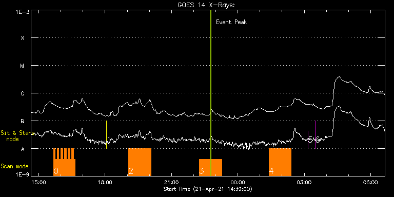 EIS Observation timeline overlay to GOES-Xray curve Code 1" 2" 40" 266" EIS Observations list for this event: STUDY ACRONYM ID DATE OBSERVED DESCRIPTION NOAA# TARGET 0 cam_flare_hot1_study | 76858 | 2021/04/21 15:40:13 | HOP396 Collaboration with Chandarayan- | | Flare TIMELINE ID DATE OBSERVED FITS FILE XCEN (+W/-E) YCEN (+N/-S) DUR ----------------------------------------------------------------------------------------------------------------- 76858 | 2021/04/21 15:40:13.000 | eis_l0_20210421_154013.fits.gz | -821.92 | -295.12 | 4m50s 76858 | 2021/04/21 15:45:06.000 | eis_l0_20210421_154506.fits.gz | -821.76 | -295.12 | 4m50s 76858 | 2021/04/21 15:49:59.000 | eis_l0_20210421_154959.fits.gz | -821.38 | -295.20 | 4m50s 76858 | 2021/04/21 15:54:52.000 | eis_l0_20210421_155452.fits.gz | -821.15 | -295.20 | 4m50s 76858 | 2021/04/21 15:59:45.000 | eis_l0_20210421_155945.fits.gz | -820.84 | -295.05 | 4m50s 76858 | 2021/04/21 16:04:38.000 | eis_l0_20210421_160438.fits.gz | -820.61 | -295.05 | 4m50s 76858 | 2021/04/21 16:09:30.000 | eis_l0_20210421_160930.fits.gz | -820.30 | -295.05 | 4m51s 76858 | 2021/04/21 16:14:23.000 | eis_l0_20210421_161423.fits.gz | -820.07 | -294.97 | 4m50s 76858 | 2021/04/21 16:19:16.000 | eis_l0_20210421_161916.fits.gz | -819.76 | -294.81 | 4m50s 76858 | 2021/04/21 16:24:09.000 | eis_l0_20210421_162409.fits.gz | -819.37 | -294.74 | 4m50s 76858 | 2021/04/21 16:29:02.000 | eis_l0_20210421_162902.fits.gz | -819.14 | -294.74 | 4m50s 76858 | 2021/04/21 16:33:55.000 | eis_l0_20210421_163355.fits.gz | -818.83 | -294.66 | 4m50s 1 XRT_synop_AIA | 76861 | 2021/04/21 18:03:34 | | | Quiet Sun TIMELINE ID DATE OBSERVED FITS FILE XCEN (+W/-E) YCEN (+N/-S) DUR ----------------------------------------------------------------------------------------------------------------- 76861 | 2021/04/21 18:03:34.000 | eis_l0_20210421_180334.fits.gz | -132.57 | -0.35 | 10s 2 HPW021VEL260x512v2 | 76854 | 2021/04/21 19:03:19 | HOP407 Solar Orbitor | 2818 | Active Region TIMELINE ID DATE OBSERVED FITS FILE XCEN (+W/-E) YCEN (+N/-S) DUR ----------------------------------------------------------------------------------------------------------------- 76854 | 2021/04/21 19:03:19.000 | eis_l0_20210421_190319.fits.gz | -809.12 | -293.11 | 1h0m45s 3 HPW021VEL260x512v2 | 76855 | 2021/04/21 22:15:13 | HOP407 Solar Orbitor | 2818 | Active Region TIMELINE ID DATE OBSERVED FITS FILE XCEN (+W/-E) YCEN (+N/-S) DUR ----------------------------------------------------------------------------------------------------------------- 76855 | 2021/04/21 22:15:13.000 | eis_l0_20210421_221513.fits.gz | -796.84 | -291.03 | 1h0m45s 4 HPW021VEL260x512v2 | 76856 | 2021/04/22 01:24:13 | HOP407 Solar Orbitor | | Active Region TIMELINE ID DATE OBSERVED FITS FILE XCEN (+W/-E) YCEN (+N/-S) DUR ----------------------------------------------------------------------------------------------------------------- 76856 | 2021/04/22 01:24:13.000 | eis_l0_20210422_012413.fits.gz | -784.17 | -289.02 | 1h0m44s 5 regcal078 | 76862 | 2021/04/22 03:09:44 | Dark exposures, 0s, 2 exposures, botto | | Engineering TIMELINE ID DATE OBSERVED FITS FILE XCEN (+W/-E) YCEN (+N/-S) DUR ----------------------------------------------------------------------------------------------------------------- 76862 | 2021/04/22 03:09:44.000 | eis_l0_20210422_030944.fits.gz | 14.59 | -305.50 | 2s 6 regcal079 | 76863 | 2021/04/22 03:29:26 | Dark exposures, 0s, 2 exposures, top c | | Engineering TIMELINE ID DATE OBSERVED FITS FILE XCEN (+W/-E) YCEN (+N/-S) DUR ----------------------------------------------------------------------------------------------------------------- 76863 | 2021/04/22 03:29:26.000 | eis_l0_20210422_032926.fits.gz | 14.51 | 205.58 | 2s : Check study information : Download file : View thumbnails For this event, also check for: