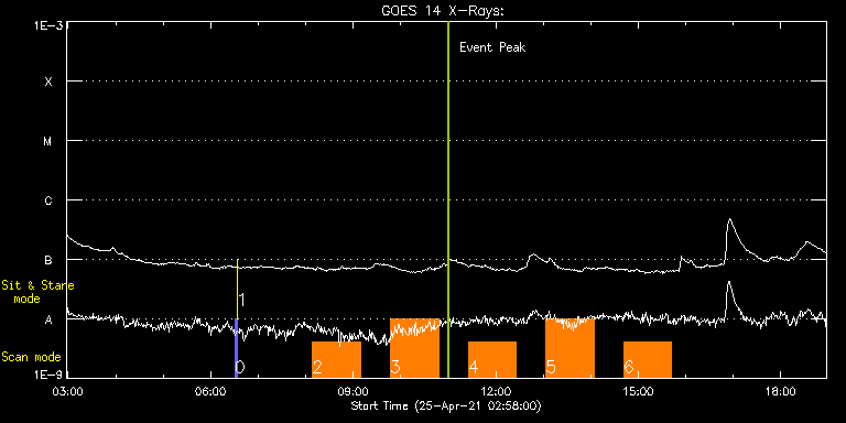 EIS Observation timeline overlay to GOES-Xray curve Code 1" 2" 40" 266" EIS Observations list for this event: STUDY ACRONYM ID DATE OBSERVED DESCRIPTION NOAA# TARGET 0 PRY_slot_contextLITE | 76923 | 2021/04/25 06:30:20 | Pointing Monitoring | 2818 | Active Region TIMELINE ID DATE OBSERVED FITS FILE XCEN (+W/-E) YCEN (+N/-S) DUR ----------------------------------------------------------------------------------------------------------------- 76923 | 2021/04/25 06:30:20.000 | eis_l0_20210425_063020.fits.gz | -15.29 | -0.27 | 2m56s 1 XRT_synop_AIA | 76924 | 2021/04/25 06:33:34 | Pointing Monitoring | | Quiet Sun TIMELINE ID DATE OBSERVED FITS FILE XCEN (+W/-E) YCEN (+N/-S) DUR ----------------------------------------------------------------------------------------------------------------- 76924 | 2021/04/25 06:33:34.000 | eis_l0_20210425_063334.fits.gz | -132.49 | -0.42 | 11s 2 Atlas_60 | 76914 | 2021/04/25 08:08:19 | HOP407 (Solar Orbiter/SPICE observatio | | Quiet Sun TIMELINE ID DATE OBSERVED FITS FILE XCEN (+W/-E) YCEN (+N/-S) DUR ----------------------------------------------------------------------------------------------------------------- 76914 | 2021/04/25 08:08:19.000 | eis_l0_20210425_080819.fits.gz | -9914.63 | -10052.20 | 1h1m39s 3 Atlas_60 | 76915 | 2021/04/25 09:46:40 | HOP407 (Solar Orbiter/SPICE observatio | | Quiet Sun TIMELINE ID DATE OBSERVED FITS FILE XCEN (+W/-E) YCEN (+N/-S) DUR ----------------------------------------------------------------------------------------------------------------- 76915 | 2021/04/25 09:46:40.000 | eis_l0_20210425_094640.fits.gz | -9914.63 | -9892.20 | 1h1m39s 4 HPW021VEL260x512v2 | 76920 | 2021/04/25 11:25:13 | HOP407 (Solar Orbiter/SPICE observatio | | Active Region TIMELINE ID DATE OBSERVED FITS FILE XCEN (+W/-E) YCEN (+N/-S) DUR ----------------------------------------------------------------------------------------------------------------- 76920 | 2021/04/25 11:25:13.000 | eis_l0_20210425_112513.fits.gz | -9915.13 | -9972.20 | 1h0m44s 5 HPW021VEL260x512v2 | 76921 | 2021/04/25 13:03:13 | HOP407 (Solar Orbiter/SPICE observatio | | Active Region TIMELINE ID DATE OBSERVED FITS FILE XCEN (+W/-E) YCEN (+N/-S) DUR ----------------------------------------------------------------------------------------------------------------- 76921 | 2021/04/25 13:03:13.000 | eis_l0_20210425_130313.fits.gz | -9915.13 | -9972.20 | 1h0m44s 6 HPW021VEL260x512v2 | 76913 | 2021/04/25 14:41:43 | HOP407 (Solar Orbiter/SPICE observatio | | Active Region TIMELINE ID DATE OBSERVED FITS FILE XCEN (+W/-E) YCEN (+N/-S) DUR ----------------------------------------------------------------------------------------------------------------- 76913 | 2021/04/25 14:41:43.000 | eis_l0_20210425_144143.fits.gz | -9915.13 | -9972.20 | 1h0m44s : Check study information : Download file : View thumbnails For this event, also check for: