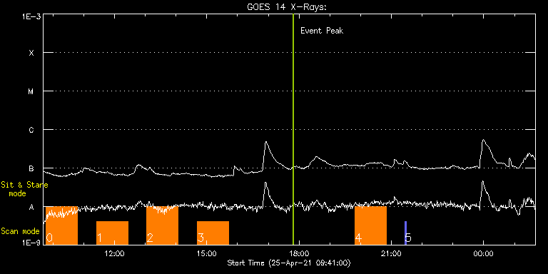 EIS Observation timeline overlay to GOES-Xray curve Code 1" 2" 40" 266" EIS Observations list for this event: STUDY ACRONYM ID DATE OBSERVED DESCRIPTION NOAA# TARGET 0 Atlas_60 | 76915 | 2021/04/25 09:46:40 | HOP407 (Solar Orbiter/SPICE observatio | | Quiet Sun TIMELINE ID DATE OBSERVED FITS FILE XCEN (+W/-E) YCEN (+N/-S) DUR ----------------------------------------------------------------------------------------------------------------- 76915 | 2021/04/25 09:46:40.000 | eis_l0_20210425_094640.fits.gz | -9914.63 | -9892.20 | 1h1m39s 1 HPW021VEL260x512v2 | 76920 | 2021/04/25 11:25:13 | HOP407 (Solar Orbiter/SPICE observatio | | Active Region TIMELINE ID DATE OBSERVED FITS FILE XCEN (+W/-E) YCEN (+N/-S) DUR ----------------------------------------------------------------------------------------------------------------- 76920 | 2021/04/25 11:25:13.000 | eis_l0_20210425_112513.fits.gz | -9915.13 | -9972.20 | 1h0m44s 2 HPW021VEL260x512v2 | 76921 | 2021/04/25 13:03:13 | HOP407 (Solar Orbiter/SPICE observatio | | Active Region TIMELINE ID DATE OBSERVED FITS FILE XCEN (+W/-E) YCEN (+N/-S) DUR ----------------------------------------------------------------------------------------------------------------- 76921 | 2021/04/25 13:03:13.000 | eis_l0_20210425_130313.fits.gz | -9915.13 | -9972.20 | 1h0m44s 3 HPW021VEL260x512v2 | 76913 | 2021/04/25 14:41:43 | HOP407 (Solar Orbiter/SPICE observatio | | Active Region TIMELINE ID DATE OBSERVED FITS FILE XCEN (+W/-E) YCEN (+N/-S) DUR ----------------------------------------------------------------------------------------------------------------- 76913 | 2021/04/25 14:41:43.000 | eis_l0_20210425_144143.fits.gz | -9915.13 | -9972.20 | 1h0m44s 4 dhb_atlas_120m_30" | 76933 | 2021/04/25 19:49:12 | QS observation support SOT | | Quiet Sun TIMELINE ID DATE OBSERVED FITS FILE XCEN (+W/-E) YCEN (+N/-S) DUR ----------------------------------------------------------------------------------------------------------------- 76933 | 2021/04/25 19:49:12.000 | eis_l0_20210425_194912.fits.gz | -12.13 | 751.53 | 1h0m50s 5 PRY_slot_contextLITE | 76932 | 2021/04/25 21:26:19 | QS Study | | Active Region TIMELINE ID DATE OBSERVED FITS FILE XCEN (+W/-E) YCEN (+N/-S) DUR ----------------------------------------------------------------------------------------------------------------- 76932 | 2021/04/25 21:26:19.000 | eis_l0_20210425_212619.fits.gz | -17.21 | 751.61 | 2m57s : Check study information : Download file : View thumbnails For this event, also check for: