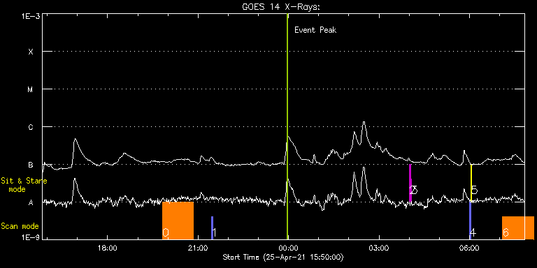 EIS Observation timeline overlay to GOES-Xray curve Code 1" 2" 40" 266" EIS Observations list for this event: STUDY ACRONYM ID DATE OBSERVED DESCRIPTION NOAA# TARGET 0 dhb_atlas_120m_30" | 76933 | 2021/04/25 19:49:12 | QS observation support SOT | | Quiet Sun TIMELINE ID DATE OBSERVED FITS FILE XCEN (+W/-E) YCEN (+N/-S) DUR ----------------------------------------------------------------------------------------------------------------- 76933 | 2021/04/25 19:49:12.000 | eis_l0_20210425_194912.fits.gz | -12.13 | 751.53 | 1h0m50s 1 PRY_slot_contextLITE | 76932 | 2021/04/25 21:26:19 | QS Study | | Active Region TIMELINE ID DATE OBSERVED FITS FILE XCEN (+W/-E) YCEN (+N/-S) DUR ----------------------------------------------------------------------------------------------------------------- 76932 | 2021/04/25 21:26:19.000 | eis_l0_20210425_212619.fits.gz | -17.21 | 751.61 | 2m57s 2 regcal074 | 76929 | 2021/04/26 04:00:11 | Dark exposures including overscan pixe | | Engineering TIMELINE ID DATE OBSERVED FITS FILE XCEN (+W/-E) YCEN (+N/-S) DUR ----------------------------------------------------------------------------------------------------------------- 76929 | 2021/04/26 04:00:11.000 | eis_l0_20210426_040011.fits.gz | 14.59 | 205.58 | 3m21s 3 regcal076 | 76931 | 2021/04/26 04:04:00 | Flatfield, 1 exposure, led 100ms, ccd | | Engineering TIMELINE ID DATE OBSERVED FITS FILE XCEN (+W/-E) YCEN (+N/-S) DUR ----------------------------------------------------------------------------------------------------------------- 76931 | 2021/04/26 04:04:00.000 | eis_l0_20210426_040400.fits.gz | 14.51 | -50.50 | 1s 4 PRY_slot_contextLITE | 76925 | 2021/04/26 06:00:12 | Pointing Monitoring | 2818 | Active Region TIMELINE ID DATE OBSERVED FITS FILE XCEN (+W/-E) YCEN (+N/-S) DUR ----------------------------------------------------------------------------------------------------------------- 76925 | 2021/04/26 06:00:12.000 | eis_l0_20210426_060012.fits.gz | -15.21 | -0.50 | 2m57s 5 XRT_synop_AIA | 76926 | 2021/04/26 06:03:27 | Pointing Monitoring | | Quiet Sun TIMELINE ID DATE OBSERVED FITS FILE XCEN (+W/-E) YCEN (+N/-S) DUR ----------------------------------------------------------------------------------------------------------------- 76926 | 2021/04/26 06:03:27.000 | eis_l0_20210426_060327.fits.gz | -132.57 | -0.42 | 10s 6 Atlas_60 | 76916 | 2021/04/26 07:05:49 | HOP407 (Solar Orbiter/SPICE observatio | | Quiet Sun TIMELINE ID DATE OBSERVED FITS FILE XCEN (+W/-E) YCEN (+N/-S) DUR ----------------------------------------------------------------------------------------------------------------- 76916 | 2021/04/26 07:05:49.000 | eis_l0_20210426_070549.fits.gz | -9914.88 | -10052.20 | 1h1m39s : Check study information : Download file : View thumbnails For this event, also check for: