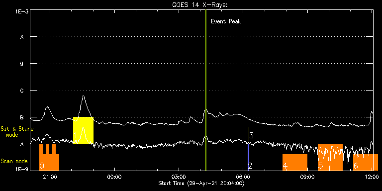 EIS Observation timeline overlay to GOES-Xray curve Code 1" 2" 40" 266" EIS Observations list for this event: STUDY ACRONYM ID DATE OBSERVED DESCRIPTION NOAA# TARGET 0 FlareResponse01 | 77013 | 2021/04/29 20:30:44 | HOP409 (Energetics of Solar Erruption) | 2818 | Flare TIMELINE ID DATE OBSERVED FITS FILE XCEN (+W/-E) YCEN (+N/-S) DUR ----------------------------------------------------------------------------------------------------------------- 77013 | 2021/04/29 20:30:44.000 | eis_l0_20210429_203044.fits.gz | 802.49 | -312.86 | 8m51s 77013 | 2021/04/29 20:39:38.000 | eis_l0_20210429_203938.fits.gz | 802.95 | -312.86 | 8m52s 77013 | 2021/04/29 20:48:33.000 | eis_l0_20210429_204833.fits.gz | 803.41 | -312.94 | 8m52s 77013 | 2021/04/29 20:57:28.000 | eis_l0_20210429_205728.fits.gz | 803.95 | -313.09 | 8m52s 77013 | 2021/04/29 21:06:23.000 | eis_l0_20210429_210623.fits.gz | 804.42 | -313.17 | 8m53s 77013 | 2021/04/29 21:15:19.000 | eis_l0_20210429_211519.fits.gz | 804.88 | -313.33 | 8m52s 1 Flare266_Hunter01 | 77012 | 2021/04/29 22:04:43 | HOP409 (Energetics of Solar Erruption) | 2818 | Flare TIMELINE ID DATE OBSERVED FITS FILE XCEN (+W/-E) YCEN (+N/-S) DUR ----------------------------------------------------------------------------------------------------------------- 77012 | 2021/04/29 22:04:43.000 | eis_l0_20210429_220443.fits.gz | 675.74 | -313.63 | 55m49s 2 PRY_slot_contextLITE | 77006 | 2021/04/30 06:12:57 | Pointing Monitoring | | Active Region TIMELINE ID DATE OBSERVED FITS FILE XCEN (+W/-E) YCEN (+N/-S) DUR ----------------------------------------------------------------------------------------------------------------- 77006 | 2021/04/30 06:12:57.000 | eis_l0_20210430_061257.fits.gz | -15.21 | -0.42 | 2m57s 3 XRT_synop_AIA | 77007 | 2021/04/30 06:16:12 | Pointing Monitoring | | Quiet Sun TIMELINE ID DATE OBSERVED FITS FILE XCEN (+W/-E) YCEN (+N/-S) DUR ----------------------------------------------------------------------------------------------------------------- 77007 | 2021/04/30 06:16:12.000 | eis_l0_20210430_061612.fits.gz | -132.57 | -0.42 | 10s 4 CH_funnels_FIPv2 | 76992 | 2021/04/30 07:51:20 | HOP415 (Holistic View on Coronal Holes | | Coronal Hole TIMELINE ID DATE OBSERVED FITS FILE XCEN (+W/-E) YCEN (+N/-S) DUR ----------------------------------------------------------------------------------------------------------------- 76992 | 2021/04/30 07:51:20.000 | eis_l0_20210430_075120.fits.gz | -10.90 | -377.52 | 1h8m4s 5 CH_funnels_FIPv2 | 76993 | 2021/04/30 09:30:10 | HOP415 (Holistic View on Coronal Holes | | Coronal Hole TIMELINE ID DATE OBSERVED FITS FILE XCEN (+W/-E) YCEN (+N/-S) DUR ----------------------------------------------------------------------------------------------------------------- 76993 | 2021/04/30 09:30:10.000 | eis_l0_20210430_093010.fits.gz | -122.67 | -377.60 | 1h8m5s 6 CH_funnels_FIPv2 | 76994 | 2021/04/30 11:08:40 | HOP415 (Holistic View on Coronal Holes | | Coronal Hole TIMELINE ID DATE OBSERVED FITS FILE XCEN (+W/-E) YCEN (+N/-S) DUR ----------------------------------------------------------------------------------------------------------------- 76994 | 2021/04/30 11:08:40.000 | eis_l0_20210430_110840.fits.gz | -235.53 | -377.67 | 1h8m5s : Check study information : Download file : View thumbnails For this event, also check for: