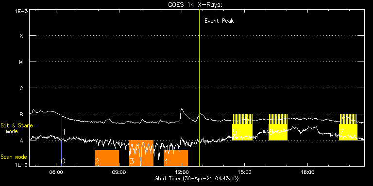 EIS Observation timeline overlay to GOES-Xray curve Code 1" 2" 40" 266" EIS Observations list for this event: STUDY ACRONYM ID DATE OBSERVED DESCRIPTION NOAA# TARGET 0 PRY_slot_contextLITE | 77006 | 2021/04/30 06:12:57 | Pointing Monitoring | | Active Region TIMELINE ID DATE OBSERVED FITS FILE XCEN (+W/-E) YCEN (+N/-S) DUR ----------------------------------------------------------------------------------------------------------------- 77006 | 2021/04/30 06:12:57.000 | eis_l0_20210430_061257.fits.gz | -15.21 | -0.42 | 2m57s 1 XRT_synop_AIA | 77007 | 2021/04/30 06:16:12 | Pointing Monitoring | | Quiet Sun TIMELINE ID DATE OBSERVED FITS FILE XCEN (+W/-E) YCEN (+N/-S) DUR ----------------------------------------------------------------------------------------------------------------- 77007 | 2021/04/30 06:16:12.000 | eis_l0_20210430_061612.fits.gz | -132.57 | -0.42 | 10s 2 CH_funnels_FIPv2 | 76992 | 2021/04/30 07:51:20 | HOP415 (Holistic View on Coronal Holes | | Coronal Hole TIMELINE ID DATE OBSERVED FITS FILE XCEN (+W/-E) YCEN (+N/-S) DUR ----------------------------------------------------------------------------------------------------------------- 76992 | 2021/04/30 07:51:20.000 | eis_l0_20210430_075120.fits.gz | -10.90 | -377.52 | 1h8m4s 3 CH_funnels_FIPv2 | 76993 | 2021/04/30 09:30:10 | HOP415 (Holistic View on Coronal Holes | | Coronal Hole TIMELINE ID DATE OBSERVED FITS FILE XCEN (+W/-E) YCEN (+N/-S) DUR ----------------------------------------------------------------------------------------------------------------- 76993 | 2021/04/30 09:30:10.000 | eis_l0_20210430_093010.fits.gz | -122.67 | -377.60 | 1h8m5s 4 CH_funnels_FIPv2 | 76994 | 2021/04/30 11:08:40 | HOP415 (Holistic View on Coronal Holes | | Coronal Hole TIMELINE ID DATE OBSERVED FITS FILE XCEN (+W/-E) YCEN (+N/-S) DUR ----------------------------------------------------------------------------------------------------------------- 76994 | 2021/04/30 11:08:40.000 | eis_l0_20210430_110840.fits.gz | -235.53 | -377.67 | 1h8m5s 5 Alignment_266 | 76997 | 2021/04/30 14:25:03 | HOP410 (Coordinated HSO Connect Observ | | Quiet Sun TIMELINE ID DATE OBSERVED FITS FILE XCEN (+W/-E) YCEN (+N/-S) DUR ----------------------------------------------------------------------------------------------------------------- 76997 | 2021/04/30 14:25:03.000 | eis_l0_20210430_142503.fits.gz | -152.26 | -9.28 | 1m22s 76997 | 2021/04/30 14:27:07.000 | eis_l0_20210430_142707.fits.gz | -152.18 | -9.28 | 1m22s 76997 | 2021/04/30 14:29:11.000 | eis_l0_20210430_142911.fits.gz | -152.18 | -9.36 | 1m22s 76997 | 2021/04/30 14:31:15.000 | eis_l0_20210430_143115.fits.gz | -152.10 | -9.36 | 1m22s 76997 | 2021/04/30 14:33:18.000 | eis_l0_20210430_143318.fits.gz | -152.26 | -9.28 | 1m23s 76997 | 2021/04/30 14:35:22.000 | eis_l0_20210430_143522.fits.gz | -152.18 | -9.28 | 1m22s 76997 | 2021/04/30 14:37:26.000 | eis_l0_20210430_143726.fits.gz | -152.26 | -9.36 | 1m22s 76997 | 2021/04/30 14:39:30.000 | eis_l0_20210430_143930.fits.gz | -152.18 | -9.36 | 1m22s 76997 | 2021/04/30 14:41:34.000 | eis_l0_20210430_144134.fits.gz | -152.18 | -9.28 | 1m22s 76997 | 2021/04/30 14:43:38.000 | eis_l0_20210430_144338.fits.gz | -152.18 | -9.36 | 1m22s 76997 | 2021/04/30 14:45:41.000 | eis_l0_20210430_144541.fits.gz | -152.18 | -9.28 | 1m22s 76997 | 2021/04/30 14:47:45.000 | eis_l0_20210430_144745.fits.gz | -152.26 | -9.43 | 1m22s 76997 | 2021/04/30 14:49:49.000 | eis_l0_20210430_144949.fits.gz | -152.18 | -9.36 | 1m22s 76997 | 2021/04/30 14:51:53.000 | eis_l0_20210430_145153.fits.gz | -152.26 | -9.28 | 1m22s 76997 | 2021/04/30 14:53:56.000 | eis_l0_20210430_145356.fits.gz | -152.26 | -9.36 | 1m22s 76997 | 2021/04/30 14:56:00.000 | eis_l0_20210430_145600.fits.gz | -152.26 | -9.36 | 1m22s 76997 | 2021/04/30 14:58:04.000 | eis_l0_20210430_145804.fits.gz | -152.26 | -9.28 | 1m22s 76997 | 2021/04/30 15:00:08.000 | eis_l0_20210430_150008.fits.gz | -152.18 | -9.28 | 1m22s 76997 | 2021/04/30 15:02:12.000 | eis_l0_20210430_150212.fits.gz | -152.26 | -9.28 | 1m22s 76997 | 2021/04/30 15:04:15.000 | eis_l0_20210430_150415.fits.gz | -152.26 | -9.20 | 1m22s 76997 | 2021/04/30 15:06:19.000 | eis_l0_20210430_150619.fits.gz | -152.18 | -9.28 | 1m22s 76997 | 2021/04/30 15:08:23.000 | eis_l0_20210430_150823.fits.gz | -152.18 | -9.36 | 1m22s 76997 | 2021/04/30 15:10:27.000 | eis_l0_20210430_151027.fits.gz | -152.26 | -9.20 | 1m22s 76997 | 2021/04/30 15:12:30.000 | eis_l0_20210430_151230.fits.gz | -152.18 | -9.28 | 1m22s 76997 | 2021/04/30 15:14:34.000 | eis_l0_20210430_151434.fits.gz | -152.18 | -9.20 | 1m22s 76997 | 2021/04/30 15:16:38.000 | eis_l0_20210430_151638.fits.gz | -152.18 | -9.36 | 1m22s 76997 | 2021/04/30 15:18:42.000 | eis_l0_20210430_151842.fits.gz | -152.18 | -9.43 | 1m22s 76997 | 2021/04/30 15:20:46.000 | eis_l0_20210430_152046.fits.gz | -152.18 | -9.28 | 1m22s 6 Alignment_266 | 76998 | 2021/04/30 16:08:40 | HOP410 (Coordinated HSO Connect Observ | | Quiet Sun TIMELINE ID DATE OBSERVED FITS FILE XCEN (+W/-E) YCEN (+N/-S) DUR ----------------------------------------------------------------------------------------------------------------- 76998 | 2021/04/30 16:08:40.000 | eis_l0_20210430_160840.fits.gz | -152.26 | -9.36 | 1m22s 76998 | 2021/04/30 16:10:44.000 | eis_l0_20210430_161044.fits.gz | -152.18 | -9.36 | 1m22s 76998 | 2021/04/30 16:12:48.000 | eis_l0_20210430_161248.fits.gz | -152.18 | -9.28 | 1m22s 76998 | 2021/04/30 16:14:52.000 | eis_l0_20210430_161452.fits.gz | -152.18 | -9.28 | 1m22s 76998 | 2021/04/30 16:16:55.000 | eis_l0_20210430_161655.fits.gz | -152.18 | -9.28 | 1m23s 76998 | 2021/04/30 16:18:59.000 | eis_l0_20210430_161859.fits.gz | -152.26 | -9.20 | 1m22s 76998 | 2021/04/30 16:21:03.000 | eis_l0_20210430_162103.fits.gz | -152.26 | -9.36 | 1m22s 76998 | 2021/04/30 16:23:07.000 | eis_l0_20210430_162307.fits.gz | -152.18 | -9.36 | 1m22s 76998 | 2021/04/30 16:25:11.000 | eis_l0_20210430_162511.fits.gz | -152.18 | -9.43 | 1m22s 76998 | 2021/04/30 16:27:15.000 | eis_l0_20210430