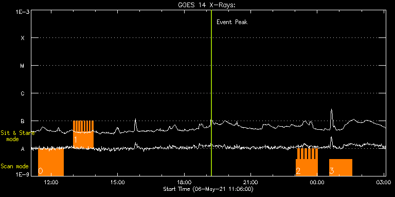 EIS Observation timeline overlay to GOES-Xray curve Code 1" 2" 40" 266" EIS Observations list for this event: STUDY ACRONYM ID DATE OBSERVED DESCRIPTION NOAA# TARGET 0 CH_funnels_FIPv2 | 77072 | 2021/05/06 11:25:13 | A holistic view of coronal holes - ove | | Coronal Hole TIMELINE ID DATE OBSERVED FITS FILE XCEN (+W/-E) YCEN (+N/-S) DUR ----------------------------------------------------------------------------------------------------------------- 77072 | 2021/05/06 11:25:13.000 | eis_l0_20210506_112513.fits.gz | 989.70 | -314.30 | 1h8m4s 1 CH_funnels+FIP_sitn | 77073 | 2021/05/06 13:00:13 | A holistic view of coronal holes - tem | | Coronal Hole TIMELINE ID DATE OBSERVED FITS FILE XCEN (+W/-E) YCEN (+N/-S) DUR ----------------------------------------------------------------------------------------------------------------- 77073 | 2021/05/06 13:00:13.000 | eis_l0_20210506_130013.fits.gz | -21.65 | -263.63 | 3m30s 77073 | 2021/05/06 13:03:47.000 | eis_l0_20210506_130347.fits.gz | -21.11 | -263.63 | 3m30s 77073 | 2021/05/06 13:07:21.000 | eis_l0_20210506_130721.fits.gz | -20.42 | -263.56 | 3m30s 77073 | 2021/05/06 13:10:55.000 | eis_l0_20210506_131055.fits.gz | -19.95 | -263.79 | 3m30s 77073 | 2021/05/06 13:14:29.000 | eis_l0_20210506_131429.fits.gz | -19.41 | -263.71 | 3m30s 77073 | 2021/05/06 13:18:03.000 | eis_l0_20210506_131803.fits.gz | -18.87 | -263.79 | 3m30s 77073 | 2021/05/06 13:21:37.000 | eis_l0_20210506_132137.fits.gz | -18.49 | -263.71 | 3m30s 77073 | 2021/05/06 13:25:11.000 | eis_l0_20210506_132511.fits.gz | -17.94 | -263.71 | 3m30s 77073 | 2021/05/06 13:28:45.000 | eis_l0_20210506_132845.fits.gz | -17.48 | -263.79 | 3m30s 77073 | 2021/05/06 13:32:19.000 | eis_l0_20210506_133219.fits.gz | -16.94 | -263.71 | 3m30s 77073 | 2021/05/06 13:35:53.000 | eis_l0_20210506_133553.fits.gz | -16.40 | -263.71 | 3m30s 77073 | 2021/05/06 13:39:27.000 | eis_l0_20210506_133927.fits.gz | -15.86 | -263.79 | 3m30s 77073 | 2021/05/06 13:43:01.000 | eis_l0_20210506_134301.fits.gz | -15.55 | -263.71 | 3m31s 77073 | 2021/05/06 13:46:35.000 | eis_l0_20210506_134635.fits.gz | -15.01 | -263.71 | 3m30s 77073 | 2021/05/06 13:50:09.000 | eis_l0_20210506_135009.fits.gz | -14.31 | -263.71 | 3m31s 2 EL_DHB_01 | 77079 | 2021/05/06 23:02:12 | Coronal magnetic field measurements in | | Flare TIMELINE ID DATE OBSERVED FITS FILE XCEN (+W/-E) YCEN (+N/-S) DUR ----------------------------------------------------------------------------------------------------------------- 77079 | 2021/05/06 23:02:12.000 | eis_l0_20210506_230212.fits.gz | -513.26 | -277.53 | 4m50s 77079 | 2021/05/06 23:07:05.000 | eis_l0_20210506_230705.fits.gz | -512.56 | -277.53 | 4m50s 77079 | 2021/05/06 23:11:58.000 | eis_l0_20210506_231158.fits.gz | -512.10 | -277.38 | 4m50s 77079 | 2021/05/06 23:16:51.000 | eis_l0_20210506_231651.fits.gz | -511.48 | -277.38 | 4m50s 77079 | 2021/05/06 23:21:44.000 | eis_l0_20210506_232144.fits.gz | -510.86 | -277.46 | 4m51s 77079 | 2021/05/06 23:26:37.000 | eis_l0_20210506_232637.fits.gz | -510.24 | -277.38 | 4m51s 77079 | 2021/05/06 23:31:31.000 | eis_l0_20210506_233131.fits.gz | -509.70 | -277.38 | 4m50s 77079 | 2021/05/06 23:36:24.000 | eis_l0_20210506_233624.fits.gz | -509.16 | -277.23 | 4m50s 77079 | 2021/05/06 23:41:17.000 | eis_l0_20210506_234117.fits.gz | -508.39 | -277.23 | 4m50s 77079 | 2021/05/06 23:46:10.000 | eis_l0_20210506_234610.fits.gz | -507.85 | -277.38 | 4m50s 77079 | 2021/05/06 23:51:03.000 | eis_l0_20210506_235103.fits.gz | -507.31 | -277.23 | 4m50s 77079 | 2021/05/06 23:55:56.000 | eis_l0_20210506_235556.fits.gz | -506.61 | -277.23 | 4m50s 3 Atlas_60 | 77078 | 2021/05/07 00:32:42 | Active region studies - spectral atlas | | Quiet Sun TIMELINE ID DATE OBSERVED FITS FILE XCEN (+W/-E) YCEN (+N/-S) DUR ----------------------------------------------------------------------------------------------------------------- 77078 | 2021/05/07 00:32:42.000 | eis_l0_20210507_003242.fits.gz | -502.29 | -277.07 | 1h1m40s : Check study information : Download file : View thumbnails For this event, also check for: