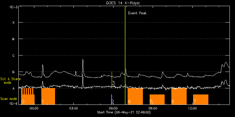 EIS Observation timeline overlay to GOES-Xray curve Code 1" 2" 40" 266" EIS Observations list for this event: STUDY ACRONYM ID DATE OBSERVED DESCRIPTION NOAA# TARGET 0 EL_DHB_01 | 77079 | 2021/05/06 23:02:12 | Coronal magnetic field measurements in | | Flare TIMELINE ID DATE OBSERVED FITS FILE XCEN (+W/-E) YCEN (+N/-S) DUR ----------------------------------------------------------------------------------------------------------------- 77079 | 2021/05/06 23:02:12.000 | eis_l0_20210506_230212.fits.gz | -513.26 | -277.53 | 4m50s 77079 | 2021/05/06 23:07:05.000 | eis_l0_20210506_230705.fits.gz | -512.56 | -277.53 | 4m50s 77079 | 2021/05/06 23:11:58.000 | eis_l0_20210506_231158.fits.gz | -512.10 | -277.38 | 4m50s 77079 | 2021/05/06 23:16:51.000 | eis_l0_20210506_231651.fits.gz | -511.48 | -277.38 | 4m50s 77079 | 2021/05/06 23:21:44.000 | eis_l0_20210506_232144.fits.gz | -510.86 | -277.46 | 4m51s 77079 | 2021/05/06 23:26:37.000 | eis_l0_20210506_232637.fits.gz | -510.24 | -277.38 | 4m51s 77079 | 2021/05/06 23:31:31.000 | eis_l0_20210506_233131.fits.gz | -509.70 | -277.38 | 4m50s 77079 | 2021/05/06 23:36:24.000 | eis_l0_20210506_233624.fits.gz | -509.16 | -277.23 | 4m50s 77079 | 2021/05/06 23:41:17.000 | eis_l0_20210506_234117.fits.gz | -508.39 | -277.23 | 4m50s 77079 | 2021/05/06 23:46:10.000 | eis_l0_20210506_234610.fits.gz | -507.85 | -277.38 | 4m50s 77079 | 2021/05/06 23:51:03.000 | eis_l0_20210506_235103.fits.gz | -507.31 | -277.23 | 4m50s 77079 | 2021/05/06 23:55:56.000 | eis_l0_20210506_235556.fits.gz | -506.61 | -277.23 | 4m50s 1 Atlas_60 | 77078 | 2021/05/07 00:32:42 | Active region studies - spectral atlas | | Quiet Sun TIMELINE ID DATE OBSERVED FITS FILE XCEN (+W/-E) YCEN (+N/-S) DUR ----------------------------------------------------------------------------------------------------------------- 77078 | 2021/05/07 00:32:42.000 | eis_l0_20210507_003242.fits.gz | -502.29 | -277.07 | 1h1m40s 2 PRY_slot_contextLITE | 77065 | 2021/05/07 05:50:19 | Pointing monitoring. | | Active Region TIMELINE ID DATE OBSERVED FITS FILE XCEN (+W/-E) YCEN (+N/-S) DUR ----------------------------------------------------------------------------------------------------------------- 77065 | 2021/05/07 05:50:19.000 | eis_l0_20210507_055019.fits.gz | -15.14 | -0.50 | 2m56s 3 XRT_synop_AIA | 77066 | 2021/05/07 05:53:33 | Pointing monitoring. | | Quiet Sun TIMELINE ID DATE OBSERVED FITS FILE XCEN (+W/-E) YCEN (+N/-S) DUR ----------------------------------------------------------------------------------------------------------------- 77066 | 2021/05/07 05:53:33.000 | eis_l0_20210507_055333.fits.gz | -132.57 | -0.58 | 10s 4 CH_funnels_FIPv2 | 77074 | 2021/05/07 07:06:19 | A holistic view of coronal holes - ove | | Coronal Hole TIMELINE ID DATE OBSERVED FITS FILE XCEN (+W/-E) YCEN (+N/-S) DUR ----------------------------------------------------------------------------------------------------------------- 77074 | 2021/05/07 07:06:19.000 | eis_l0_20210507_070619.fits.gz | 532.83 | 66.45 | 1h8m4s 5 CH_funnels_FIPv2 | 77075 | 2021/05/07 08:45:12 | A holistic view of coronal holes - ove | | Coronal Hole TIMELINE ID DATE OBSERVED FITS FILE XCEN (+W/-E) YCEN (+N/-S) DUR ----------------------------------------------------------------------------------------------------------------- 77075 | 2021/05/07 08:45:12.000 | eis_l0_20210507_084512.fits.gz | 423.74 | 65.91 | 1h8m4s 6 CH_funnels_FIPv2 | 77076 | 2021/05/07 10:24:12 | A holistic view of coronal holes - ove | | Coronal Hole TIMELINE ID DATE OBSERVED FITS FILE XCEN (+W/-E) YCEN (+N/-S) DUR ----------------------------------------------------------------------------------------------------------------- 77076 | 2021/05/07 10:24:12.000 | eis_l0_20210507_102412.fits.gz | 314.90 | 64.37 | 1h8m4s 7 CH_funnels_FIPv2 | 77077 | 2021/05/07 12:03:12 | A holistic view of coronal holes - ove | | Coronal Hole TIMELINE ID DATE OBSERVED FITS FILE XCEN (+W/-E) YCEN (+N/-S) DUR ----------------------------------------------------------------------------------------------------------------- 77077 | 2021/05/07 12:03:12.000 | eis_l0_20210507_120312.fits.gz | 206.06 | 64.06 | 1h8m6s : Check study information : Download file : View thumbnails For this event, also check for: