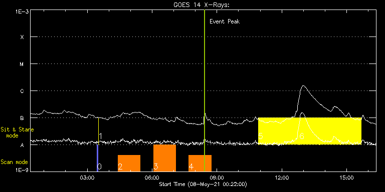 EIS Observation timeline overlay to GOES-Xray curve Code 1" 2" 40" 266" EIS Observations list for this event: STUDY ACRONYM ID DATE OBSERVED DESCRIPTION NOAA# TARGET 0 PRY_slot_contextLITE | 77067 | 2021/05/08 03:27:18 | Pointing monitoring. | | Active Region TIMELINE ID DATE OBSERVED FITS FILE XCEN (+W/-E) YCEN (+N/-S) DUR ----------------------------------------------------------------------------------------------------------------- 77067 | 2021/05/08 03:27:18.000 | eis_l0_20210508_032718.fits.gz | -15.37 | -0.50 | 2m56s 1 XRT_synop_AIA | 77068 | 2021/05/08 03:30:33 | Pointing monitoring. | | Quiet Sun TIMELINE ID DATE OBSERVED FITS FILE XCEN (+W/-E) YCEN (+N/-S) DUR ----------------------------------------------------------------------------------------------------------------- 77068 | 2021/05/08 03:30:33.000 | eis_l0_20210508_033033.fits.gz | -132.49 | -0.27 | 10s 2 Large_CH_Map | 77069 | 2021/05/08 04:25:19 | Cycle 24/25 equatorial transition. | | Quiet Sun TIMELINE ID DATE OBSERVED FITS FILE XCEN (+W/-E) YCEN (+N/-S) DUR ----------------------------------------------------------------------------------------------------------------- 77069 | 2021/05/08 04:25:19.000 | eis_l0_20210508_042519.fits.gz | -15.16 | 1.65 | 1h1m52s 3 Large_CH_Map | 77070 | 2021/05/08 06:03:41 | Cycle 24/25 equatorial transition. | | Quiet Sun TIMELINE ID DATE OBSERVED FITS FILE XCEN (+W/-E) YCEN (+N/-S) DUR ----------------------------------------------------------------------------------------------------------------- 77070 | 2021/05/08 06:03:41.000 | eis_l0_20210508_060341.fits.gz | -0.09 | 1.42 | 1h1m54s 4 Large_CH_Map | 77071 | 2021/05/08 07:42:12 | Cycle 24/25 equatorial transition. | | Quiet Sun TIMELINE ID DATE OBSERVED FITS FILE XCEN (+W/-E) YCEN (+N/-S) DUR ----------------------------------------------------------------------------------------------------------------- 77071 | 2021/05/08 07:42:12.000 | eis_l0_20210508_074212.fits.gz | 15.12 | 1.34 | 1h1m54s 5 Flare266_Hunter01 | 77120 | 2021/05/08 10:54:34 | Flare Hunter | | Flare TIMELINE ID DATE OBSERVED FITS FILE XCEN (+W/-E) YCEN (+N/-S) DUR ----------------------------------------------------------------------------------------------------------------- 77120 | 2021/05/08 10:54:34.000 | eis_l0_20210508_105434.fits.gz | -986.45 | 311.57 | 56m23s 77120 | 2021/05/08 11:51:49.000 | eis_l0_20210508_115149.fits.gz | -983.36 | 312.03 | 56m22s 77120 | 2021/05/08 12:49:03.000 | eis_l0_20210508_124903.fits.gz | -980.27 | 312.49 | 56m23s 77120 | 2021/05/08 13:46:18.000 | eis_l0_20210508_134618.fits.gz | -977.18 | 312.95 | 56m22s 77120 | 2021/05/08 14:43:32.000 | eis_l0_20210508_144332.fits.gz | -974.01 | 313.42 | 56m23s 6 Flare266_Hunter01 | 77120 | 2021/05/08 10:54:34 | Flare Hunter | | Flare TIMELINE ID DATE OBSERVED FITS FILE XCEN (+W/-E) YCEN (+N/-S) DUR ----------------------------------------------------------------------------------------------------------------- 77120 | 2021/05/08 10:54:34.000 | eis_l0_20210508_105434.fits.gz | -986.45 | 311.57 | 56m23s 77120 | 2021/05/08 11:51:49.000 | eis_l0_20210508_115149.fits.gz | -983.36 | 312.03 | 56m22s 77120 | 2021/05/08 12:49:03.000 | eis_l0_20210508_124903.fits.gz | -980.27 | 312.49 | 56m23s 77120 | 2021/05/08 13:46:18.000 | eis_l0_20210508_134618.fits.gz | -977.18 | 312.95 | 56m22s 77120 | 2021/05/08 14:43:32.000 | eis_l0_20210508_144332.fits.gz | -974.01 | 313.42 | 56m23s : Check study information : Download file : View thumbnails For this event, also check for: