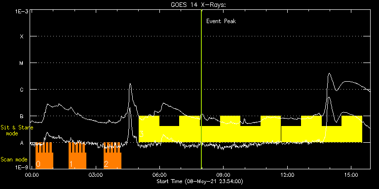 EIS Observation timeline overlay to GOES-Xray curve Code 1" 2" 40" 266" EIS Observations list for this event: STUDY ACRONYM ID DATE OBSERVED DESCRIPTION NOAA# TARGET 0 EL_DHB_01 | 77109 | 2021/05/09 00:10:43 | HOP395 | | Flare TIMELINE ID DATE OBSERVED FITS FILE XCEN (+W/-E) YCEN (+N/-S) DUR ----------------------------------------------------------------------------------------------------------------- 77109 | 2021/05/09 00:10:43.000 | eis_l0_20210509_001043.fits.gz | -806.66 | 316.74 | 4m51s 77109 | 2021/05/09 00:15:36.000 | eis_l0_20210509_001536.fits.gz | -806.27 | 316.67 | 4m50s 77109 | 2021/05/09 00:20:29.000 | eis_l0_20210509_002029.fits.gz | -805.96 | 316.67 | 4m50s 77109 | 2021/05/09 00:25:22.000 | eis_l0_20210509_002522.fits.gz | -805.73 | 316.67 | 4m51s 77109 | 2021/05/09 00:30:16.000 | eis_l0_20210509_003016.fits.gz | -805.35 | 316.82 | 4m50s 77109 | 2021/05/09 00:35:09.000 | eis_l0_20210509_003509.fits.gz | -805.04 | 316.74 | 4m50s 77109 | 2021/05/09 00:40:02.000 | eis_l0_20210509_004002.fits.gz | -804.65 | 316.82 | 4m50s 77109 | 2021/05/09 00:44:55.000 | eis_l0_20210509_004455.fits.gz | -804.34 | 316.74 | 4m50s 77109 | 2021/05/09 00:49:48.000 | eis_l0_20210509_004948.fits.gz | -804.03 | 317.05 | 4m50s 77109 | 2021/05/09 00:54:40.000 | eis_l0_20210509_005440.fits.gz | -803.57 | 316.90 | 4m50s 1 EL_DHB_01 | 77110 | 2021/05/09 01:44:14 | HOP395 | | Flare TIMELINE ID DATE OBSERVED FITS FILE XCEN (+W/-E) YCEN (+N/-S) DUR ----------------------------------------------------------------------------------------------------------------- 77110 | 2021/05/09 01:44:14.000 | eis_l0_20210509_014414.fits.gz | -800.25 | 317.29 | 4m50s 77110 | 2021/05/09 01:49:06.000 | eis_l0_20210509_014906.fits.gz | -799.86 | 317.29 | 4m50s 77110 | 2021/05/09 01:53:59.000 | eis_l0_20210509_015359.fits.gz | -799.55 | 317.29 | 4m51s 77110 | 2021/05/09 01:58:52.000 | eis_l0_20210509_015852.fits.gz | -799.17 | 317.29 | 4m51s 77110 | 2021/05/09 02:03:46.000 | eis_l0_20210509_020346.fits.gz | -798.93 | 317.52 | 4m50s 77110 | 2021/05/09 02:08:39.000 | eis_l0_20210509_020839.fits.gz | -798.62 | 317.36 | 4m50s 77110 | 2021/05/09 02:13:32.000 | eis_l0_20210509_021332.fits.gz | -798.24 | 317.44 | 4m50s 77110 | 2021/05/09 02:18:25.000 | eis_l0_20210509_021825.fits.gz | -798.01 | 317.52 | 4m50s 77110 | 2021/05/09 02:23:18.000 | eis_l0_20210509_022318.fits.gz | -797.54 | 317.67 | 4m50s 77110 | 2021/05/09 02:28:11.000 | eis_l0_20210509_022811.fits.gz | -797.16 | 317.59 | 4m50s 2 EL_DHB_01 | 77111 | 2021/05/09 03:22:43 | HOP395 | | Flare TIMELINE ID DATE OBSERVED FITS FILE XCEN (+W/-E) YCEN (+N/-S) DUR ----------------------------------------------------------------------------------------------------------------- 77111 | 2021/05/09 03:22:43.000 | eis_l0_20210509_032243.fits.gz | -793.37 | 318.14 | 4m50s 77111 | 2021/05/09 03:27:36.000 | eis_l0_20210509_032736.fits.gz | -792.83 | 317.90 | 4m50s 77111 | 2021/05/09 03:32:29.000 | eis_l0_20210509_033229.fits.gz | -792.52 | 318.06 | 4m50s 77111 | 2021/05/09 03:37:22.000 | eis_l0_20210509_033722.fits.gz | -792.29 | 318.06 | 4m51s 77111 | 2021/05/09 03:42:16.000 | eis_l0_20210509_034216.fits.gz | -792.06 | 318.06 | 4m50s 77111 | 2021/05/09 03:47:09.000 | eis_l0_20210509_034709.fits.gz | -791.60 | 318.21 | 4m50s 77111 | 2021/05/09 03:52:02.000 | eis_l0_20210509_035202.fits.gz | -791.29 | 318.14 | 4m50s 77111 | 2021/05/09 03:56:55.000 | eis_l0_20210509_035655.fits.gz | -790.90 | 318.14 | 4m50s 77111 | 2021/05/09 04:01:47.000 | eis_l0_20210509_040147.fits.gz | -790.59 | 318.21 | 4m50s 77111 | 2021/05/09 04:06:40.000 | eis_l0_20210509_040640.fits.gz | -790.13 | 318.29 | 4m50s 3 Flare266_Hunter01 | 77127 | 2021/05/09 05:01:34 | Flare Hunter | | Flare TIMELINE ID DATE OBSERVED FITS FILE XCEN (+W/-E) YCEN (+N/-S) DUR ----------------------------------------------------------------------------------------------------------------- 77127 | 2021/05/09 05:01:34.000 | eis_l0_20210509_050134.fits.gz | -918.70 | 319.68 | 56m22s 77127 | 2021/05/09 05:58:48.000 | eis_l0_20210509_055848.fits.gz | -914.38 | 320.06 | 56m22s 77127 | 2021/05/09 06:56:03.000 | eis_l0_20210509_065603.fits.gz | -910.28 | 320.53 | 56m22s 77127 | 2021/05/09 07:53:17.000 | eis_l0_20210509_075317.fits.gz | -905.72 | 320.91 | 56m22s 77127 | 2021/05/09 08:50:32.000 | eis_l0_20210509_085032.fits.gz | -901.32 | 321.30 | 56m22s 77127 | 2021/05/09 09:47:46.000 | eis_l0_20210509_094746.fits.gz | -896.84 | 321.53 | 56m22s 77127 | 2021/05/09 10:45:00.000 | eis_l0_20210509_104500.fits.gz | -892.28 | 321.92 | 56m23s 77127 | 2021/05/09 11:43:12.000 | eis_l0_20210509_114312.fits.gz | -887.57 | 322.46 | 55m25s 77127 | 2021/05/09 12:39:29.000 | eis_l0_20210509_123929.fits.gz | -882.94 | 322.69 | 56m23s 77127 | 2021/05/09 13:36:44.000 | eis_l0_20210509_133644.fits.gz | -878.30 | 323.08 | 56m22s 77127 | 2021/05/09 14:33:58.000 | eis_l0_20210509_143358.fits.gz | -873.43 | 323.46 | 56m23s : Check study information : Download file : View thumbnails For this event, also check for:
