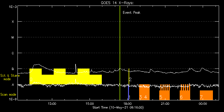 EIS Observation timeline overlay to GOES-Xray curve Code 1" 2" 40" 266" EIS Observations list for this event: STUDY ACRONYM ID DATE OBSERVED DESCRIPTION NOAA# TARGET 0 Flare266_Hunter01 | 77129 | 2021/05/10 10:13:33 | Flare Hunter | | Flare TIMELINE ID DATE OBSERVED FITS FILE XCEN (+W/-E) YCEN (+N/-S) DUR ----------------------------------------------------------------------------------------------------------------- 77129 | 2021/05/10 10:13:33.000 | eis_l0_20210510_101333.fits.gz | -727.28 | 312.11 | 56m22s 77129 | 2021/05/10 11:10:47.000 | eis_l0_20210510_111047.fits.gz | -720.95 | 312.42 | 56m22s 77129 | 2021/05/10 12:08:02.000 | eis_l0_20210510_120802.fits.gz | -714.54 | 312.88 | 56m22s 77129 | 2021/05/10 13:05:16.000 | eis_l0_20210510_130516.fits.gz | -707.97 | 312.80 | 56m22s 77129 | 2021/05/10 14:02:31.000 | eis_l0_20210510_140231.fits.gz | -701.25 | 313.03 | 56m22s 77129 | 2021/05/10 14:59:45.000 | eis_l0_20210510_145945.fits.gz | -694.76 | 313.34 | 56m22s 1 PRY_slot_contextLITE | 77100 | 2021/05/10 18:03:26 | Pointing monitoring. | | Active Region TIMELINE ID DATE OBSERVED FITS FILE XCEN (+W/-E) YCEN (+N/-S) DUR ----------------------------------------------------------------------------------------------------------------- 77100 | 2021/05/10 18:03:26.000 | eis_l0_20210510_180326.fits.gz | -15.14 | -0.42 | 2m56s 2 XRT_synop_AIA | 77101 | 2021/05/10 18:06:41 | Pointing monitoring. | | Quiet Sun TIMELINE ID DATE OBSERVED FITS FILE XCEN (+W/-E) YCEN (+N/-S) DUR ----------------------------------------------------------------------------------------------------------------- 77101 | 2021/05/10 18:06:41.000 | eis_l0_20210510_180641.fits.gz | -132.49 | -0.35 | 10s 3 EL_DHB_01 | 77112 | 2021/05/10 18:55:49 | HOP395 | | Flare TIMELINE ID DATE OBSERVED FITS FILE XCEN (+W/-E) YCEN (+N/-S) DUR ----------------------------------------------------------------------------------------------------------------- 77112 | 2021/05/10 18:55:49.000 | eis_l0_20210510_185549.fits.gz | -533.19 | 310.35 | 4m50s 77112 | 2021/05/10 19:00:42.000 | eis_l0_20210510_190042.fits.gz | -532.57 | 310.27 | 4m50s 77112 | 2021/05/10 19:05:35.000 | eis_l0_20210510_190535.fits.gz | -532.03 | 310.27 | 4m50s 77112 | 2021/05/10 19:10:28.000 | eis_l0_20210510_191028.fits.gz | -531.49 | 310.19 | 4m50s 77112 | 2021/05/10 19:15:21.000 | eis_l0_20210510_191521.fits.gz | -530.87 | 310.27 | 4m50s 77112 | 2021/05/10 19:20:13.000 | eis_l0_20210510_192013.fits.gz | -530.26 | 310.42 | 4m51s 77112 | 2021/05/10 19:25:06.000 | eis_l0_20210510_192506.fits.gz | -529.71 | 310.27 | 4m50s 77112 | 2021/05/10 19:29:59.000 | eis_l0_20210510_192959.fits.gz | -529.02 | 310.27 | 4m51s 77112 | 2021/05/10 19:34:53.000 | eis_l0_20210510_193453.fits.gz | -528.56 | 310.27 | 4m50s 77112 | 2021/05/10 19:39:46.000 | eis_l0_20210510_193946.fits.gz | -528.02 | 310.35 | 4m50s 4 EL_DHB_01 | 77112 | 2021/05/10 18:55:49 | HOP395 | | Flare TIMELINE ID DATE OBSERVED FITS FILE XCEN (+W/-E) YCEN (+N/-S) DUR ----------------------------------------------------------------------------------------------------------------- 77112 | 2021/05/10 18:55:49.000 | eis_l0_20210510_185549.fits.gz | -533.19 | 310.35 | 4m50s 77112 | 2021/05/10 19:00:42.000 | eis_l0_20210510_190042.fits.gz | -532.57 | 310.27 | 4m50s 77112 | 2021/05/10 19:05:35.000 | eis_l0_20210510_190535.fits.gz | -532.03 | 310.27 | 4m50s 77112 | 2021/05/10 19:10:28.000 | eis_l0_20210510_191028.fits.gz | -531.49 | 310.19 | 4m50s 77112 | 2021/05/10 19:15:21.000 | eis_l0_20210510_191521.fits.gz | -530.87 | 310.27 | 4m50s 77112 | 2021/05/10 19:20:13.000 | eis_l0_20210510_192013.fits.gz | -530.26 | 310.42 | 4m51s 77112 | 2021/05/10 19:25:06.000 | eis_l0_20210510_192506.fits.gz | -529.71 | 310.27 | 4m50s 77112 | 2021/05/10 19:29:59.000 | eis_l0_20210510_192959.fits.gz | -529.02 | 310.27 | 4m51s 77112 | 2021/05/10 19:34:53.000 | eis_l0_20210510_193453.fits.gz | -528.56 | 310.27 | 4m50s 77112 | 2021/05/10 19:39:46.000 | eis_l0_20210510_193946.fits.gz | -528.02 | 310.35 | 4m50s 5 EL_DHB_01 | 77113 | 2021/05/10 20:32:12 | HOP395 | | Flare TIMELINE ID DATE OBSERVED FITS FILE XCEN (+W/-E) YCEN (+N/-S) DUR ----------------------------------------------------------------------------------------------------------------- 77113 | 2021/05/10 20:32:12.000 | eis_l0_20210510_203212.fits.gz | -521.60 | 310.50 | 4m51s 77113 | 2021/05/10 20:37:06.000 | eis_l0_20210510_203706.fits.gz | -521.06 | 310.58 | 4m49s 77113 | 2021/05/10 20:41:58.000 | eis_l0_20210510_204158.fits.gz | -520.45 | 310.65 | 4m51s 77113 | 2021/05/10 20:46:51.000 | eis_l0_20210510_204651.fits.gz | -519.90 | 310.65 | 4m51s 77113 | 2021/05/10 20:51:44.000 | eis_l0_20210510_205144.fits.gz | -519.29 | 310.65 | 4m51s 77113 | 2021/05/10 20:56:38.000 | eis_l0_20210510_205638.fits.gz | -518.74 | 310.65 | 4m49s 77113 | 2021/05/10 21:01:30.000 | eis_l0_20210510_210130.fits.gz | -518.13 | 310.65 | 4m51s 77113 | 2021/05/10 21:06:23.000 | eis_l0_20210510_210623.fits.gz | -517.59 | 310.81 | 4m39s 77113 | 2021/05/10 21:11:16.000 | eis_l0_20210510_211116.fits.gz | -516.97 | 310.89 | 4m50s 77113 | 2021/05/10 21:16:09.000 | eis_l0_20210510_211609.fits.gz | -516.35 | 310.73 | 4m50s 6 EL_DHB_01 | 77114 | 2021/05/10 22:09:42 | HOP395 | | Flare TIMELINE ID DATE OBSERVED FITS FILE XCEN (+W/-E) YCEN (+N/-S) DUR ----------------------------------------------------------------------------------------------------------------- 77114 | 2021/05/10 22:09:42.000 | eis_l0_20210510_220942.fits.gz | -509.86 | 309.96 | 4m50s 77114 | 2021/05/10 22:14:35.000 | eis_l0_20210510_221435.fits.gz | -509.24 | 309.89 | 4m50s 77114 | 2021/05/10 22:19:28.000 | eis_l0_20210510_221928.fits.gz | -508.70 | 309.96 | 4m51s 77114 | 2021/05/10 22:24:22.000 | eis_l0_20210510_222422.fits.gz | -508.01 | 310.04 | 4m50s 77114 | 2021/05/10 22:29:15.000 | eis_l0_20210510_222915.fits.gz | -507.47 | 310.04 | 4m50s 77114 | 2021/05/10 22:34:07.000 | eis_l0_20210510_223407.fits.gz | -506.85 | 309.96 | 4m50s 77114 | 2021/05/10 22:39:00.0