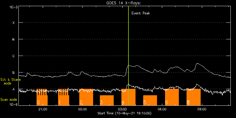 EIS Observation timeline overlay to GOES-Xray curve Code 1" 2" 40" 266" EIS Observations list for this event: STUDY ACRONYM ID DATE OBSERVED DESCRIPTION NOAA# TARGET 0 EL_DHB_01 | 77113 | 2021/05/10 20:32:12 | HOP395 | | Flare TIMELINE ID DATE OBSERVED FITS FILE XCEN (+W/-E) YCEN (+N/-S) DUR ----------------------------------------------------------------------------------------------------------------- 77113 | 2021/05/10 20:32:12.000 | eis_l0_20210510_203212.fits.gz | -521.60 | 310.50 | 4m51s 77113 | 2021/05/10 20:37:06.000 | eis_l0_20210510_203706.fits.gz | -521.06 | 310.58 | 4m49s 77113 | 2021/05/10 20:41:58.000 | eis_l0_20210510_204158.fits.gz | -520.45 | 310.65 | 4m51s 77113 | 2021/05/10 20:46:51.000 | eis_l0_20210510_204651.fits.gz | -519.90 | 310.65 | 4m51s 77113 | 2021/05/10 20:51:44.000 | eis_l0_20210510_205144.fits.gz | -519.29 | 310.65 | 4m51s 77113 | 2021/05/10 20:56:38.000 | eis_l0_20210510_205638.fits.gz | -518.74 | 310.65 | 4m49s 77113 | 2021/05/10 21:01:30.000 | eis_l0_20210510_210130.fits.gz | -518.13 | 310.65 | 4m51s 77113 | 2021/05/10 21:06:23.000 | eis_l0_20210510_210623.fits.gz | -517.59 | 310.81 | 4m39s 77113 | 2021/05/10 21:11:16.000 | eis_l0_20210510_211116.fits.gz | -516.97 | 310.89 | 4m50s 77113 | 2021/05/10 21:16:09.000 | eis_l0_20210510_211609.fits.gz | -516.35 | 310.73 | 4m50s 1 EL_DHB_01 | 77114 | 2021/05/10 22:09:42 | HOP395 | | Flare TIMELINE ID DATE OBSERVED FITS FILE XCEN (+W/-E) YCEN (+N/-S) DUR ----------------------------------------------------------------------------------------------------------------- 77114 | 2021/05/10 22:09:42.000 | eis_l0_20210510_220942.fits.gz | -509.86 | 309.96 | 4m50s 77114 | 2021/05/10 22:14:35.000 | eis_l0_20210510_221435.fits.gz | -509.24 | 309.89 | 4m50s 77114 | 2021/05/10 22:19:28.000 | eis_l0_20210510_221928.fits.gz | -508.70 | 309.96 | 4m51s 77114 | 2021/05/10 22:24:22.000 | eis_l0_20210510_222422.fits.gz | -508.01 | 310.04 | 4m50s 77114 | 2021/05/10 22:29:15.000 | eis_l0_20210510_222915.fits.gz | -507.47 | 310.04 | 4m50s 77114 | 2021/05/10 22:34:07.000 | eis_l0_20210510_223407.fits.gz | -506.85 | 309.96 | 4m50s 77114 | 2021/05/10 22:39:00.000 | eis_l0_20210510_223900.fits.gz | -506.15 | 310.04 | 4m50s 77114 | 2021/05/10 22:43:53.000 | eis_l0_20210510_224353.fits.gz | -505.61 | 310.12 | 4m50s 77114 | 2021/05/10 22:48:46.000 | eis_l0_20210510_224846.fits.gz | -504.99 | 310.12 | 4m50s 77114 | 2021/05/10 22:53:39.000 | eis_l0_20210510_225339.fits.gz | -504.45 | 310.04 | 4m50s 2 Large_CH_Map | 77088 | 2021/05/10 23:45:12 | Cycle 25 bright points. | | Quiet Sun TIMELINE ID DATE OBSERVED FITS FILE XCEN (+W/-E) YCEN (+N/-S) DUR ----------------------------------------------------------------------------------------------------------------- 77088 | 2021/05/10 23:45:12.000 | eis_l0_20210510_234512.fits.gz | -27.65 | 569.44 | 1h1m53s 3 Large_CH_Map | 77089 | 2021/05/11 01:18:10 | Cycle 25 bright points. | | Quiet Sun TIMELINE ID DATE OBSERVED FITS FILE XCEN (+W/-E) YCEN (+N/-S) DUR ----------------------------------------------------------------------------------------------------------------- 77089 | 2021/05/11 01:18:10.000 | eis_l0_20210511_011810.fits.gz | -19.74 | 569.52 | 1h1m53s 4 Large_CH_Map | 77090 | 2021/05/11 02:56:13 | Cycle 25 bright points. | | Quiet Sun TIMELINE ID DATE OBSERVED FITS FILE XCEN (+W/-E) YCEN (+N/-S) DUR ----------------------------------------------------------------------------------------------------------------- 77090 | 2021/05/11 02:56:13.000 | eis_l0_20210511_025613.fits.gz | -19.59 | -591.21 | 1h1m52s 5 Large_CH_Map | 77091 | 2021/05/11 04:34:43 | Cycle 25 bright points. | | Quiet Sun TIMELINE ID DATE OBSERVED FITS FILE XCEN (+W/-E) YCEN (+N/-S) DUR ----------------------------------------------------------------------------------------------------------------- 77091 | 2021/05/11 04:34:43.000 | eis_l0_20210511_043443.fits.gz | -19.67 | -591.36 | 1h1m53s 6 iiap_ch_ctxt_v2 | 77084 | 2021/05/11 06:13:12 | HOP 417 | | Coronal Hole TIMELINE ID DATE OBSERVED FITS FILE XCEN (+W/-E) YCEN (+N/-S) DUR ----------------------------------------------------------------------------------------------------------------- 77084 | 2021/05/11 06:13:12.000 | eis_l0_20210511_061312.fits.gz | 203.58 | -824.72 | 1h1m54s 7 iiap_ch_ctxt_v2 | 77085 | 2021/05/11 07:51:12 | HOP 417 | | Coronal Hole TIMELINE ID DATE OBSERVED FITS FILE XCEN (+W/-E) YCEN (+N/-S) DUR ----------------------------------------------------------------------------------------------------------------- 77085 | 2021/05/11 07:51:12.000 | eis_l0_20210511_075112.fits.gz | 208.60 | -824.96 | 1h1m53s 8 iiap_ch_ctxt_v2 | 77085 | 2021/05/11 07:51:12 | HOP 417 | | Coronal Hole TIMELINE ID DATE OBSERVED FITS FILE XCEN (+W/-E) YCEN (+N/-S) DUR ----------------------------------------------------------------------------------------------------------------- 77085 | 2021/05/11 07:51:12.000 | eis_l0_20210511_075112.fits.gz | 208.60 | -824.96 | 1h1m53s : Check study information : Download file : View thumbnails For this event, also check for: