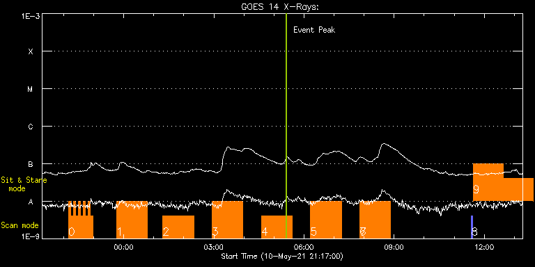 EIS Observation timeline overlay to GOES-Xray curve Code 1" 2" 40" 266" EIS Observations list for this event: STUDY ACRONYM ID DATE OBSERVED DESCRIPTION NOAA# TARGET 0 EL_DHB_01 | 77114 | 2021/05/10 22:09:42 | HOP395 | | Flare TIMELINE ID DATE OBSERVED FITS FILE XCEN (+W/-E) YCEN (+N/-S) DUR ----------------------------------------------------------------------------------------------------------------- 77114 | 2021/05/10 22:09:42.000 | eis_l0_20210510_220942.fits.gz | -509.86 | 309.96 | 4m50s 77114 | 2021/05/10 22:14:35.000 | eis_l0_20210510_221435.fits.gz | -509.24 | 309.89 | 4m50s 77114 | 2021/05/10 22:19:28.000 | eis_l0_20210510_221928.fits.gz | -508.70 | 309.96 | 4m51s 77114 | 2021/05/10 22:24:22.000 | eis_l0_20210510_222422.fits.gz | -508.01 | 310.04 | 4m50s 77114 | 2021/05/10 22:29:15.000 | eis_l0_20210510_222915.fits.gz | -507.47 | 310.04 | 4m50s 77114 | 2021/05/10 22:34:07.000 | eis_l0_20210510_223407.fits.gz | -506.85 | 309.96 | 4m50s 77114 | 2021/05/10 22:39:00.000 | eis_l0_20210510_223900.fits.gz | -506.15 | 310.04 | 4m50s 77114 | 2021/05/10 22:43:53.000 | eis_l0_20210510_224353.fits.gz | -505.61 | 310.12 | 4m50s 77114 | 2021/05/10 22:48:46.000 | eis_l0_20210510_224846.fits.gz | -504.99 | 310.12 | 4m50s 77114 | 2021/05/10 22:53:39.000 | eis_l0_20210510_225339.fits.gz | -504.45 | 310.04 | 4m50s 1 Large_CH_Map | 77088 | 2021/05/10 23:45:12 | Cycle 25 bright points. | | Quiet Sun TIMELINE ID DATE OBSERVED FITS FILE XCEN (+W/-E) YCEN (+N/-S) DUR ----------------------------------------------------------------------------------------------------------------- 77088 | 2021/05/10 23:45:12.000 | eis_l0_20210510_234512.fits.gz | -27.65 | 569.44 | 1h1m53s 2 Large_CH_Map | 77089 | 2021/05/11 01:18:10 | Cycle 25 bright points. | | Quiet Sun TIMELINE ID DATE OBSERVED FITS FILE XCEN (+W/-E) YCEN (+N/-S) DUR ----------------------------------------------------------------------------------------------------------------- 77089 | 2021/05/11 01:18:10.000 | eis_l0_20210511_011810.fits.gz | -19.74 | 569.52 | 1h1m53s 3 Large_CH_Map | 77090 | 2021/05/11 02:56:13 | Cycle 25 bright points. | | Quiet Sun TIMELINE ID DATE OBSERVED FITS FILE XCEN (+W/-E) YCEN (+N/-S) DUR ----------------------------------------------------------------------------------------------------------------- 77090 | 2021/05/11 02:56:13.000 | eis_l0_20210511_025613.fits.gz | -19.59 | -591.21 | 1h1m52s 4 Large_CH_Map | 77091 | 2021/05/11 04:34:43 | Cycle 25 bright points. | | Quiet Sun TIMELINE ID DATE OBSERVED FITS FILE XCEN (+W/-E) YCEN (+N/-S) DUR ----------------------------------------------------------------------------------------------------------------- 77091 | 2021/05/11 04:34:43.000 | eis_l0_20210511_043443.fits.gz | -19.67 | -591.36 | 1h1m53s 5 iiap_ch_ctxt_v2 | 77084 | 2021/05/11 06:13:12 | HOP 417 | | Coronal Hole TIMELINE ID DATE OBSERVED FITS FILE XCEN (+W/-E) YCEN (+N/-S) DUR ----------------------------------------------------------------------------------------------------------------- 77084 | 2021/05/11 06:13:12.000 | eis_l0_20210511_061312.fits.gz | 203.58 | -824.72 | 1h1m54s 6 iiap_ch_ctxt_v2 | 77085 | 2021/05/11 07:51:12 | HOP 417 | | Coronal Hole TIMELINE ID DATE OBSERVED FITS FILE XCEN (+W/-E) YCEN (+N/-S) DUR ----------------------------------------------------------------------------------------------------------------- 77085 | 2021/05/11 07:51:12.000 | eis_l0_20210511_075112.fits.gz | 208.60 | -824.96 | 1h1m53s 7 iiap_ch_ctxt_v2 | 77085 | 2021/05/11 07:51:12 | HOP 417 | | Coronal Hole TIMELINE ID DATE OBSERVED FITS FILE XCEN (+W/-E) YCEN (+N/-S) DUR ----------------------------------------------------------------------------------------------------------------- 77085 | 2021/05/11 07:51:12.000 | eis_l0_20210511_075112.fits.gz | 208.60 | -824.96 | 1h1m53s 8 PRY_slot_contextLITE | 77140 | 2021/05/11 11:34:21 | Flare Studies | | Active Region TIMELINE ID DATE OBSERVED FITS FILE XCEN (+W/-E) YCEN (+N/-S) DUR ----------------------------------------------------------------------------------------------------------------- 77140 | 2021/05/11 11:34:21.000 | eis_l0_20210511_113421.fits.gz | -442.48 | 264.40 | 2m56s 9 Flare_SNS_v2 | 77141 | 2021/05/11 11:37:42 | Flare Studies | | Flare TIMELINE ID DATE OBSERVED FITS FILE XCEN (+W/-E) YCEN (+N/-S) DUR ----------------------------------------------------------------------------------------------------------------- 77141 | 2021/05/11 11:37:42.000 | eis_l0_20210511_113742.fits.gz | -405.23 | 303.40 | 1h0m19s 77141 | 2021/05/11 12:38:07.000 | eis_l0_20210511_123807.fits.gz | -397.36 | 303.71 | 1h0m20s : Check study information : Download file : View thumbnails For this event, also check for: