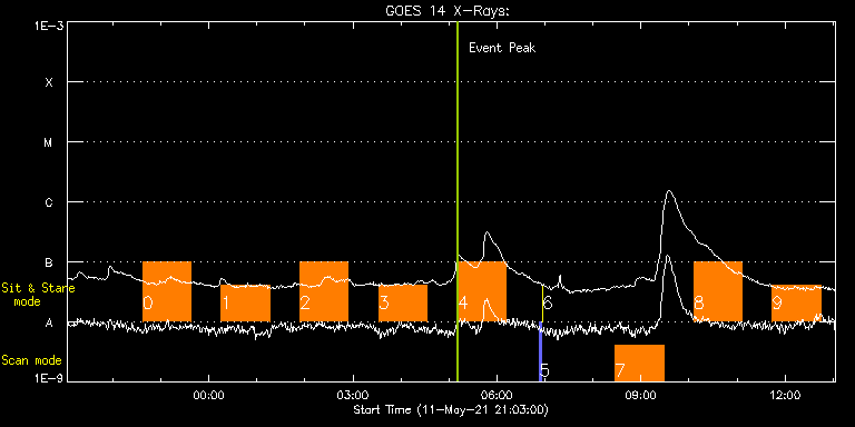 EIS Observation timeline overlay to GOES-Xray curve Code 1" 2" 40" 266" EIS Observations list for this event: STUDY ACRONYM ID DATE OBSERVED DESCRIPTION NOAA# TARGET 0 Flare_SNS_v2 | 77146 | 2021/05/11 22:37:13 | Flare Studies | | Flare TIMELINE ID DATE OBSERVED FITS FILE XCEN (+W/-E) YCEN (+N/-S) DUR ----------------------------------------------------------------------------------------------------------------- 77146 | 2021/05/11 22:37:13.000 | eis_l0_20210511_223713.fits.gz | -315.69 | 304.95 | 1h0m20s 1 Flare_SNS_v2 | 77147 | 2021/05/12 00:15:14 | Flare Studies | | Flare TIMELINE ID DATE OBSERVED FITS FILE XCEN (+W/-E) YCEN (+N/-S) DUR ----------------------------------------------------------------------------------------------------------------- 77147 | 2021/05/12 00:15:14.000 | eis_l0_20210512_001514.fits.gz | -302.17 | 304.02 | 1h0m21s 2 Flare_SNS_v2 | 77148 | 2021/05/12 01:53:44 | Flare Studies | | Flare TIMELINE ID DATE OBSERVED FITS FILE XCEN (+W/-E) YCEN (+N/-S) DUR ----------------------------------------------------------------------------------------------------------------- 77148 | 2021/05/12 01:53:44.000 | eis_l0_20210512_015344.fits.gz | -288.17 | 304.33 | 1h0m20s 3 Flare_SNS_v2 | 77149 | 2021/05/12 03:32:14 | Flare Studies | | Flare TIMELINE ID DATE OBSERVED FITS FILE XCEN (+W/-E) YCEN (+N/-S) DUR ----------------------------------------------------------------------------------------------------------------- 77149 | 2021/05/12 03:32:14.000 | eis_l0_20210512_033214.fits.gz | -274.26 | 304.33 | 1h0m19s 4 Flare_SNS_v2 | 77150 | 2021/05/12 05:10:44 | Flare Studies | | Flare TIMELINE ID DATE OBSERVED FITS FILE XCEN (+W/-E) YCEN (+N/-S) DUR ----------------------------------------------------------------------------------------------------------------- 77150 | 2021/05/12 05:10:44.000 | eis_l0_20210512_051044.fits.gz | -260.36 | 304.57 | 1h0m19s 5 PRY_slot_contextLITE | 77136 | 2021/05/12 06:53:20 | Pointing monitoring. | | Active Region TIMELINE ID DATE OBSERVED FITS FILE XCEN (+W/-E) YCEN (+N/-S) DUR ----------------------------------------------------------------------------------------------------------------- 77136 | 2021/05/12 06:53:20.000 | eis_l0_20210512_065320.fits.gz | -15.14 | -0.58 | 2m56s 6 XRT_synop_AIA | 77137 | 2021/05/12 06:56:34 | Pointing monitoring. | | Quiet Sun TIMELINE ID DATE OBSERVED FITS FILE XCEN (+W/-E) YCEN (+N/-S) DUR ----------------------------------------------------------------------------------------------------------------- 77137 | 2021/05/12 06:56:34.000 | eis_l0_20210512_065634.fits.gz | -132.41 | -0.50 | 10s 7 iiap_ch_ctxt_v2 | 77131 | 2021/05/12 08:27:20 | HOP 417 | | Coronal Hole TIMELINE ID DATE OBSERVED FITS FILE XCEN (+W/-E) YCEN (+N/-S) DUR ----------------------------------------------------------------------------------------------------------------- 77131 | 2021/05/12 08:27:20.000 | eis_l0_20210512_082720.fits.gz | 309.95 | 30.42 | 1h1m53s 8 Flare_SNS_v2 | 77151 | 2021/05/12 10:05:43 | Flare Studies | | Flare TIMELINE ID DATE OBSERVED FITS FILE XCEN (+W/-E) YCEN (+N/-S) DUR ----------------------------------------------------------------------------------------------------------------- 77151 | 2021/05/12 10:05:43.000 | eis_l0_20210512_100543.fits.gz | -218.24 | 304.64 | 1h0m20s 9 Flare_SNS_v2 | 77153 | 2021/05/12 11:44:13 | Flare Studies | | Flare TIMELINE ID DATE OBSERVED FITS FILE XCEN (+W/-E) YCEN (+N/-S) DUR ----------------------------------------------------------------------------------------------------------------- 77153 | 2021/05/12 11:44:13.000 | eis_l0_20210512_114413.fits.gz | -204.10 | 304.72 | 1h0m20s : Check study information : Download file : View thumbnails For this event, also check for: