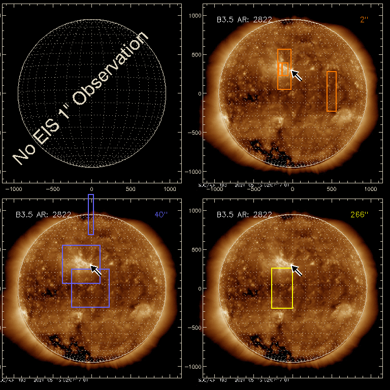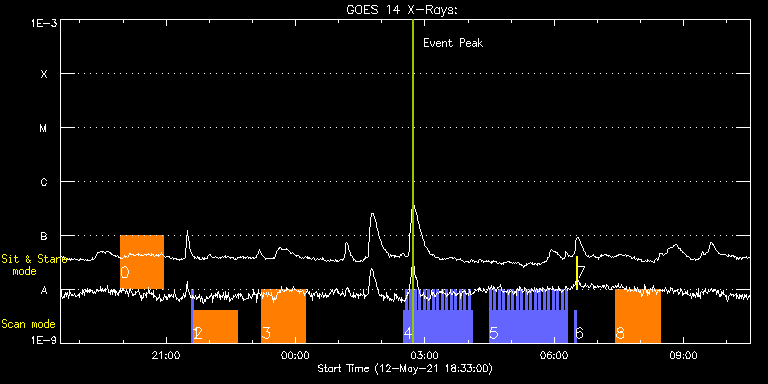 EIS Observation timeline overlay to GOES-Xray curve Code 1" 2" 40" 266" EIS Observations list for this event: STUDY ACRONYM ID DATE OBSERVED DESCRIPTION NOAA# TARGET 0 Flare_SNS_v2 | 77157 | 2021/05/12 19:56:13 | Flare Studies | | Flare TIMELINE ID DATE OBSERVED FITS FILE XCEN (+W/-E) YCEN (+N/-S) DUR ----------------------------------------------------------------------------------------------------------------- 77157 | 2021/05/12 19:56:13.000 | eis_l0_20210512_195613.fits.gz | -132.56 | 304.03 | 1h0m20s 1 PRY_slot_contextLITE | 77163 | 2021/05/12 21:34:49 | Active Region Studies | | Active Region TIMELINE ID DATE OBSERVED FITS FILE XCEN (+W/-E) YCEN (+N/-S) DUR ----------------------------------------------------------------------------------------------------------------- 77163 | 2021/05/12 21:34:49.000 | eis_l0_20210512_213449.fits.gz | -132.93 | 303.87 | 2m56s 2 Atlas_60 | 77164 | 2021/05/12 21:38:11 | Active Region Studies | | Quiet Sun TIMELINE ID DATE OBSERVED FITS FILE XCEN (+W/-E) YCEN (+N/-S) DUR ----------------------------------------------------------------------------------------------------------------- 77164 | 2021/05/12 21:38:11.000 | eis_l0_20210512_213811.fits.gz | -117.57 | 303.72 | 1h1m38s 3 HPW021VEL260x512v2 | 77165 | 2021/05/12 23:13:13 | Active Region Studies | | Active Region TIMELINE ID DATE OBSERVED FITS FILE XCEN (+W/-E) YCEN (+N/-S) DUR ----------------------------------------------------------------------------------------------------------------- 77165 | 2021/05/12 23:13:13.000 | eis_l0_20210512_231313.fits.gz | -103.99 | 303.87 | 1h0m45s 4 Alignment_modify_v2 | 77133 | 2021/05/13 02:29:52 | Instrument coalignment. | | Quiet Sun TIMELINE ID DATE OBSERVED FITS FILE XCEN (+W/-E) YCEN (+N/-S) DUR ----------------------------------------------------------------------------------------------------------------- 77133 | 2021/05/13 02:29:52.000 | eis_l0_20210513_022952.fits.gz | -9.55 | 944.48 | 2m34s 77133 | 2021/05/13 02:33:00.000 | eis_l0_20210513_023300.fits.gz | -9.55 | 944.25 | 2m34s 77133 | 2021/05/13 02:36:07.000 | eis_l0_20210513_023607.fits.gz | -9.47 | 944.41 | 2m34s 77133 | 2021/05/13 02:39:15.000 | eis_l0_20210513_023915.fits.gz | -9.47 | 944.41 | 2m34s 77133 | 2021/05/13 02:42:22.000 | eis_l0_20210513_024222.fits.gz | -9.55 | 944.33 | 2m34s 77133 | 2021/05/13 02:45:30.000 | eis_l0_20210513_024530.fits.gz | -9.47 | 944.25 | 2m34s 77133 | 2021/05/13 02:48:37.000 | eis_l0_20210513_024837.fits.gz | -9.47 | 944.41 | 2m34s 77133 | 2021/05/13 02:51:45.000 | eis_l0_20210513_025145.fits.gz | -9.55 | 944.33 | 2m34s 77133 | 2021/05/13 02:54:52.000 | eis_l0_20210513_025452.fits.gz | -9.47 | 944.33 | 2m34s 77133 | 2021/05/13 02:58:00.000 | eis_l0_20210513_025800.fits.gz | -9.55 | 944.41 | 2m34s 77133 | 2021/05/13 03:01:08.000 | eis_l0_20210513_030108.fits.gz | -9.47 | 944.41 | 2m33s 77133 | 2021/05/13 03:04:15.000 | eis_l0_20210513_030415.fits.gz | -9.55 | 944.25 | 2m34s 77133 | 2021/05/13 03:07:23.000 | eis_l0_20210513_030723.fits.gz | -9.55 | 944.41 | 2m34s 77133 | 2021/05/13 03:10:30.000 | eis_l0_20210513_031030.fits.gz | -9.47 | 944.33 | 2m34s 77133 | 2021/05/13 03:13:38.000 | eis_l0_20210513_031338.fits.gz | -9.47 | 944.48 | 2m34s 77133 | 2021/05/13 03:16:45.000 | eis_l0_20210513_031645.fits.gz | -9.47 | 944.41 | 2m34s 77133 | 2021/05/13 03:19:53.000 | eis_l0_20210513_031953.fits.gz | -9.55 | 944.41 | 2m34s 77133 | 2021/05/13 03:23:00.000 | eis_l0_20210513_032300.fits.gz | -9.55 | 944.41 | 2m34s 77133 | 2021/05/13 03:26:08.000 | eis_l0_20210513_032608.fits.gz | -9.47 | 944.41 | 2m34s 77133 | 2021/05/13 03:29:15.000 | eis_l0_20210513_032915.fits.gz | -9.55 | 944.33 | 2m34s 77133 | 2021/05/13 03:32:23.000 | eis_l0_20210513_033223.fits.gz | -9.47 | 944.33 | 2m34s 77133 | 2021/05/13 03:35:30.000 | eis_l0_20210513_033530.fits.gz | -9.47 | 944.33 | 2m34s 77133 | 2021/05/13 03:38:38.000 | eis_l0_20210513_033838.fits.gz | -9.47 | 944.41 | 2m34s 77133 | 2021/05/13 03:41:46.000 | eis_l0_20210513_034146.fits.gz | -9.55 | 944.48 | 2m33s 77133 | 2021/05/13 03:44:53.000 | eis_l0_20210513_034453.fits.gz | -9.55 | 944.41 | 2m34s 77133 | 2021/05/13 03:48:01.000 | eis_l0_20210513_034801.fits.gz | -9.47 | 944.33 | 2m33s 77133 | 2021/05/13 03:51:08.000 | eis_l0_20210513_035108.fits.gz | -9.55 | 944.41 | 2m34s 77133 | 2021/05/13 03:54:16.000 | eis_l0_20210513_035416.fits.gz | -9.47 | 944.41 | 2m34s 77133 | 2021/05/13 03:57:23.000 | eis_l0_20210513_035723.fits.gz | -9.47 | 944.33 | 2m34s 77133 | 2021/05/13 04:00:31.000 | eis_l0_20210513_040031.fits.gz | -9.47 | 944.41 | 2m34s 77133 | 2021/05/13 04:03:38.000 | eis_l0_20210513_040338.fits.gz | -9.55 | 944.72 | 2m34s 5 Alignment_modify_v2 | 77135 | 2021/05/13 04:29:45 | Instrument coalignment | | Quiet Sun TIMELINE ID DATE OBSERVED FITS FILE XCEN (+W/-E) YCEN (+N/-S) DUR ----------------------------------------------------------------------------------------------------------------- 77135 | 2021/05/13 04:29:45.000 | eis_l0_20210513_042945.fits.gz | -9878.95 | -9963.20 | 2m34s 77135 | 2021/05/13 04:32:53.000 | eis_l0_20210513_043253.fits.gz | -9878.95 | -9963.20 | 2m34s 77135 | 2021/05/13 04:36:00.000 | eis_l0_20210513_043600.fits.gz | -9878.95 | -9963.20 | 2m34s 77135 | 2021/05/13 04:39:08.000 | eis_l0_20210513_043908.fits.gz | -9878.95 | -9963.20 | 2m34s 77135 | 2021/05/13 04:42:15.000 | eis_l0_20210513_044215.fits.gz | -9878.95 | -9963.20 | 2m34s 77135 | 2021/05/13 04:45:23.000 | eis_l0_20210513_044523.fits.gz | -9878.95 | -9963.20 | 2m34s 77135 | 2021/05/13 04:48:30.000 | eis_l0_20210513_044830.fits.gz | -9878.95 | -9963.20 | 2m34s 77135 | 2021/05/13 04:51:38.000 | eis_l0_20210513_045138.fits.gz | -9878.95 | -9963.20 | 2m34s 77135 | 2021/05/13 04:54:45.000 | eis_l0_20210513_045445.fits.gz | -9878.95 | -9963.20 | 2m34s 77135 | 2021/05/13 04:57:53.000 | eis_l0_20210513_045753.fits.gz | -9878.95 | -9963.20 | 2m34s 77135 | 2021/05/13 05:01:00.000 | eis_l0_20210513_050100.fits.gz | -9878.95 | -9963.20 | 2m34s 77135 | 2021/05/13 05:04