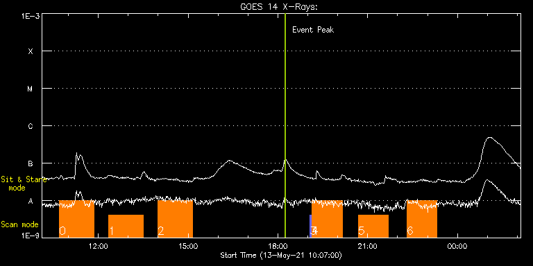 EIS Observation timeline overlay to GOES-Xray curve Code 1" 2" 40" 266" EIS Observations list for this event: STUDY ACRONYM ID DATE OBSERVED DESCRIPTION NOAA# TARGET 0 HOP81_new_study | 77171 | 2021/05/13 10:41:42 | Polar monitoring campaign. | | Coronal Hole TIMELINE ID DATE OBSERVED FITS FILE XCEN (+W/-E) YCEN (+N/-S) DUR ----------------------------------------------------------------------------------------------------------------- 77171 | 2021/05/13 10:41:42.000 | eis_l0_20210513_104142.fits.gz | -26.23 | 873.81 | 1h9m45s 1 HOP81_new_study | 77172 | 2021/05/13 12:20:39 | Polar monitoring campaign. | | Coronal Hole TIMELINE ID DATE OBSERVED FITS FILE XCEN (+W/-E) YCEN (+N/-S) DUR ----------------------------------------------------------------------------------------------------------------- 77172 | 2021/05/13 12:20:39.000 | eis_l0_20210513_122039.fits.gz | -26.16 | 873.66 | 1h9m45s 2 HOP81_new_study | 77173 | 2021/05/13 13:58:42 | Polar monitoring campaign. | | Coronal Hole TIMELINE ID DATE OBSERVED FITS FILE XCEN (+W/-E) YCEN (+N/-S) DUR ----------------------------------------------------------------------------------------------------------------- 77173 | 2021/05/13 13:58:42.000 | eis_l0_20210513_135842.fits.gz | -26.16 | 873.73 | 1h9m45s 3 PRY_slot_contextLITE | 77180 | 2021/05/13 19:04:19 | Active Region Studies | | Active Region TIMELINE ID DATE OBSERVED FITS FILE XCEN (+W/-E) YCEN (+N/-S) DUR ----------------------------------------------------------------------------------------------------------------- 77180 | 2021/05/13 19:04:19.000 | eis_l0_20210513_190419.fits.gz | 60.46 | 293.14 | 2m56s 4 Atlas_60 | 77181 | 2021/05/13 19:07:40 | Active Region Studies | | Quiet Sun TIMELINE ID DATE OBSERVED FITS FILE XCEN (+W/-E) YCEN (+N/-S) DUR ----------------------------------------------------------------------------------------------------------------- 77181 | 2021/05/13 19:07:40.000 | eis_l0_20210513_190740.fits.gz | 75.66 | 293.37 | 1h1m40s 5 HPW021VEL260x512v2 | 77182 | 2021/05/13 20:41:12 | Active Region Studies | | Active Region TIMELINE ID DATE OBSERVED FITS FILE XCEN (+W/-E) YCEN (+N/-S) DUR ----------------------------------------------------------------------------------------------------------------- 77182 | 2021/05/13 20:41:12.000 | eis_l0_20210513_204112.fits.gz | 89.24 | 292.06 | 1h0m45s 6 HPW021VEL260x512v2 | 77188 | 2021/05/13 22:18:12 | Active Region Studies | | Active Region TIMELINE ID DATE OBSERVED FITS FILE XCEN (+W/-E) YCEN (+N/-S) DUR ----------------------------------------------------------------------------------------------------------------- 77188 | 2021/05/13 22:18:12.000 | eis_l0_20210513_221812.fits.gz | 103.53 | 291.83 | 1h0m44s : Check study information : Download file : View thumbnails For this event, also check for: