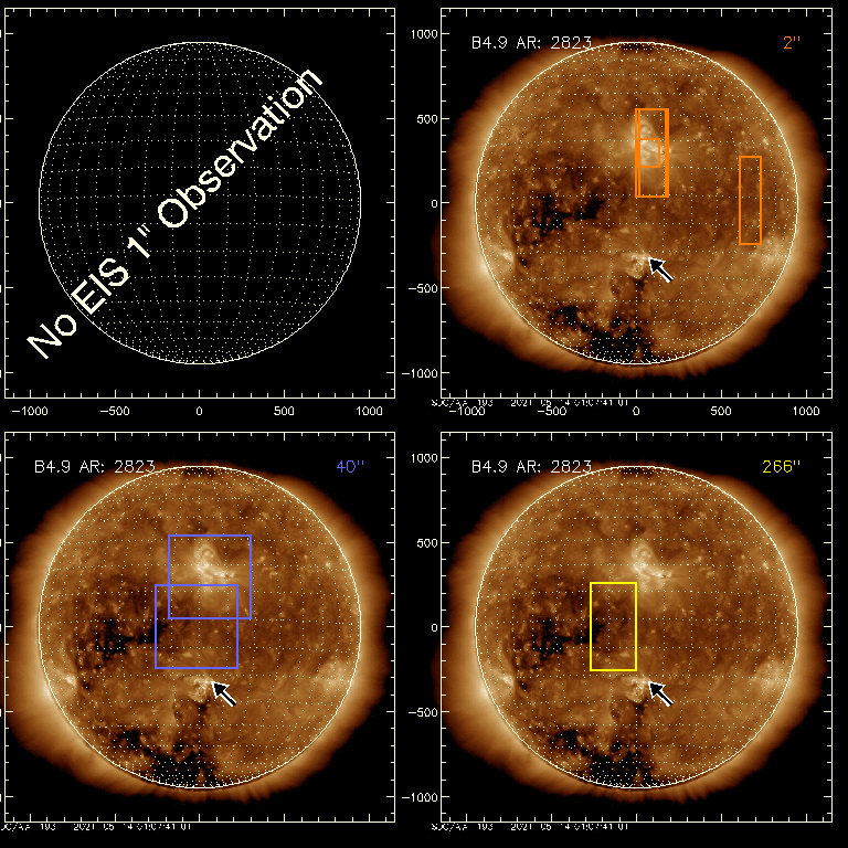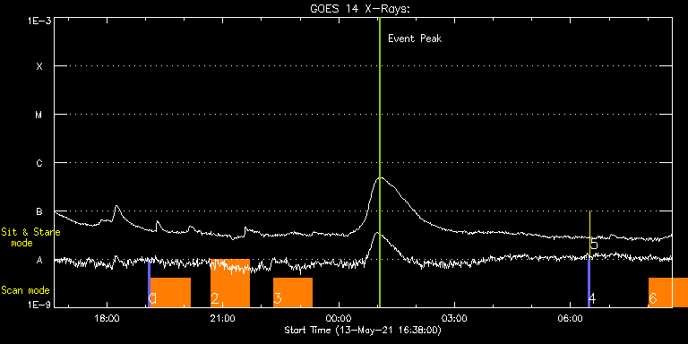 EIS Observation timeline overlay to GOES-Xray curve Code 1" 2" 40" 266" EIS Observations list for this event: STUDY ACRONYM ID DATE OBSERVED DESCRIPTION NOAA# TARGET 0 PRY_slot_contextLITE | 77180 | 2021/05/13 19:04:19 | Active Region Studies | | Active Region TIMELINE ID DATE OBSERVED FITS FILE XCEN (+W/-E) YCEN (+N/-S) DUR ----------------------------------------------------------------------------------------------------------------- 77180 | 2021/05/13 19:04:19.000 | eis_l0_20210513_190419.fits.gz | 60.46 | 293.14 | 2m56s 1 Atlas_60 | 77181 | 2021/05/13 19:07:40 | Active Region Studies | | Quiet Sun TIMELINE ID DATE OBSERVED FITS FILE XCEN (+W/-E) YCEN (+N/-S) DUR ----------------------------------------------------------------------------------------------------------------- 77181 | 2021/05/13 19:07:40.000 | eis_l0_20210513_190740.fits.gz | 75.66 | 293.37 | 1h1m40s 2 HPW021VEL260x512v2 | 77182 | 2021/05/13 20:41:12 | Active Region Studies | | Active Region TIMELINE ID DATE OBSERVED FITS FILE XCEN (+W/-E) YCEN (+N/-S) DUR ----------------------------------------------------------------------------------------------------------------- 77182 | 2021/05/13 20:41:12.000 | eis_l0_20210513_204112.fits.gz | 89.24 | 292.06 | 1h0m45s 3 HPW021VEL260x512v2 | 77188 | 2021/05/13 22:18:12 | Active Region Studies | | Active Region TIMELINE ID DATE OBSERVED FITS FILE XCEN (+W/-E) YCEN (+N/-S) DUR ----------------------------------------------------------------------------------------------------------------- 77188 | 2021/05/13 22:18:12.000 | eis_l0_20210513_221812.fits.gz | 103.53 | 291.83 | 1h0m44s 4 PRY_slot_contextLITE | 77174 | 2021/05/14 06:26:48 | Pointing monitoring. | | Active Region TIMELINE ID DATE OBSERVED FITS FILE XCEN (+W/-E) YCEN (+N/-S) DUR ----------------------------------------------------------------------------------------------------------------- 77174 | 2021/05/14 06:26:48.000 | eis_l0_20210514_062648.fits.gz | -15.21 | -0.42 | 2m56s 5 XRT_synop_AIA | 77175 | 2021/05/14 06:30:03 | Pointing monitoring. | | Quiet Sun TIMELINE ID DATE OBSERVED FITS FILE XCEN (+W/-E) YCEN (+N/-S) DUR ----------------------------------------------------------------------------------------------------------------- 77175 | 2021/05/14 06:30:03.000 | eis_l0_20210514_063003.fits.gz | -132.49 | -0.42 | 10s 6 iiap_ch_ctxt_v2 | 77166 | 2021/05/14 08:01:19 | HOP 417 | | Coronal Hole TIMELINE ID DATE OBSERVED FITS FILE XCEN (+W/-E) YCEN (+N/-S) DUR ----------------------------------------------------------------------------------------------------------------- 77166 | 2021/05/14 08:01:19.000 | eis_l0_20210514_080119.fits.gz | 674.15 | 12.21 | 1h1m53s : Check study information : Download file : View thumbnails For this event, also check for: